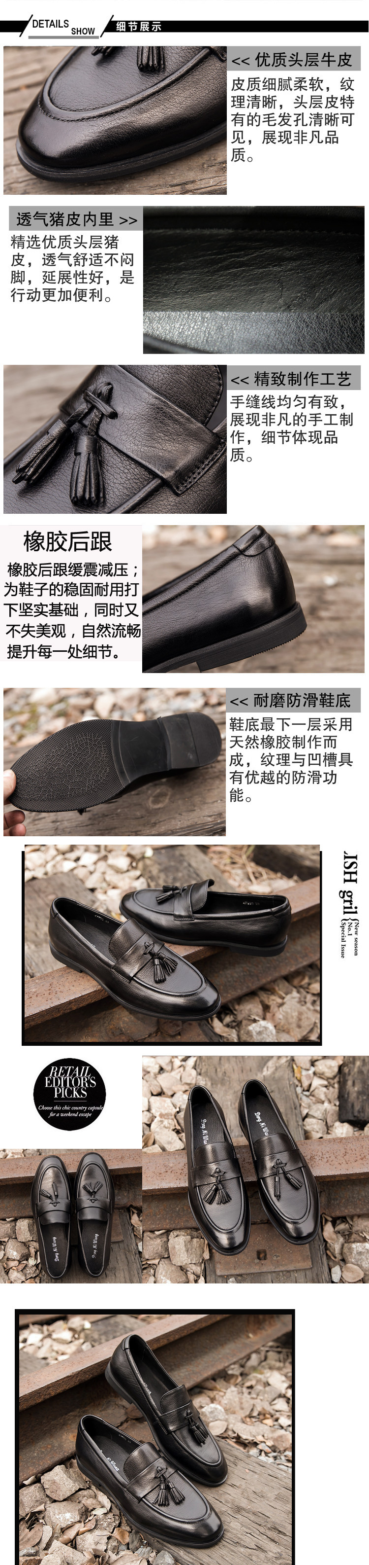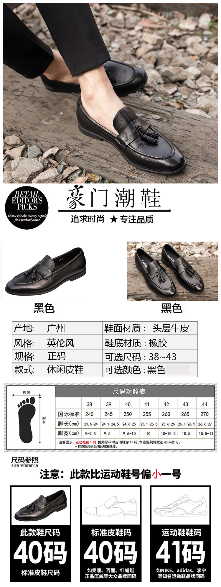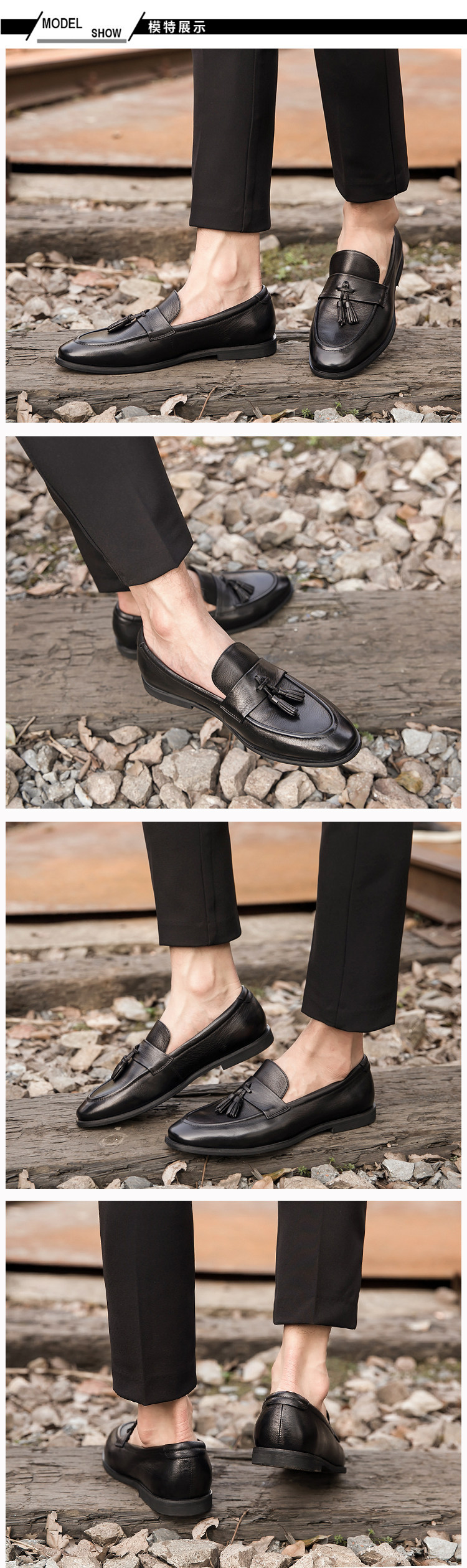 Men's Genuine Leather Tassel Loafers, Men's Autumn and Winter Casual British Style Leather Shoes, Korean Style Trendy Slip-On Shoes