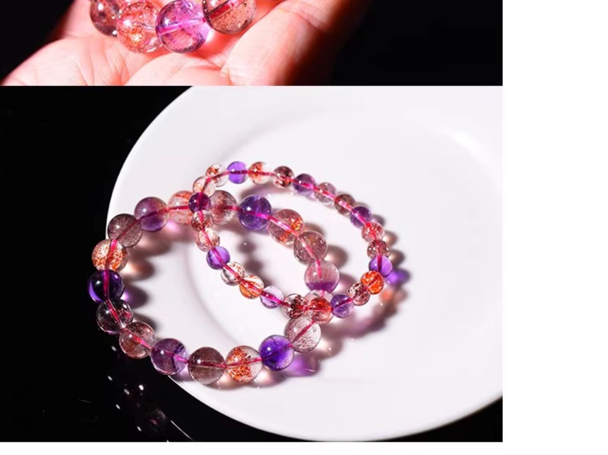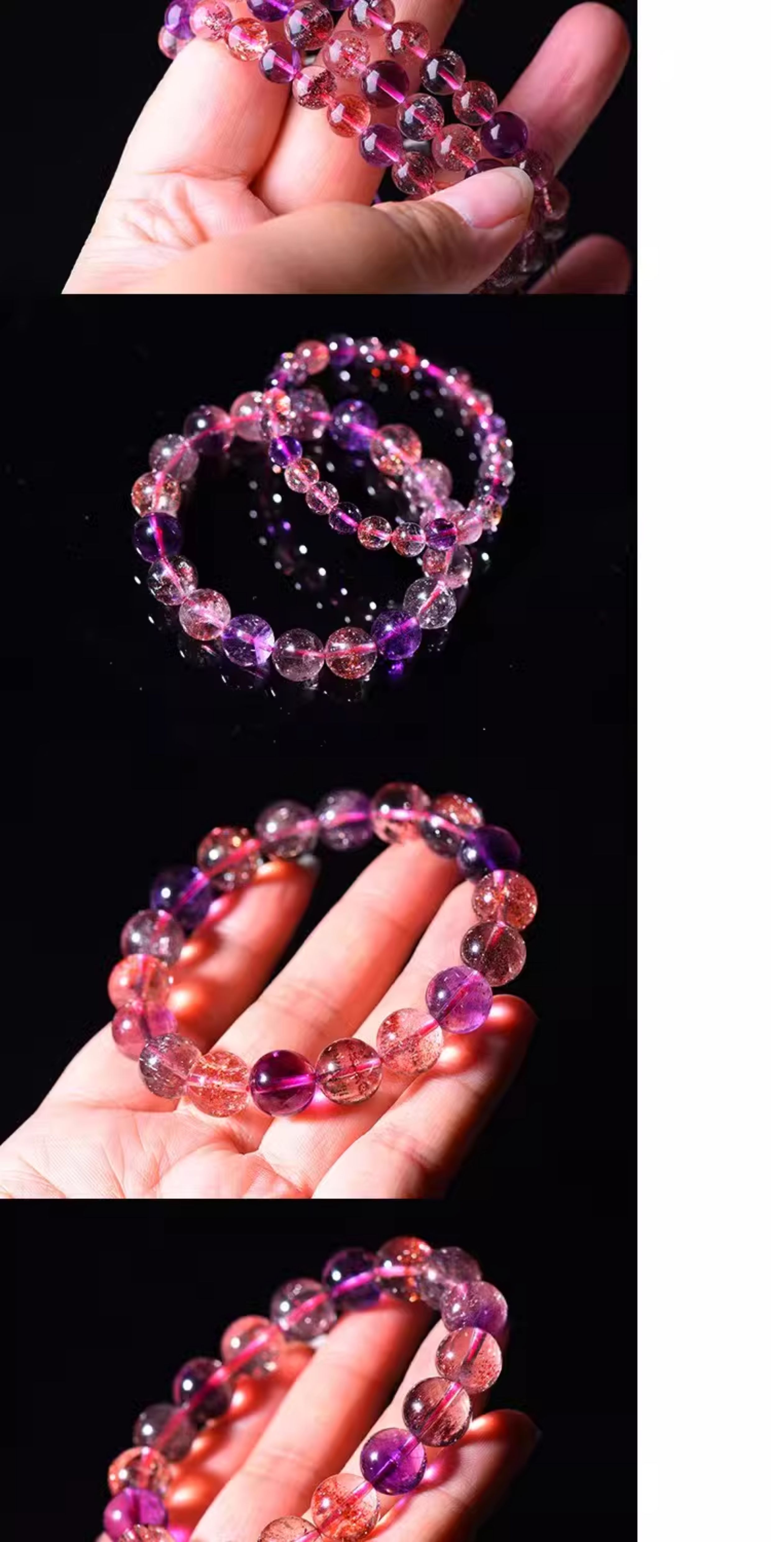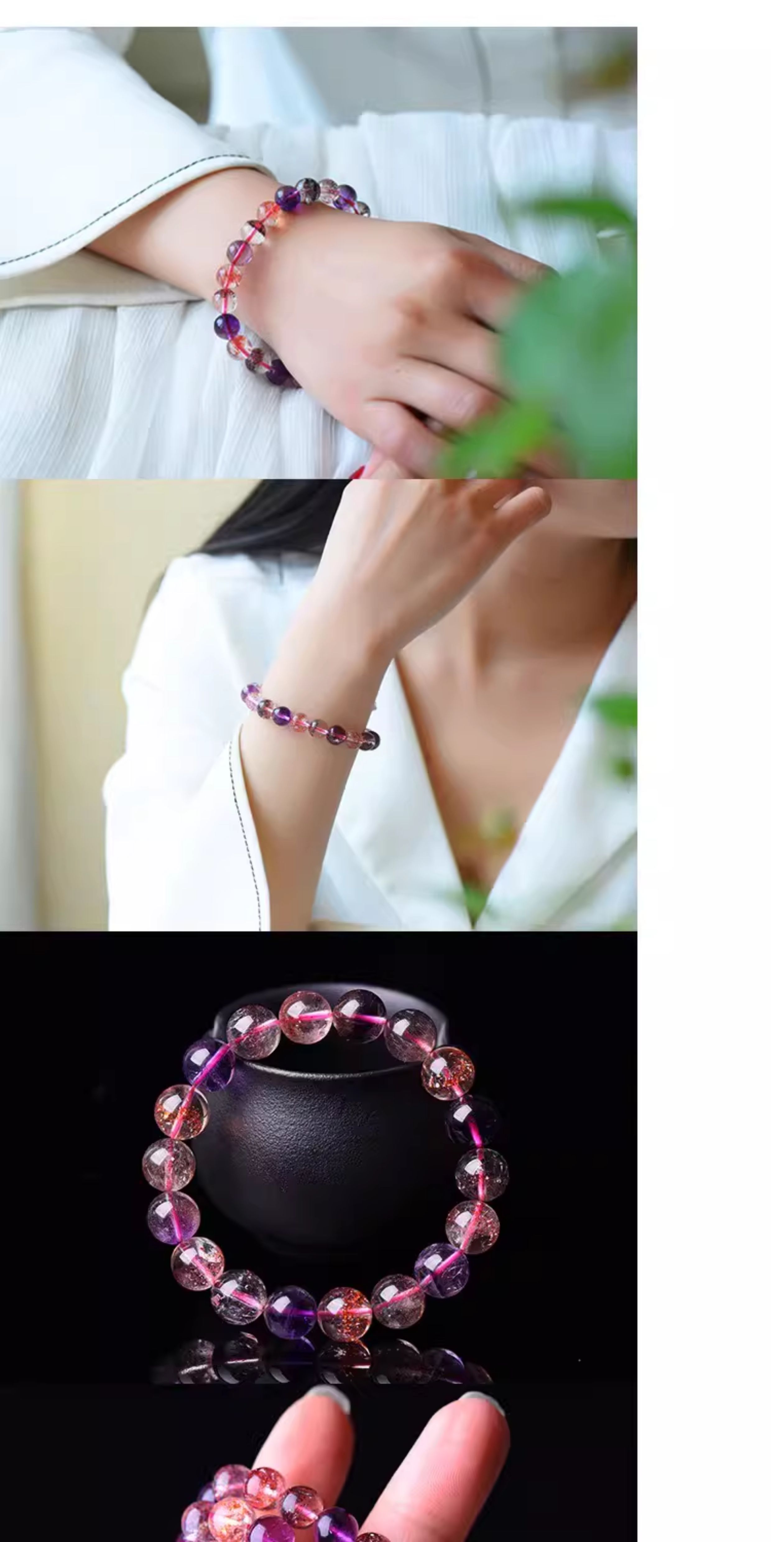 Tianpin Jewelry Natural Super Seven Bracelet Purple Rutilated Quartz Three-Round Backbone Blackcurrant Natural Crystal Super Seven Crystal