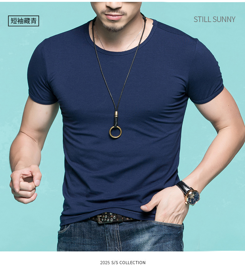4 Pieces】Men's Pure Cotton Short-Sleeve T-Shirt, Solid Color Base Shirt, Trendy Men's Half-Sleeve Tee, Inner Layer for Long-Sleeve Shirts