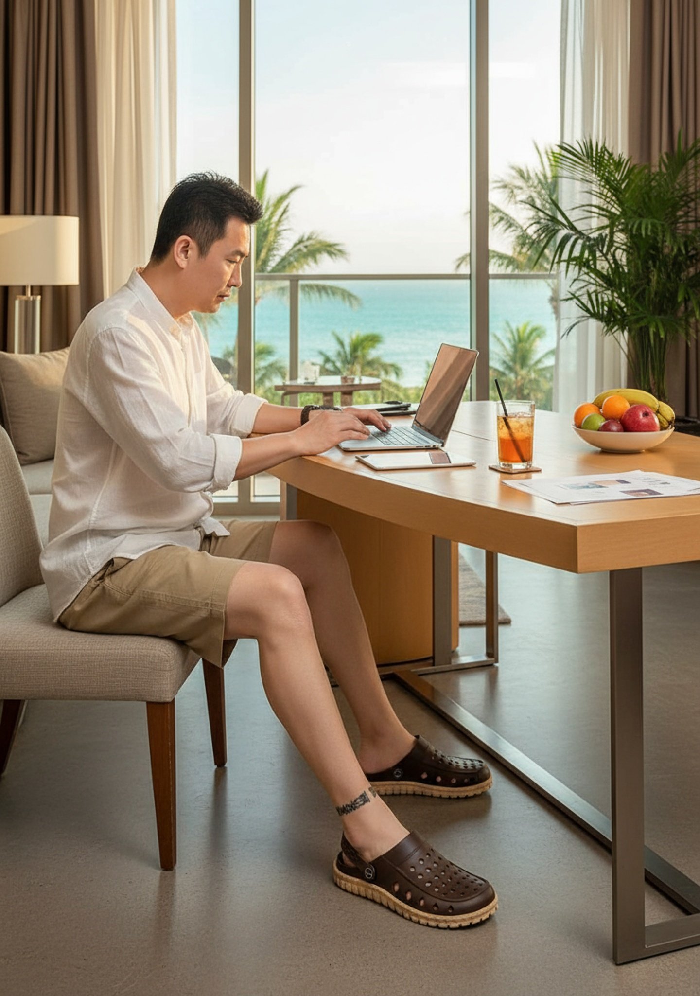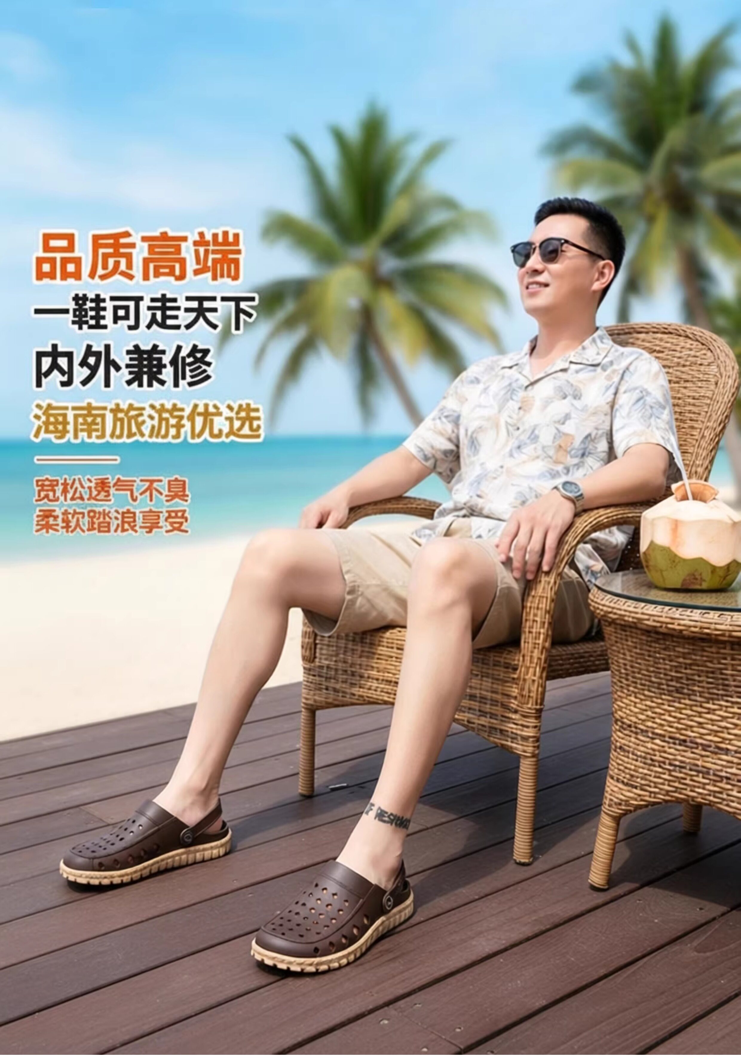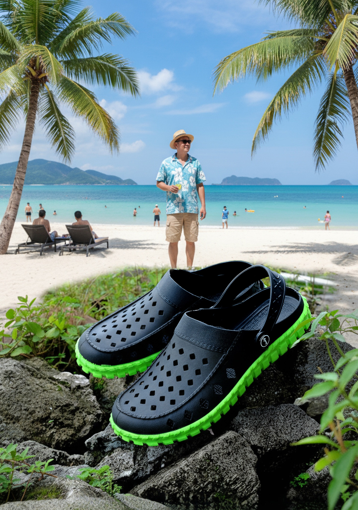Authentic Original Imported Vietnamese Rubber Clogs for Men, Hainan Travel Beach Shoes, Size 46, Soft and Odor-Free