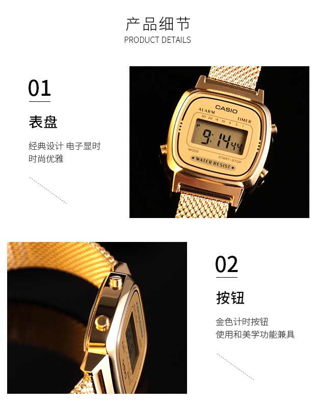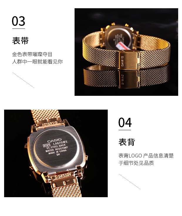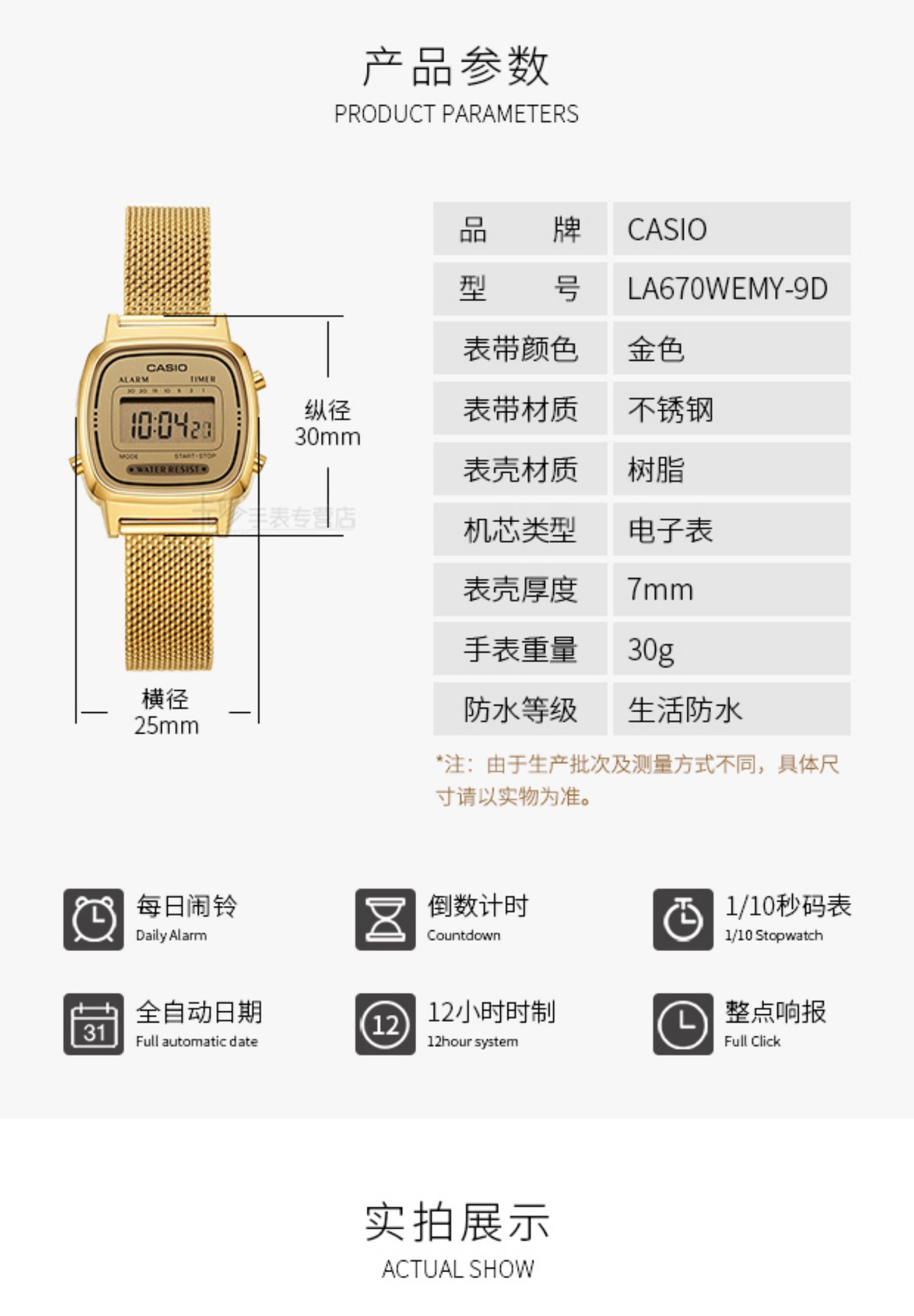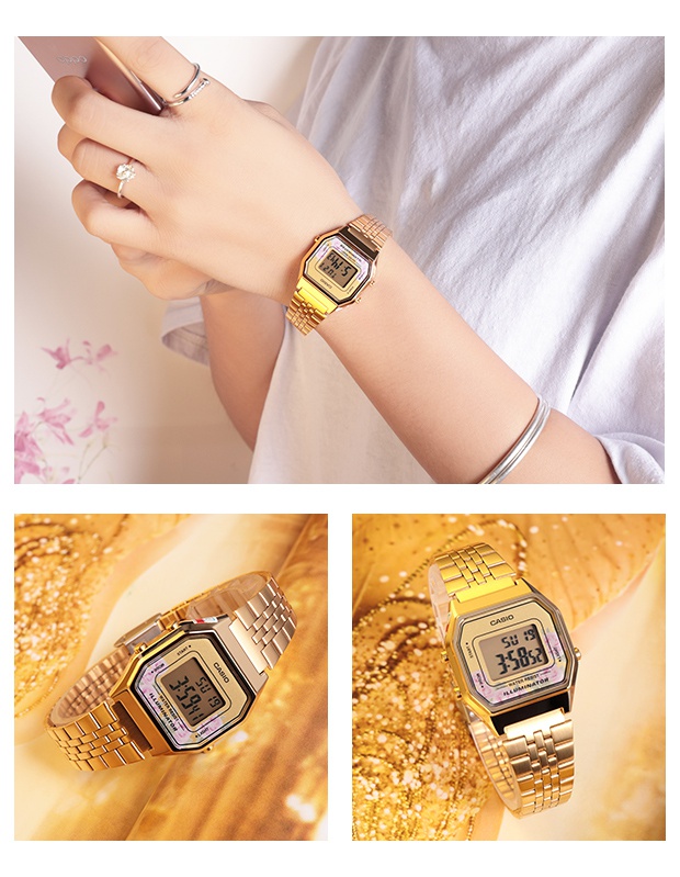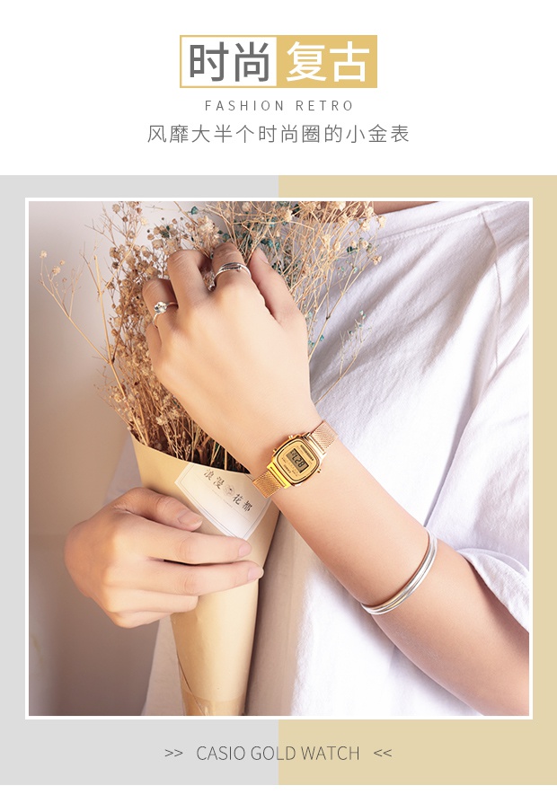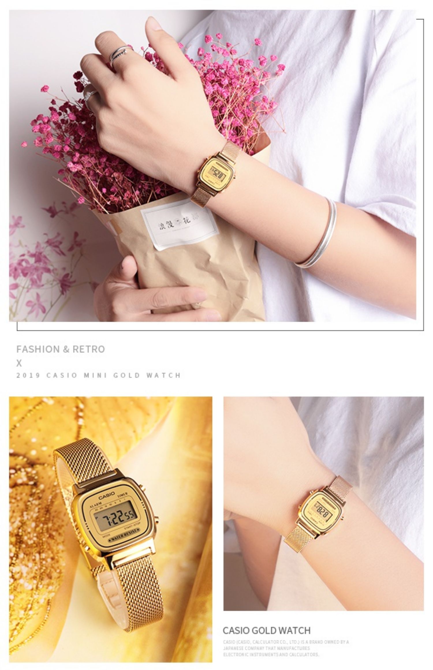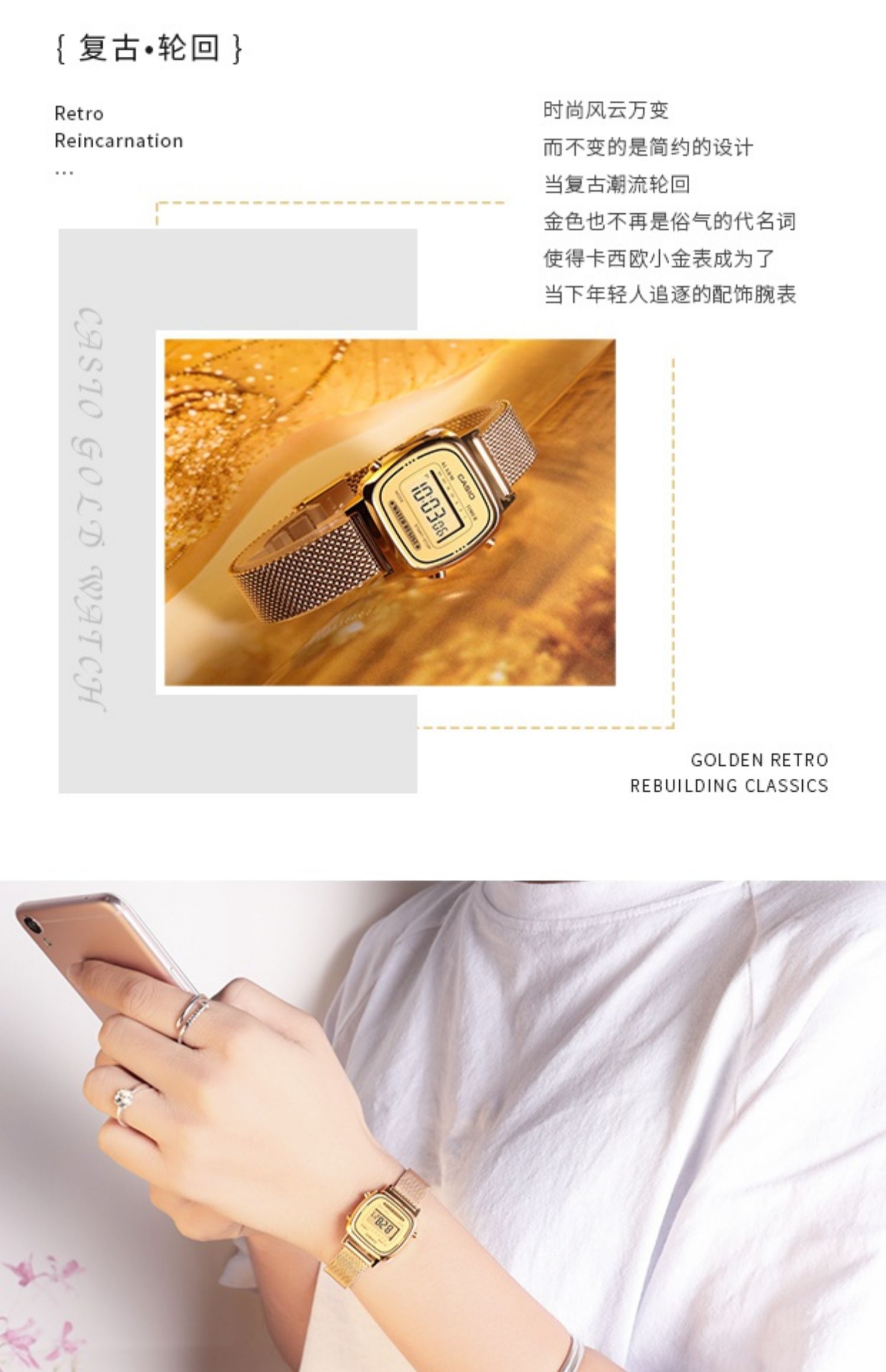 casio Retro Small Gold Watch Limited Edition Women's Small Square Watch Metal Steel Band Watch Electronic Watch LA670