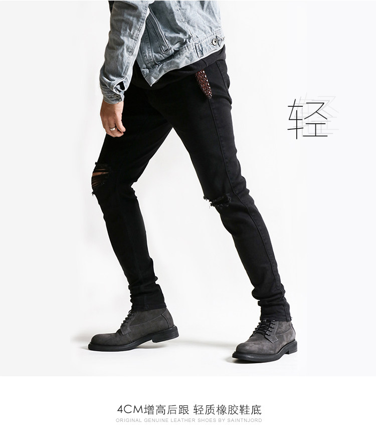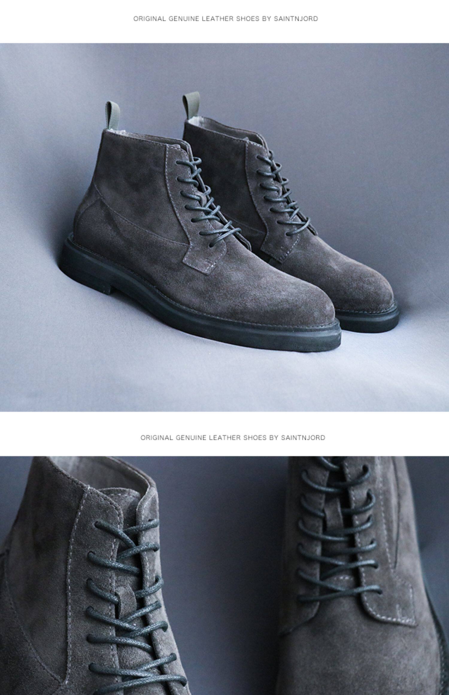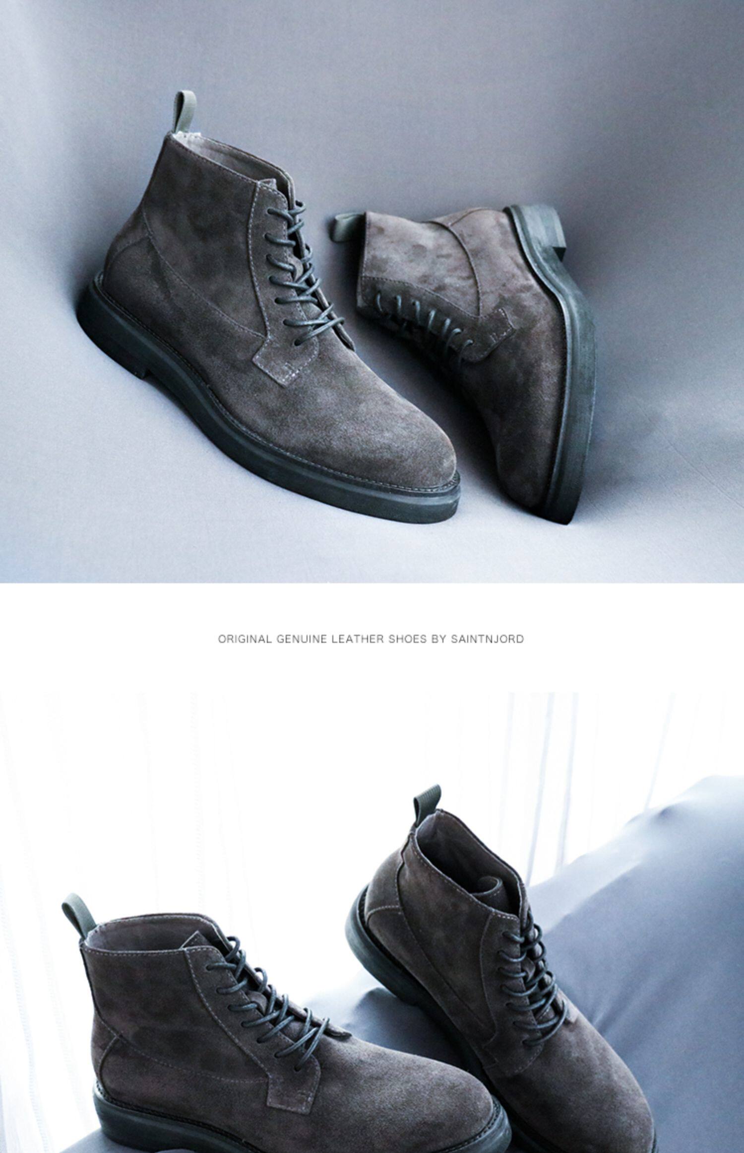 You100 New Trendy British Style Genuine Leather Short Boots Men's High-Top Casual Leather Shoes Martin Boots Workwear Thick Sole