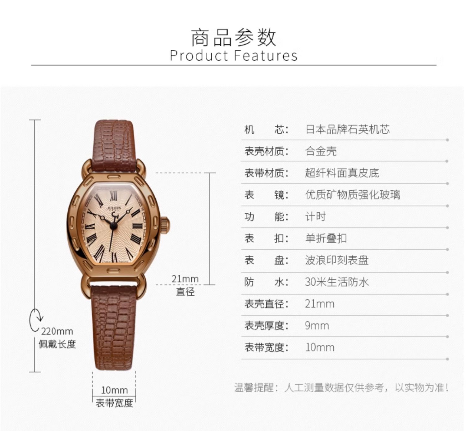 Korean Brand Julishi Watch for Women, Trendy and Fashionable, Compact Barrel-Shaped Student Ladies' Watch with Thin Strap