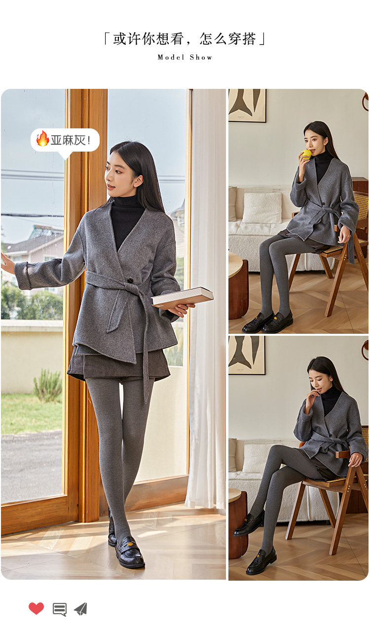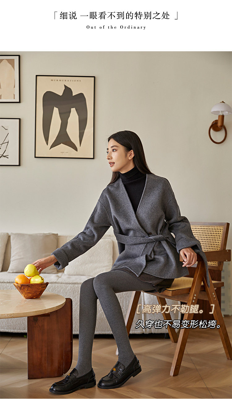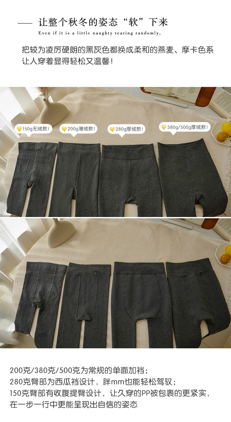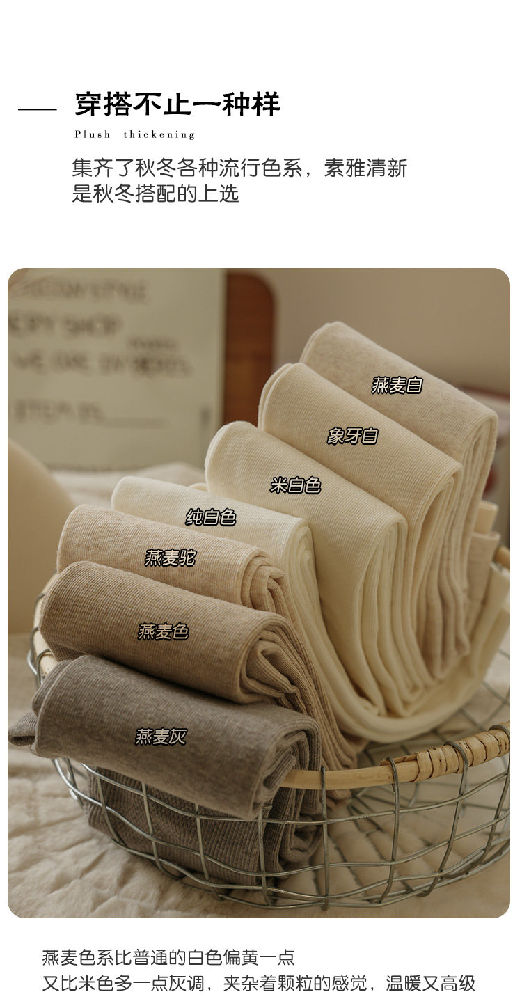 Light-Colored Spring, Autumn, and Winter Fleece-Lined Thick Cotton Leggings for Women, Japanese Style, Smoky Gray, Warm, Slimming, Footed Tights