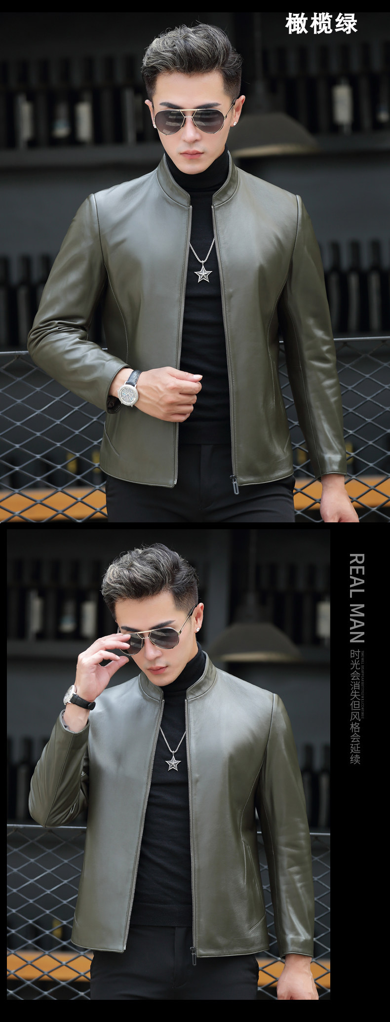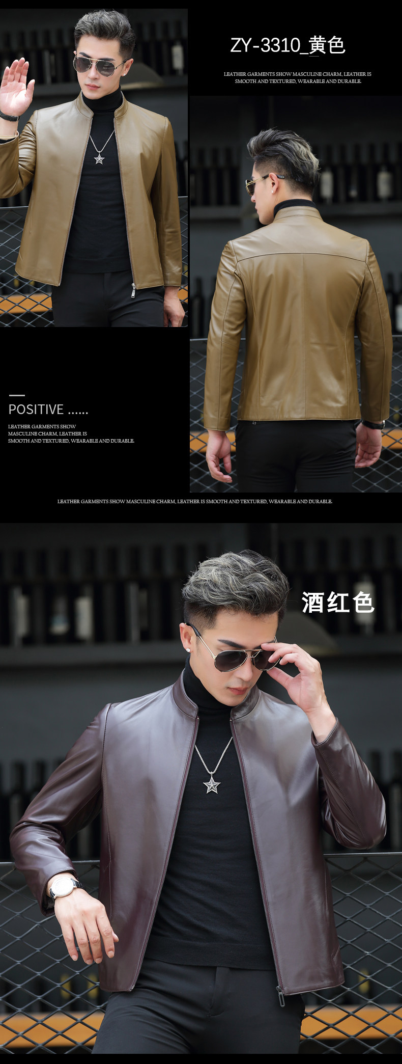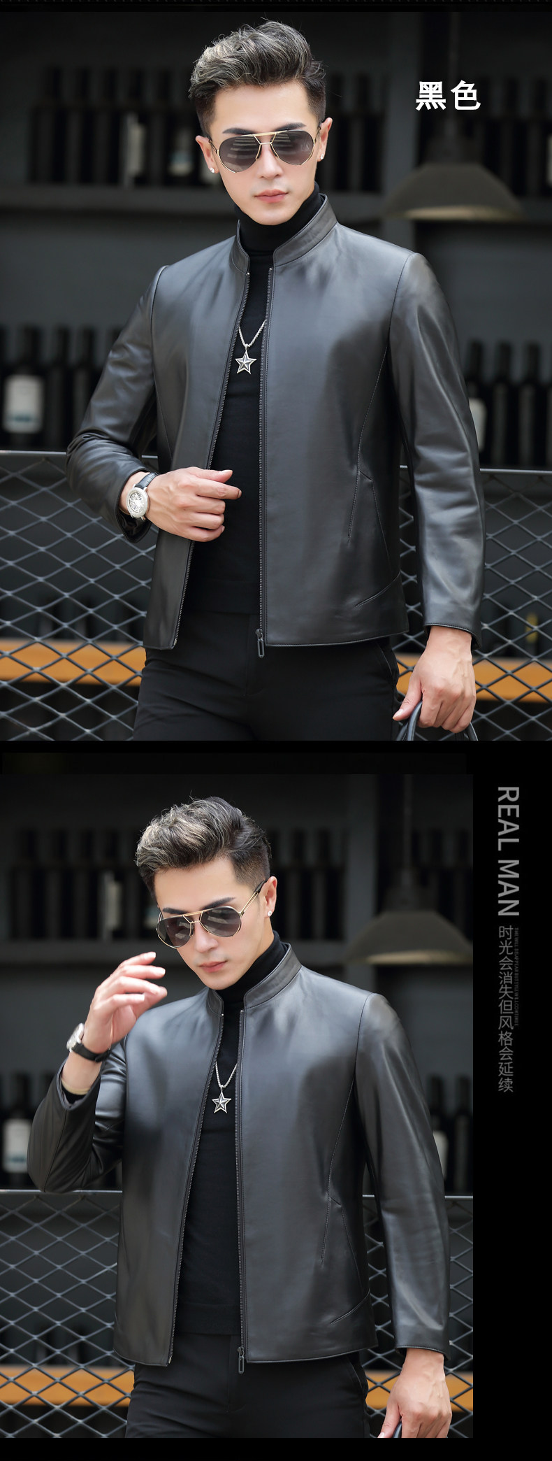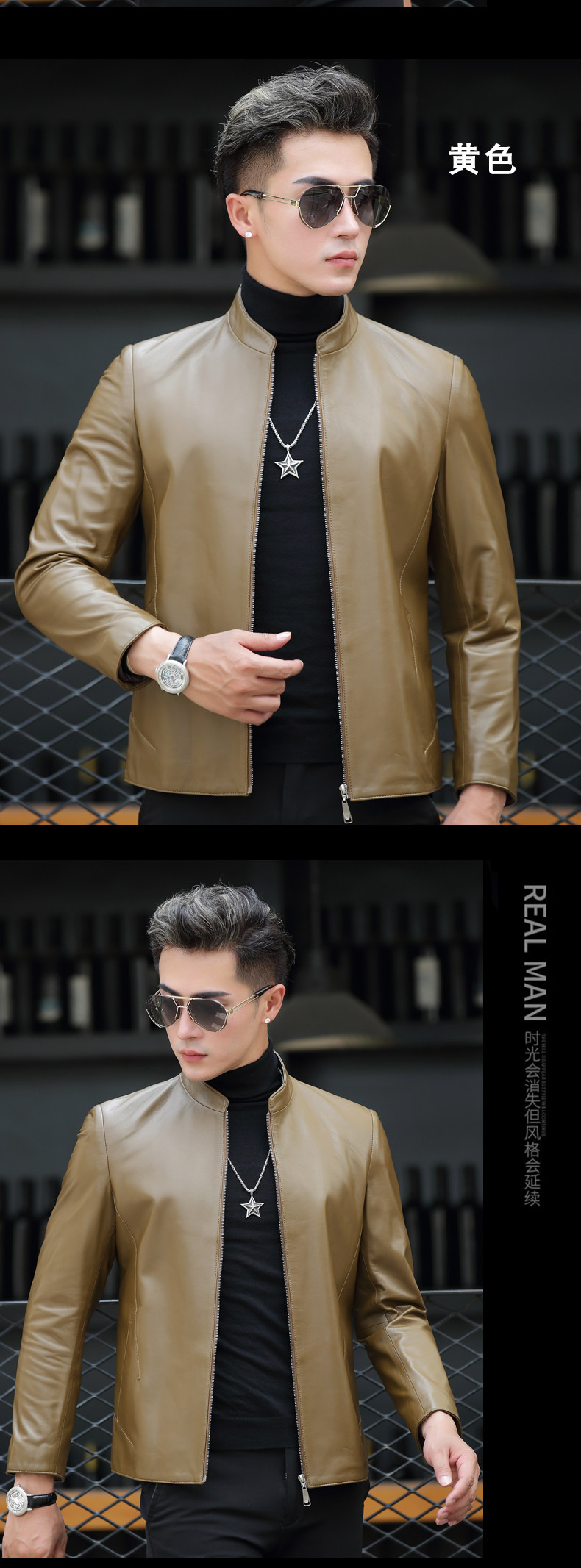 Haining Genuine Leather Jacket for Men, Sheepskin Stylish Biker Leather Jacket, Fashionable Casual Stand Collar Short Spring and Autumn Coat, Trendy