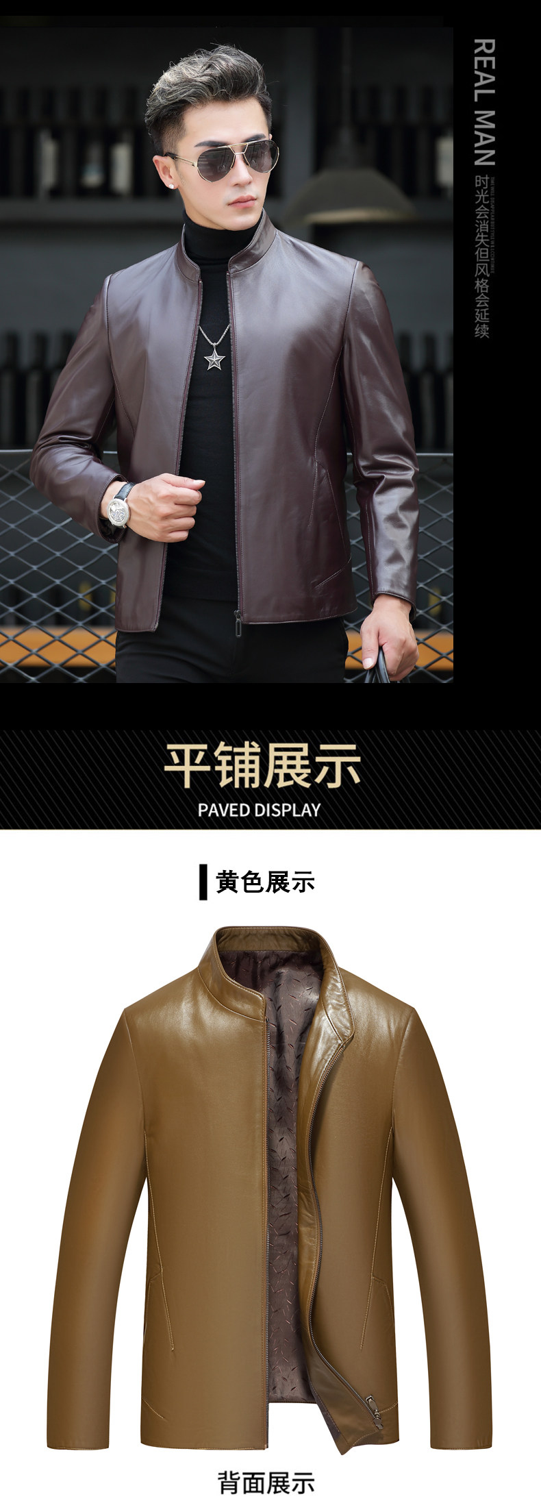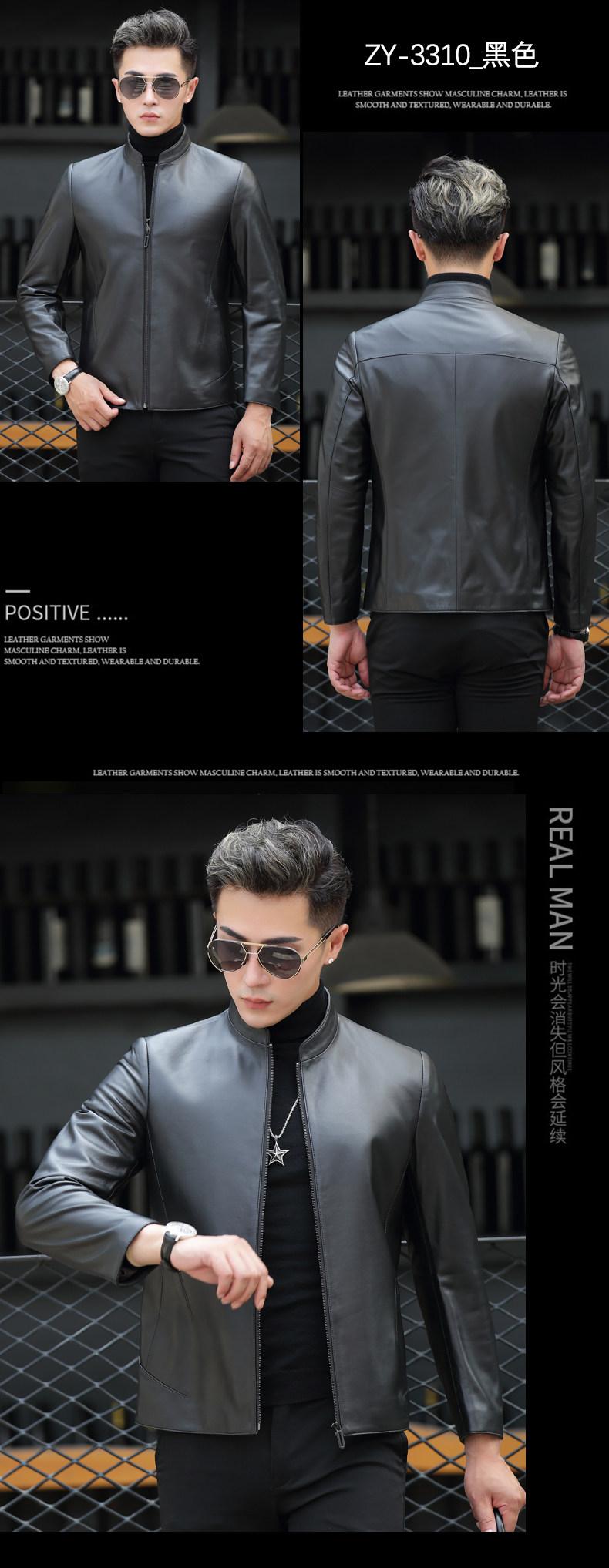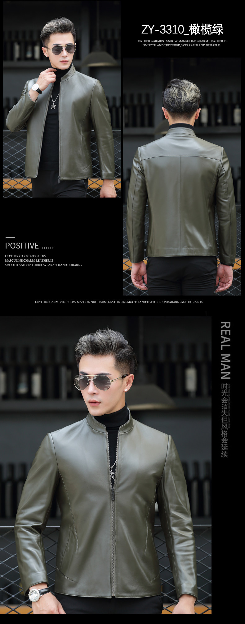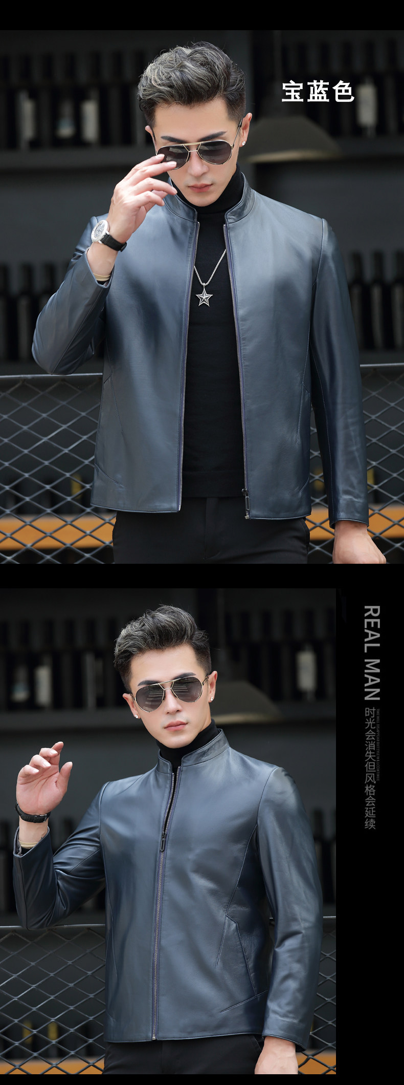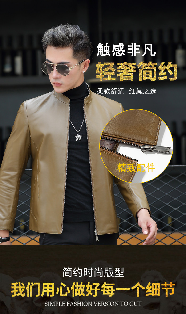 Haining Genuine Leather Jacket for Men, Sheepskin Stylish Biker Leather Jacket, Fashionable Casual Stand Collar Short Spring and Autumn Coat, Trendy