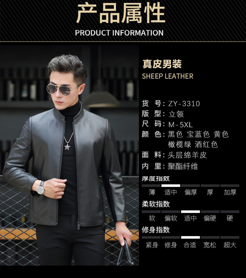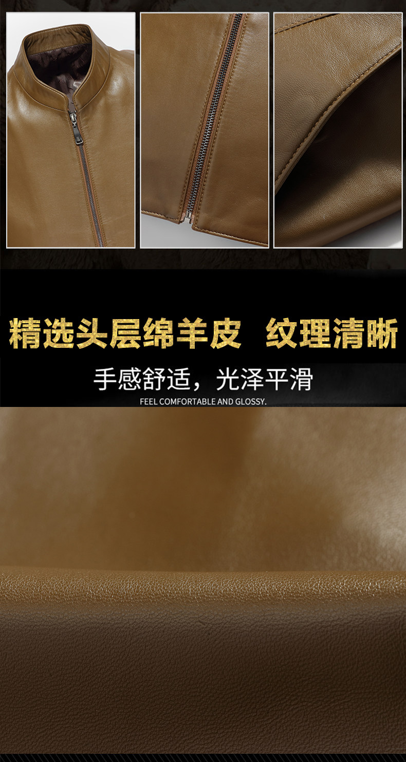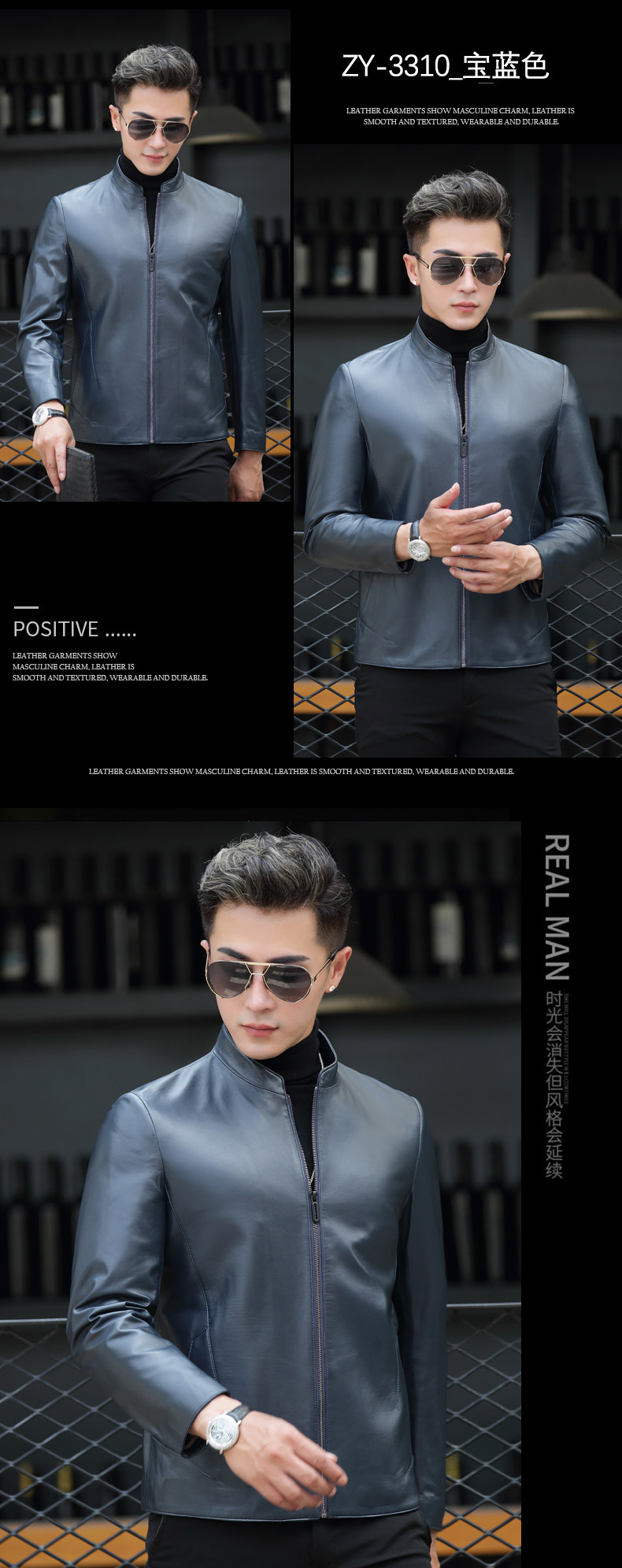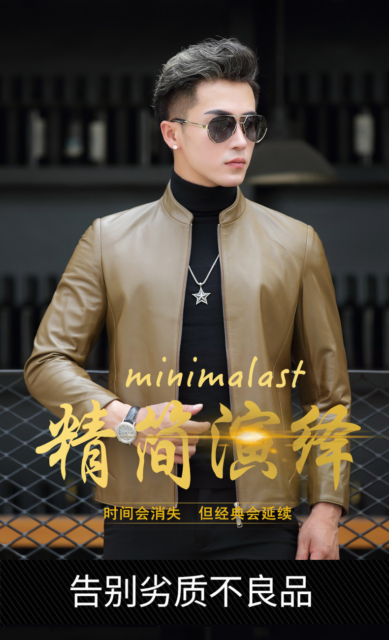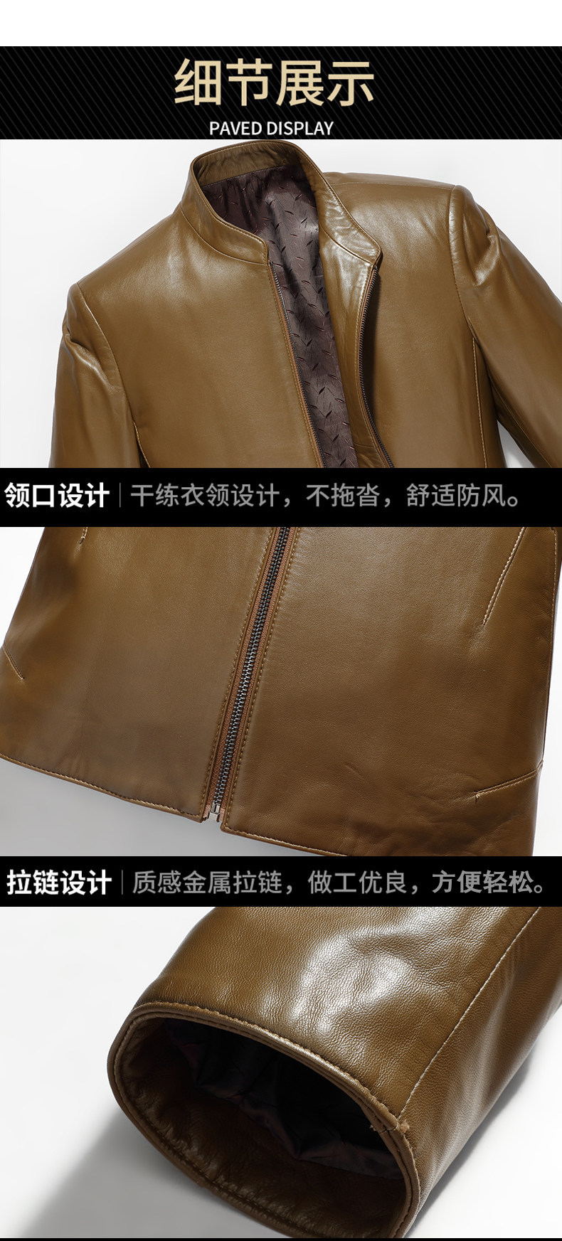 Haining Genuine Leather Jacket for Men, Sheepskin Stylish Biker Leather Jacket, Fashionable Casual Stand Collar Short Spring and Autumn Coat, Trendy