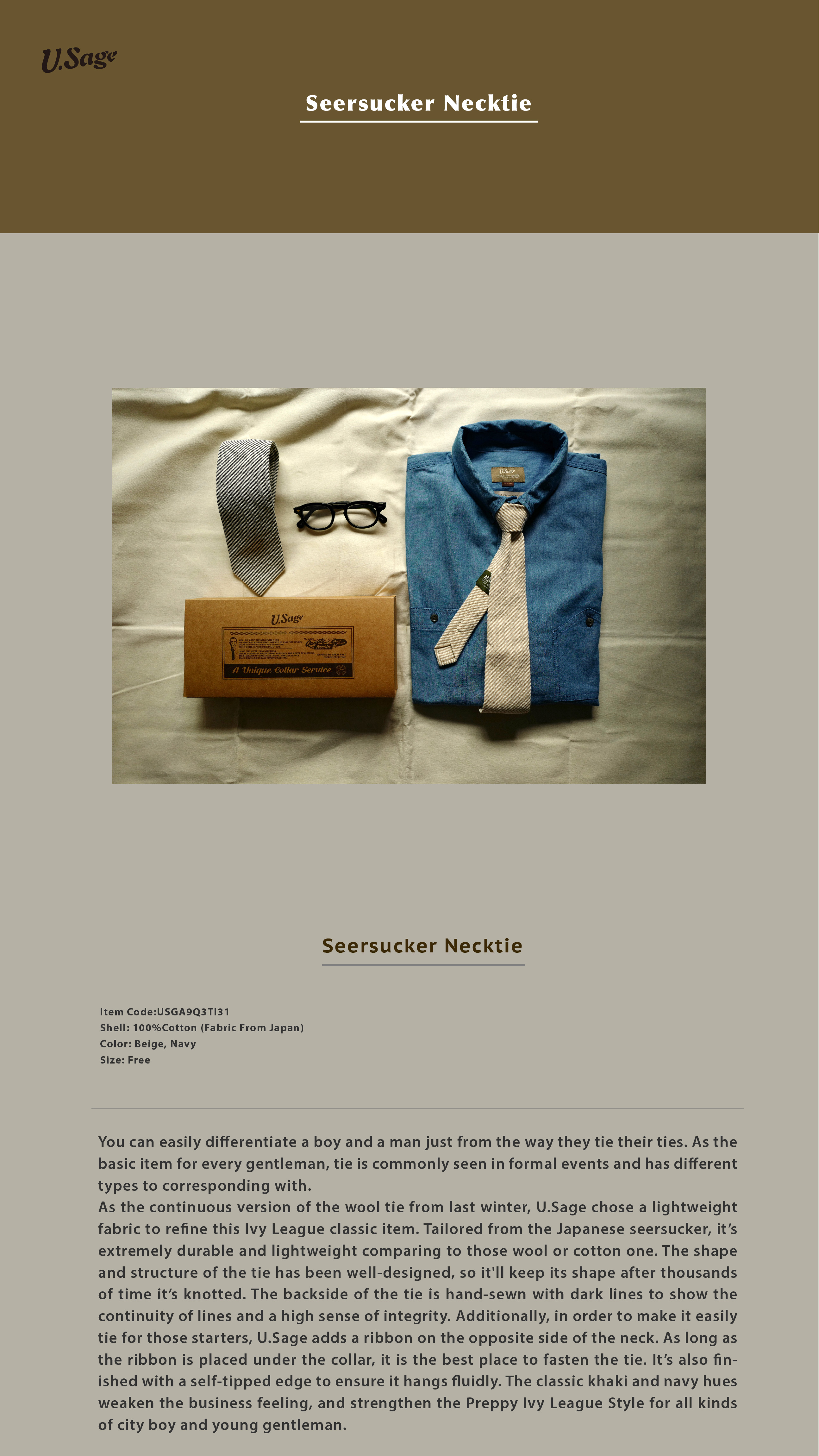U.Sage Ss19 (Usage) Seersucker Necktie Gentleman's Seersucker Tie