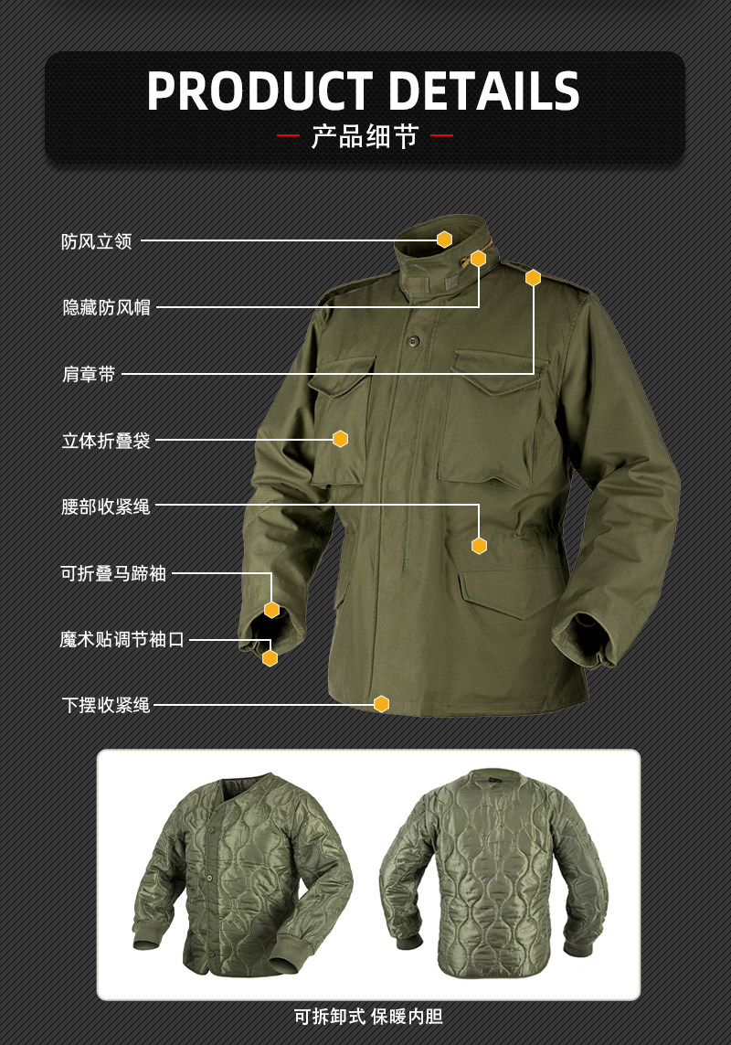 Helikon M65 Jacket Men's Autumn and Winter Two-Piece Liner L7 Cotton Clothing Outdoor Mountaineering Jacket Classic Windbreaker