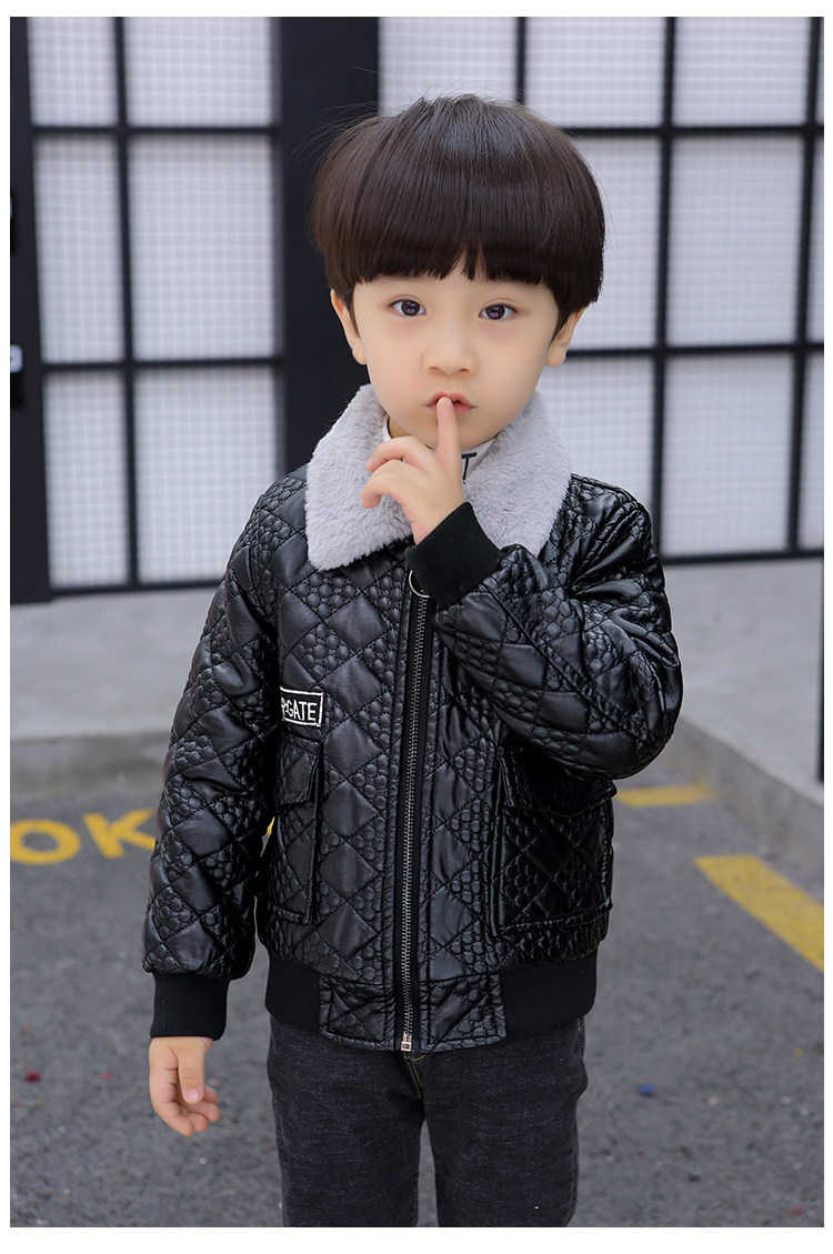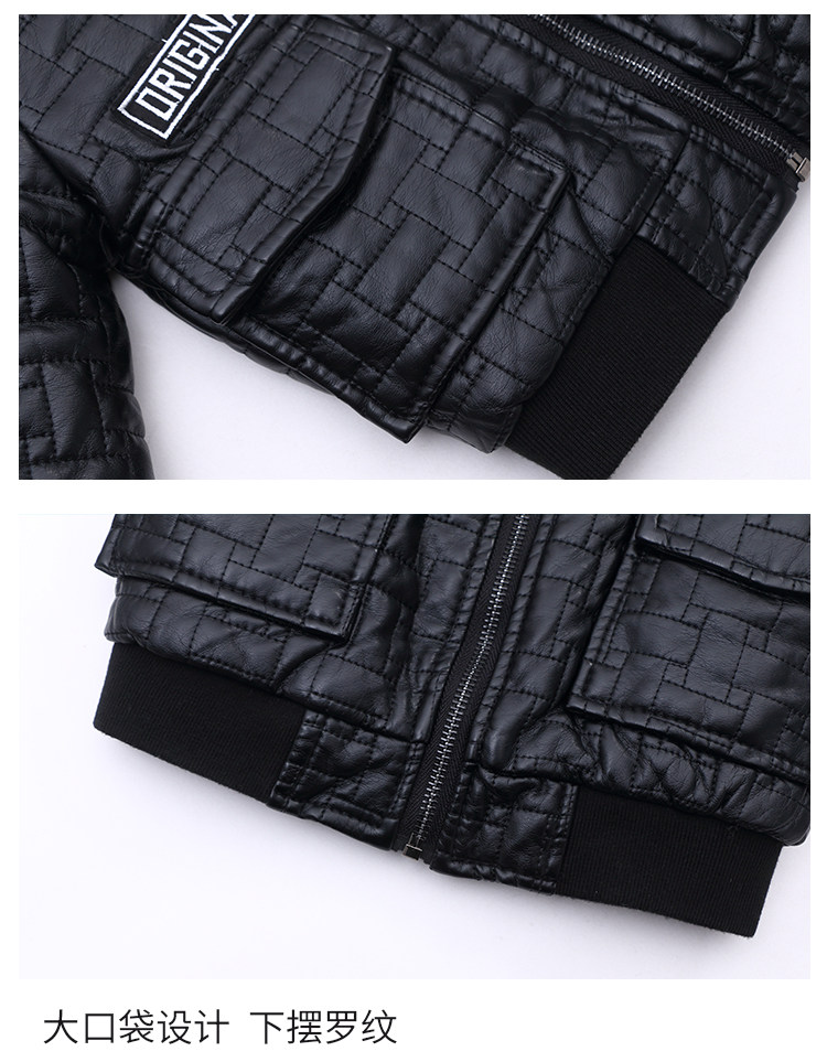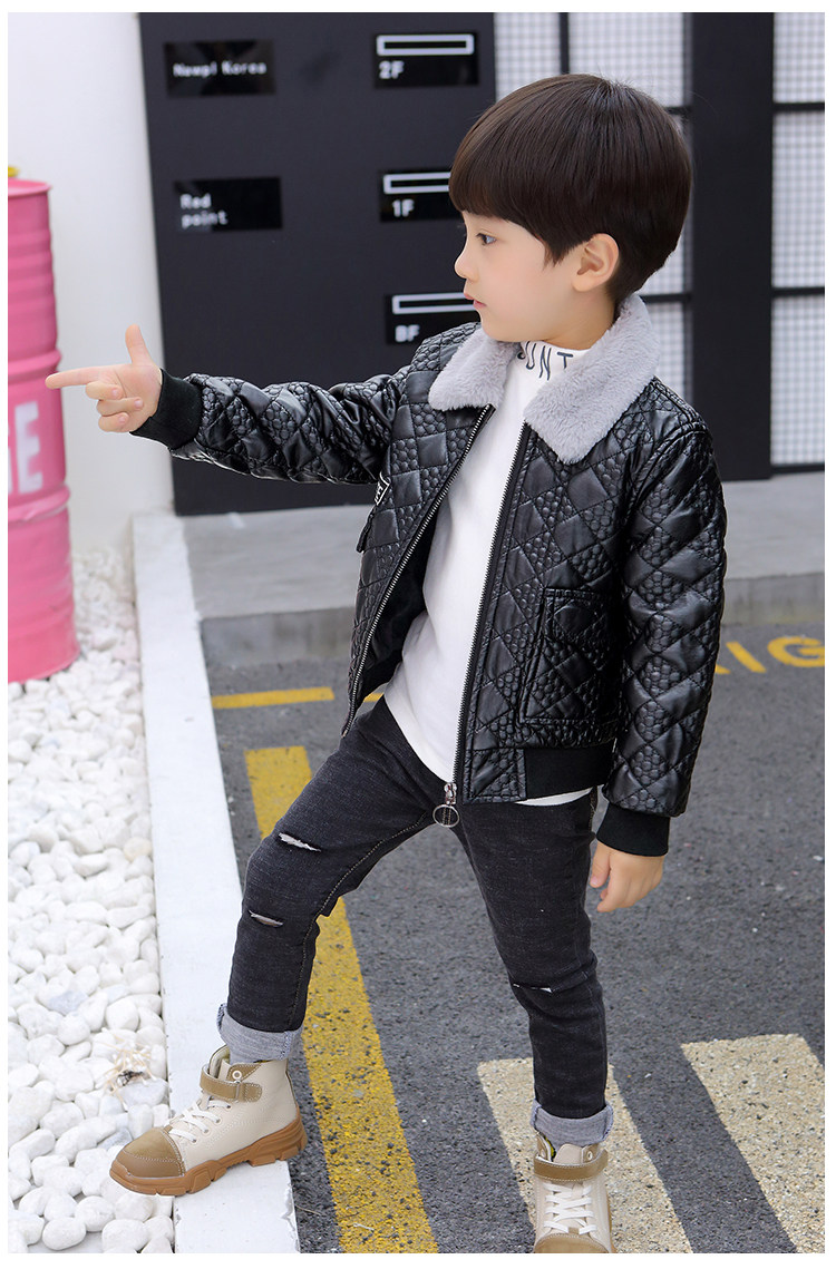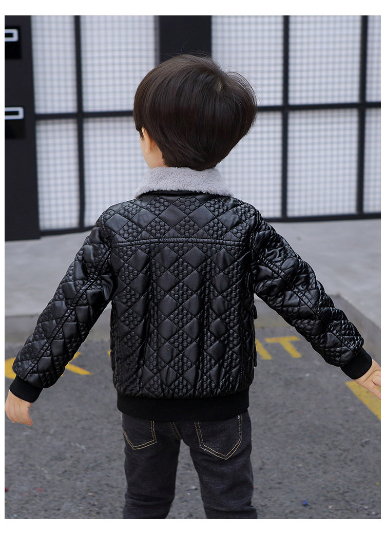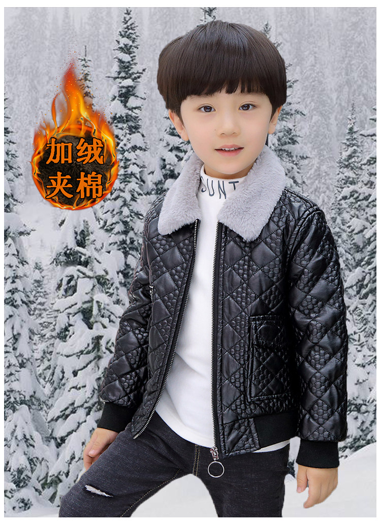 Boys' Leather Jacket 2025 Autumn and Winter Korean Style Trendy Boys' Fleece-Lined Thickened Children's Jacket for Young Children