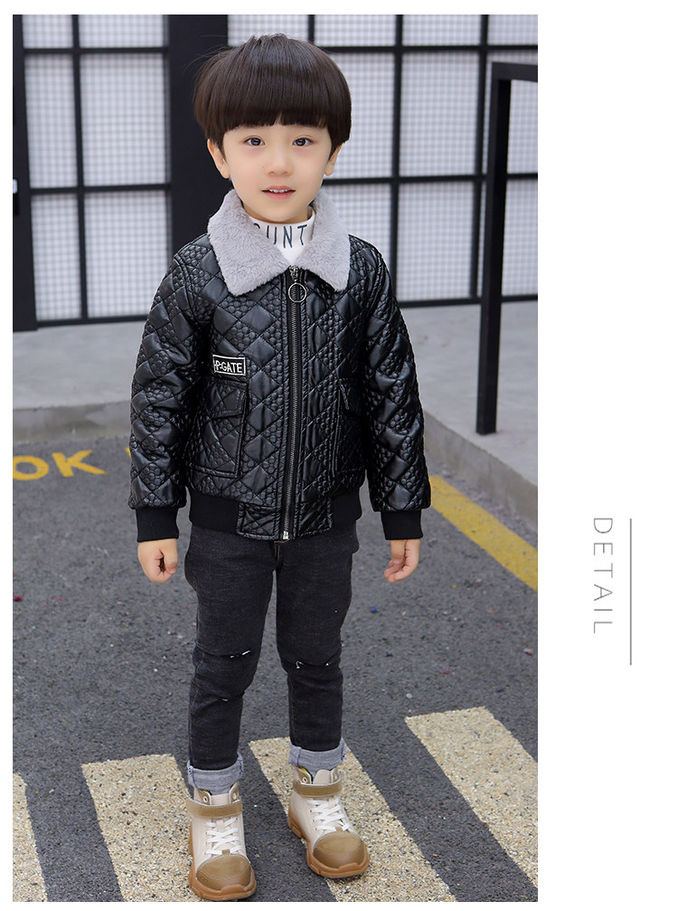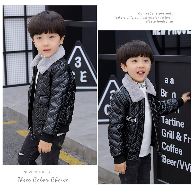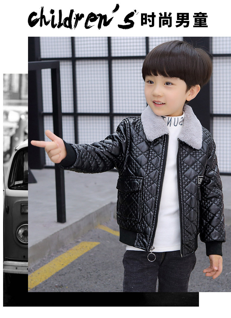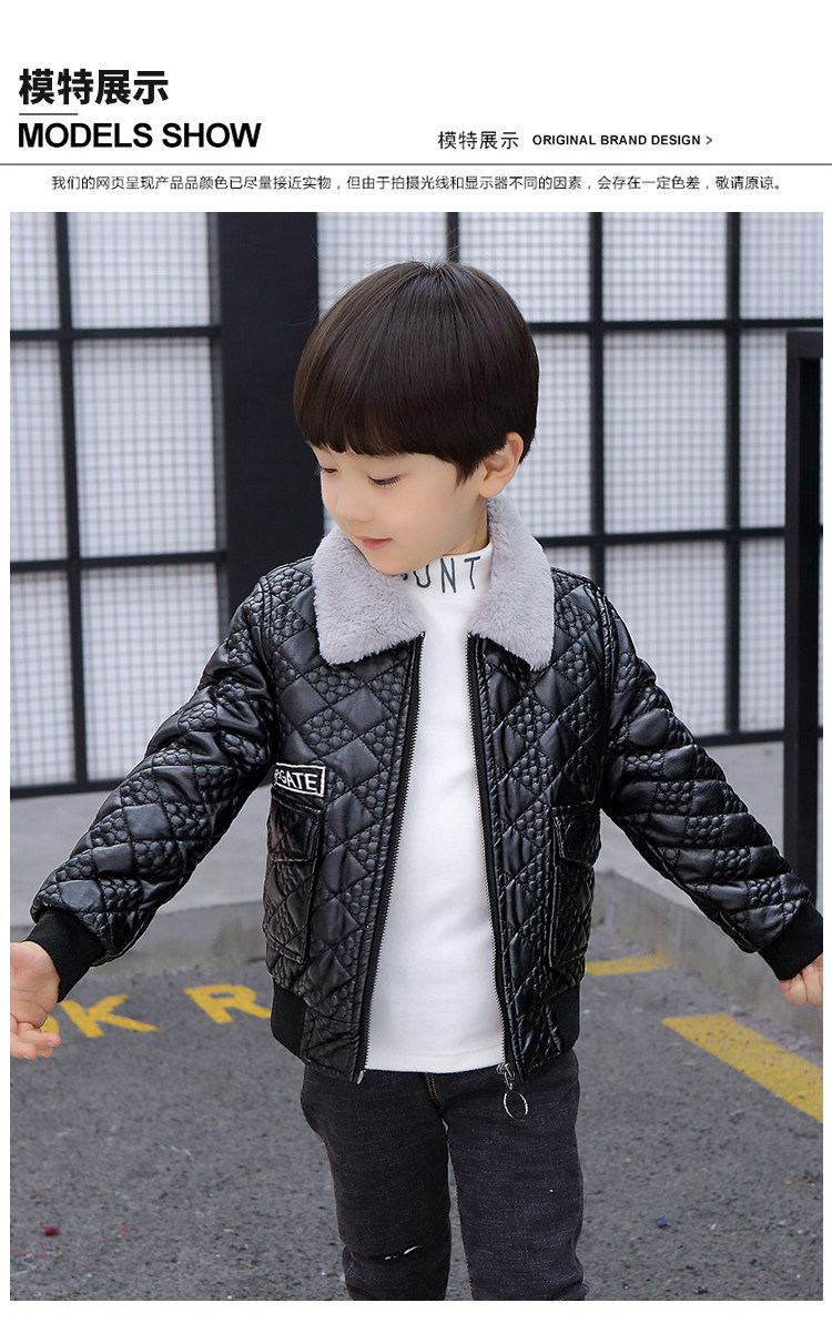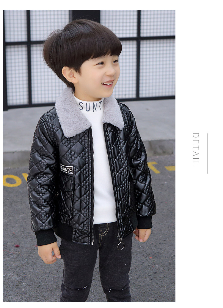 Boys' Leather Jacket 2025 Autumn and Winter Korean Style Trendy Boys' Fleece-Lined Thickened Children's Jacket for Young Children
