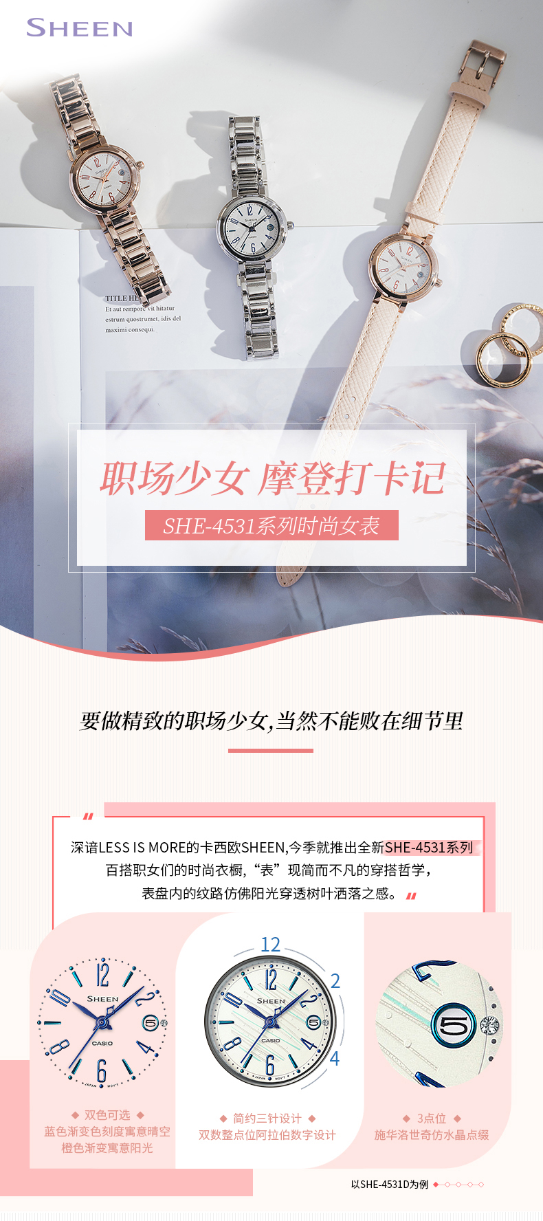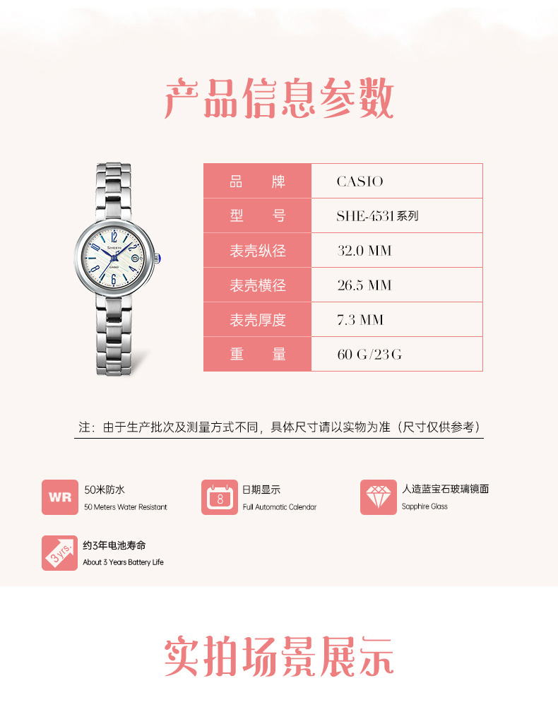 Casio Flagship Store She-4531 Waterproof Business Quartz Student Watch for Women Casio Official Website Sheen