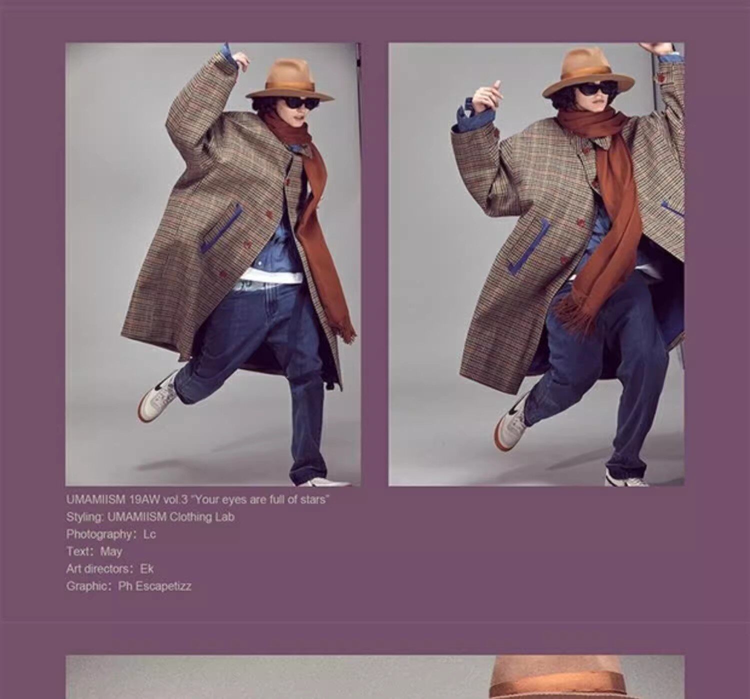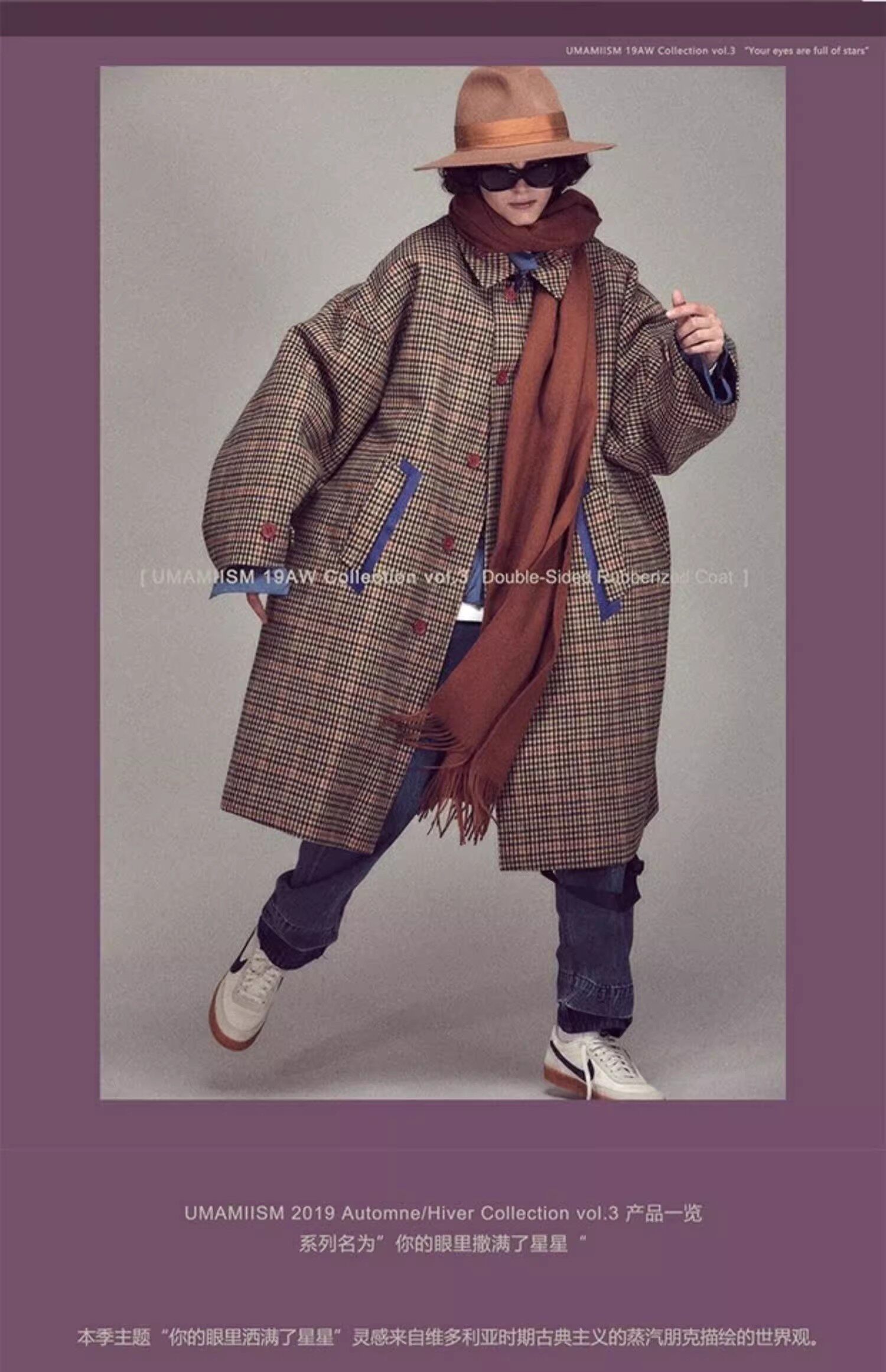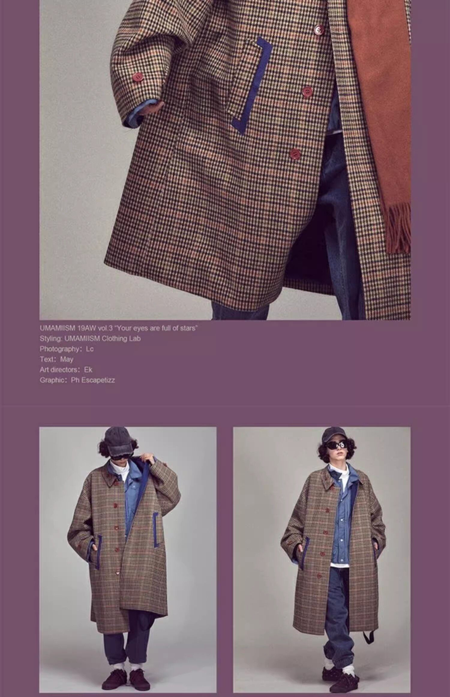 Umamiism Hard Bone Houndstooth Double-Sided Woolen Coat Men's Long British Style Trendy Student Plaid Coat