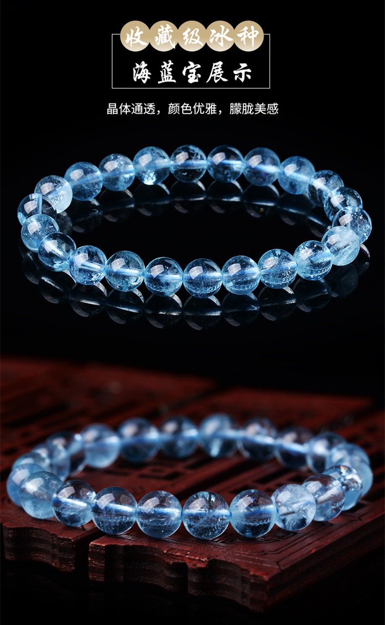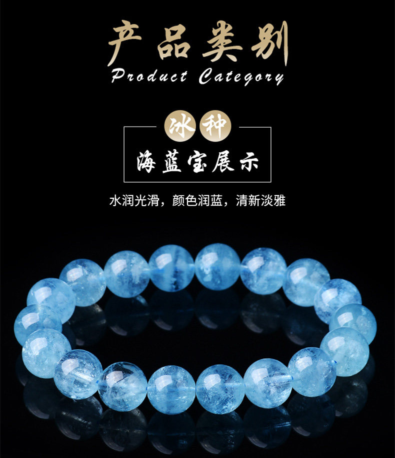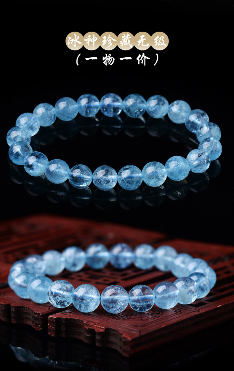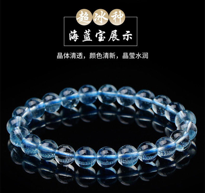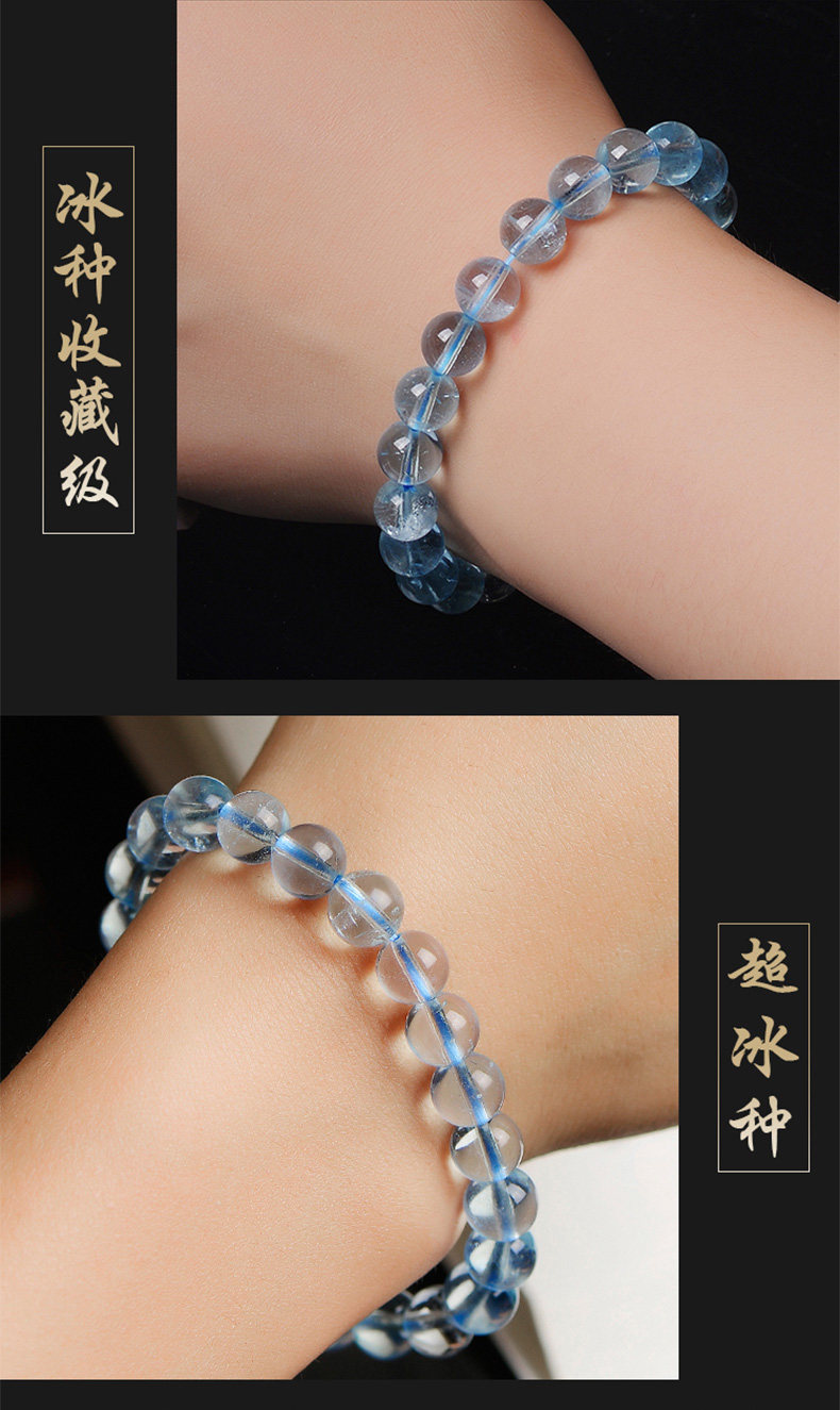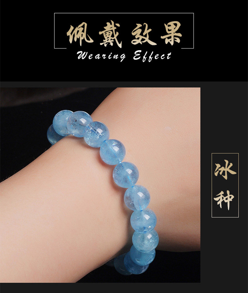 Sifuyuan Ice Aquamarine Bracelet Blue Gemstone Blue Crystal Beads Bracelet for Women Sea Blue Collectible Grade