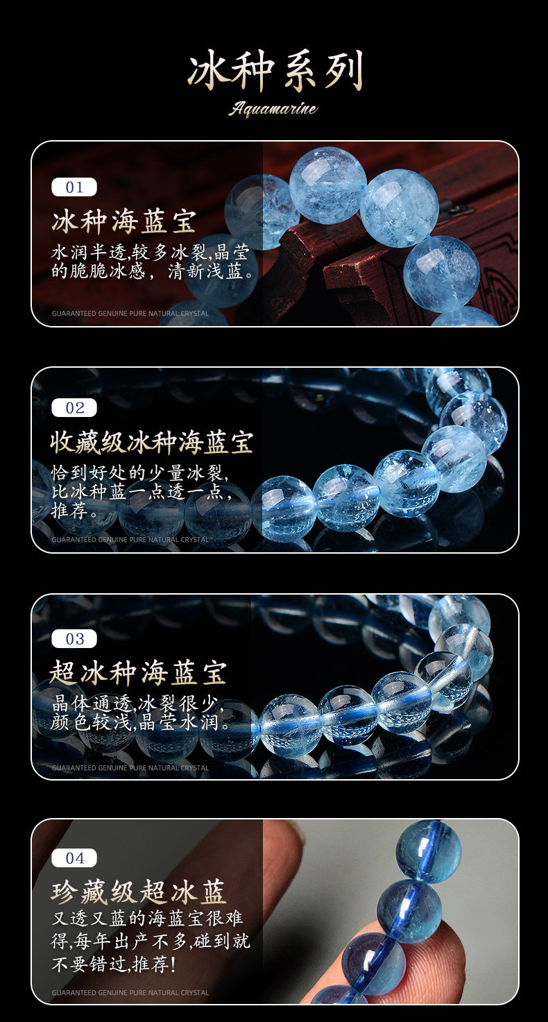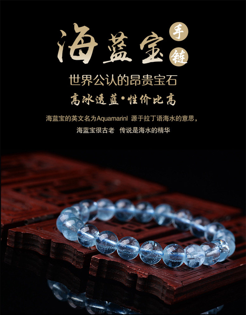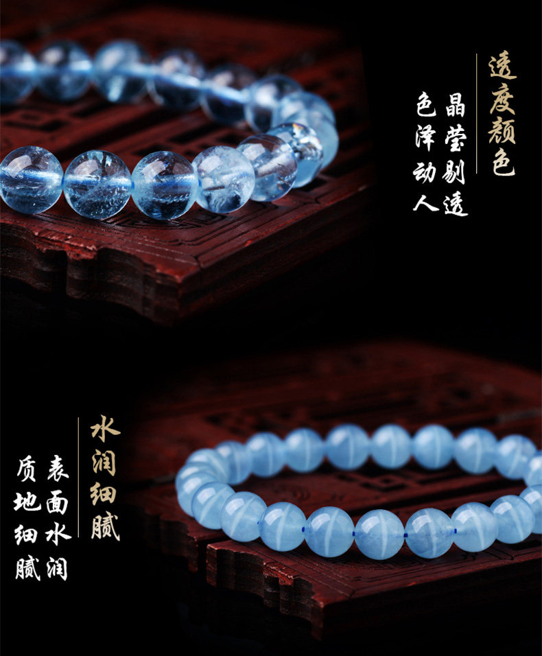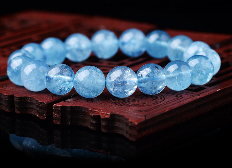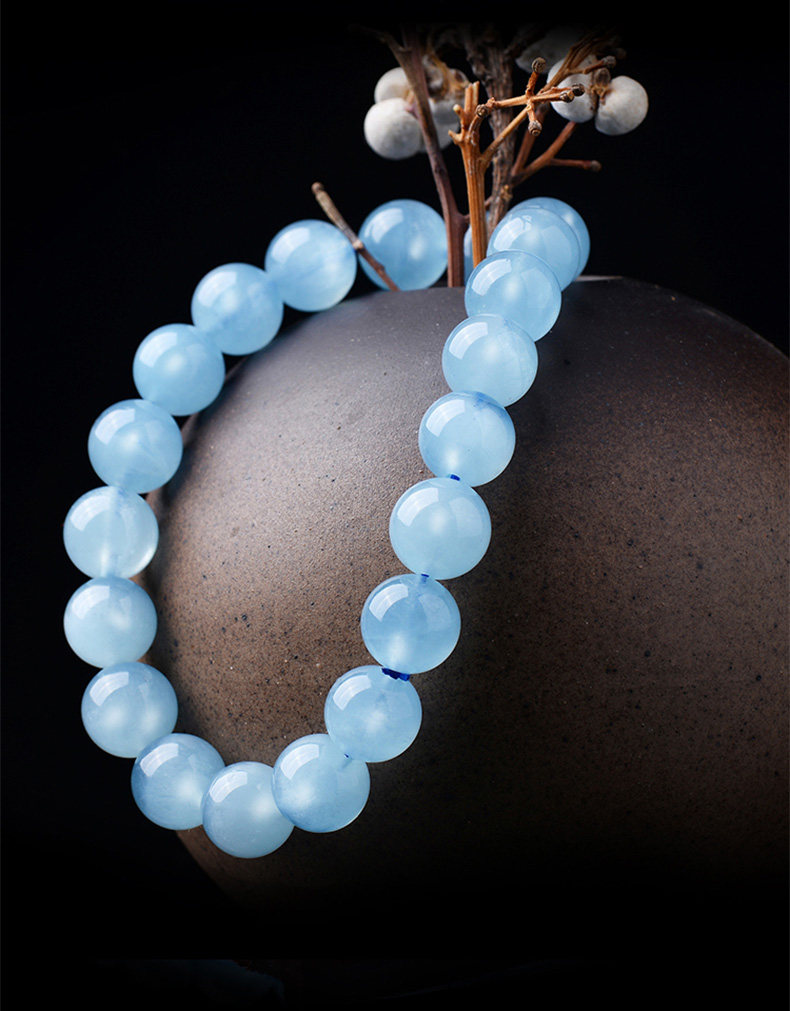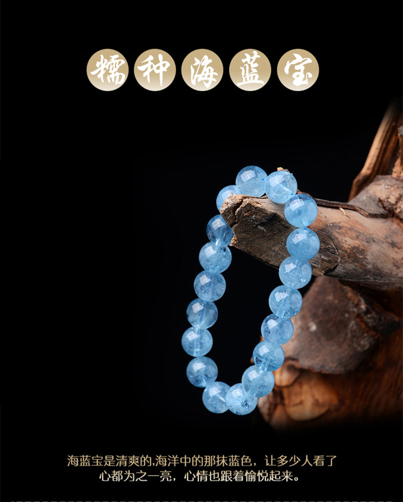 Sifuyuan Ice Aquamarine Bracelet Blue Gemstone Blue Crystal Beads Bracelet for Women Sea Blue Collectible Grade
