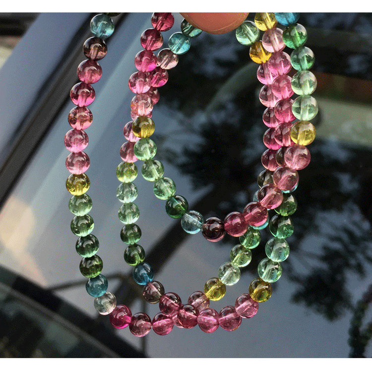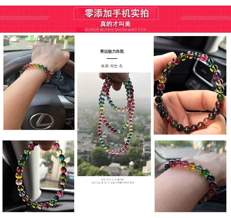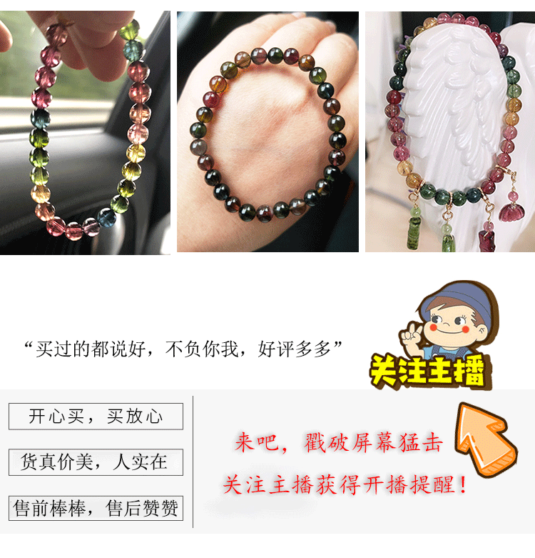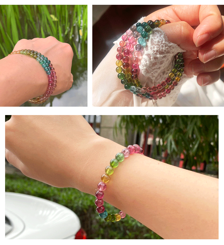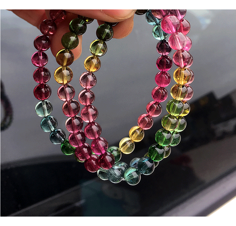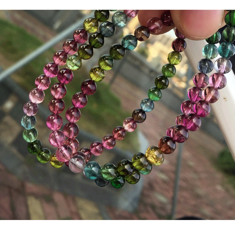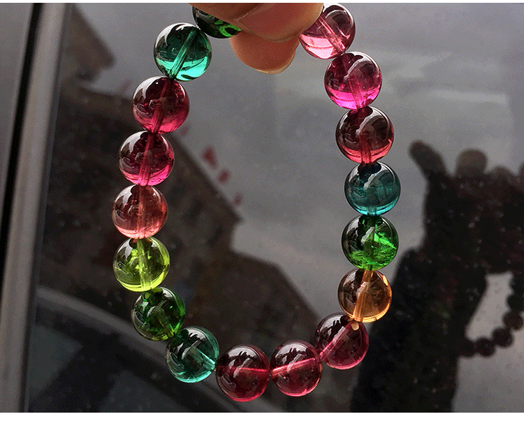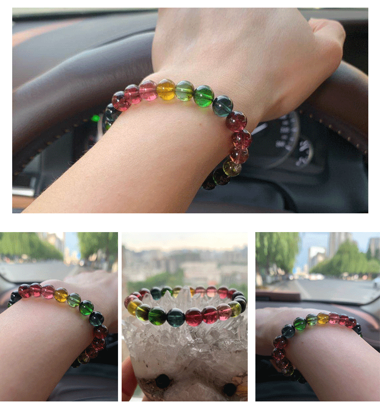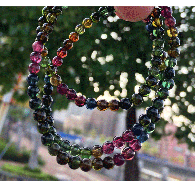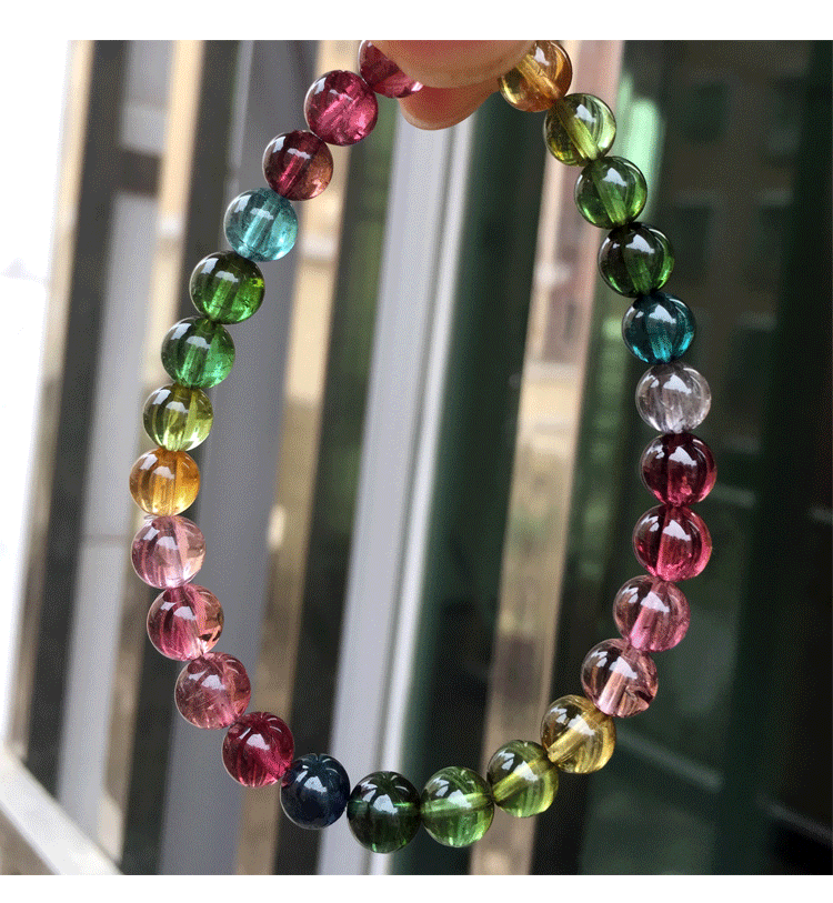 Natural Jewelry Tourmaline Brazilian Old Mine Candy Bracelet Rainbow Bracelet Color Label Rich and Gorgeous Single Circle Buddha Beads Multi-Circle