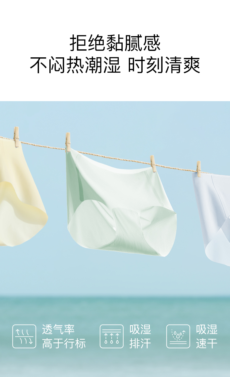 Ubras Small Cool Breeze Summer Thin Seamless Underwear for Women, Quick-Drying Pure Cotton Antibacterial Ice Silk Cool-Feeling Triangle Shorts