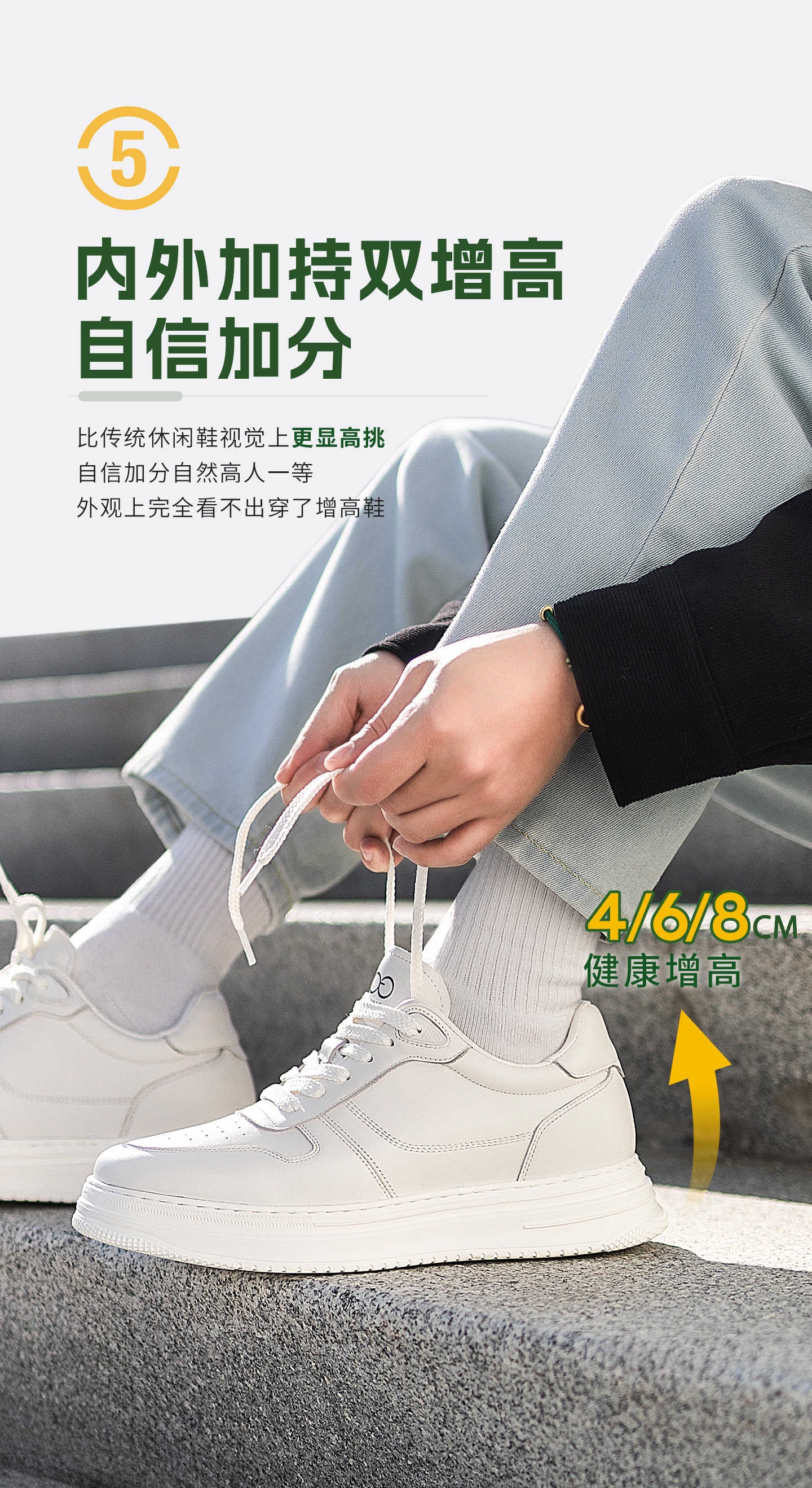 Gao Ge Height-Increasing Shoes for Men 8cm, Spring and Summer Casual Sneakers, Sports Shoes, Thick-Soled White Shoes, Invisible Inner Height-Increasing Shoes for Men