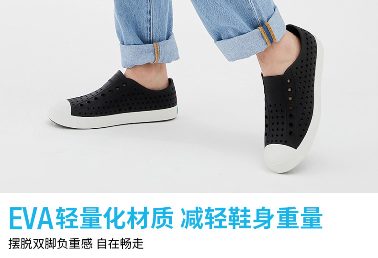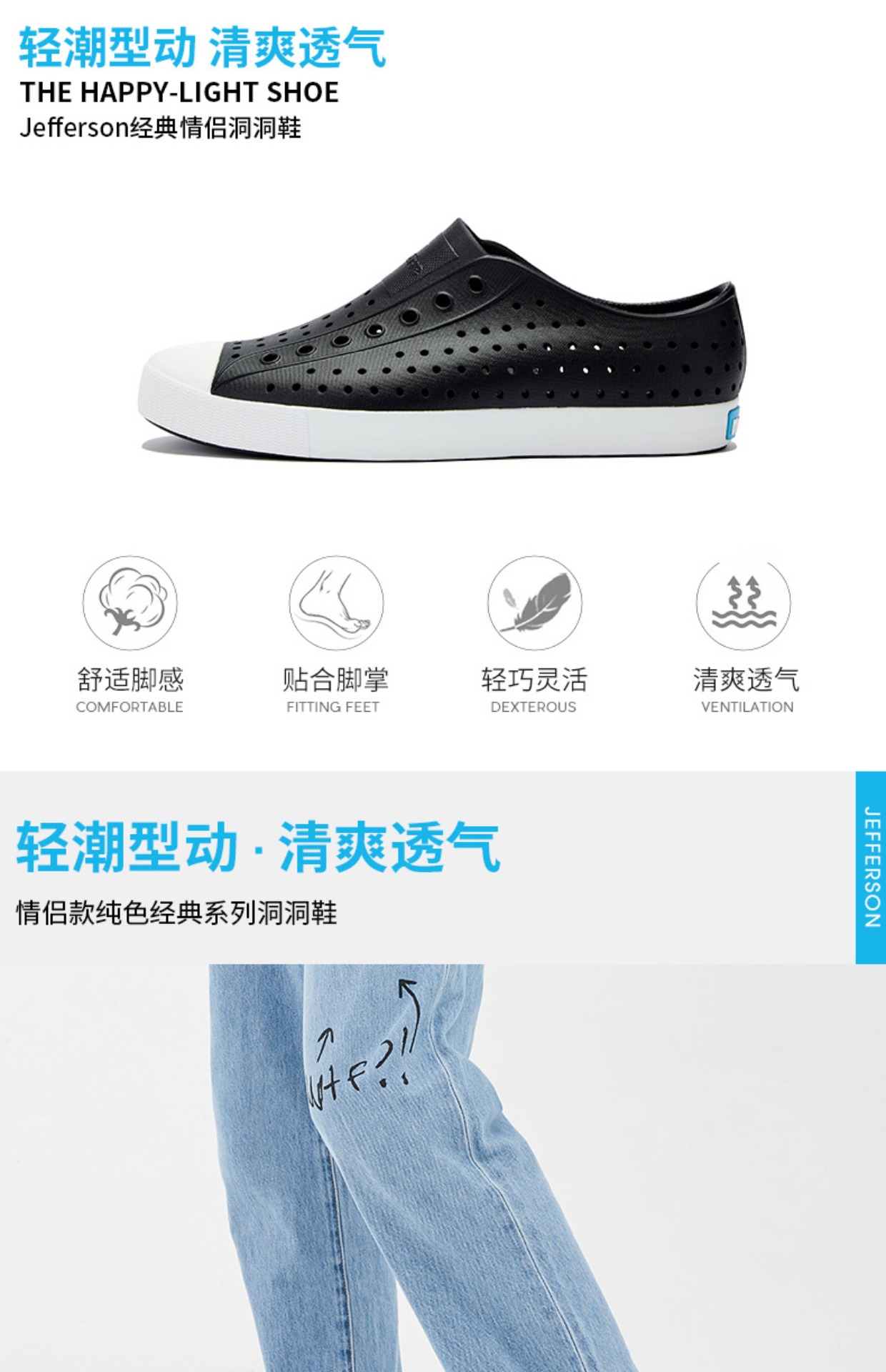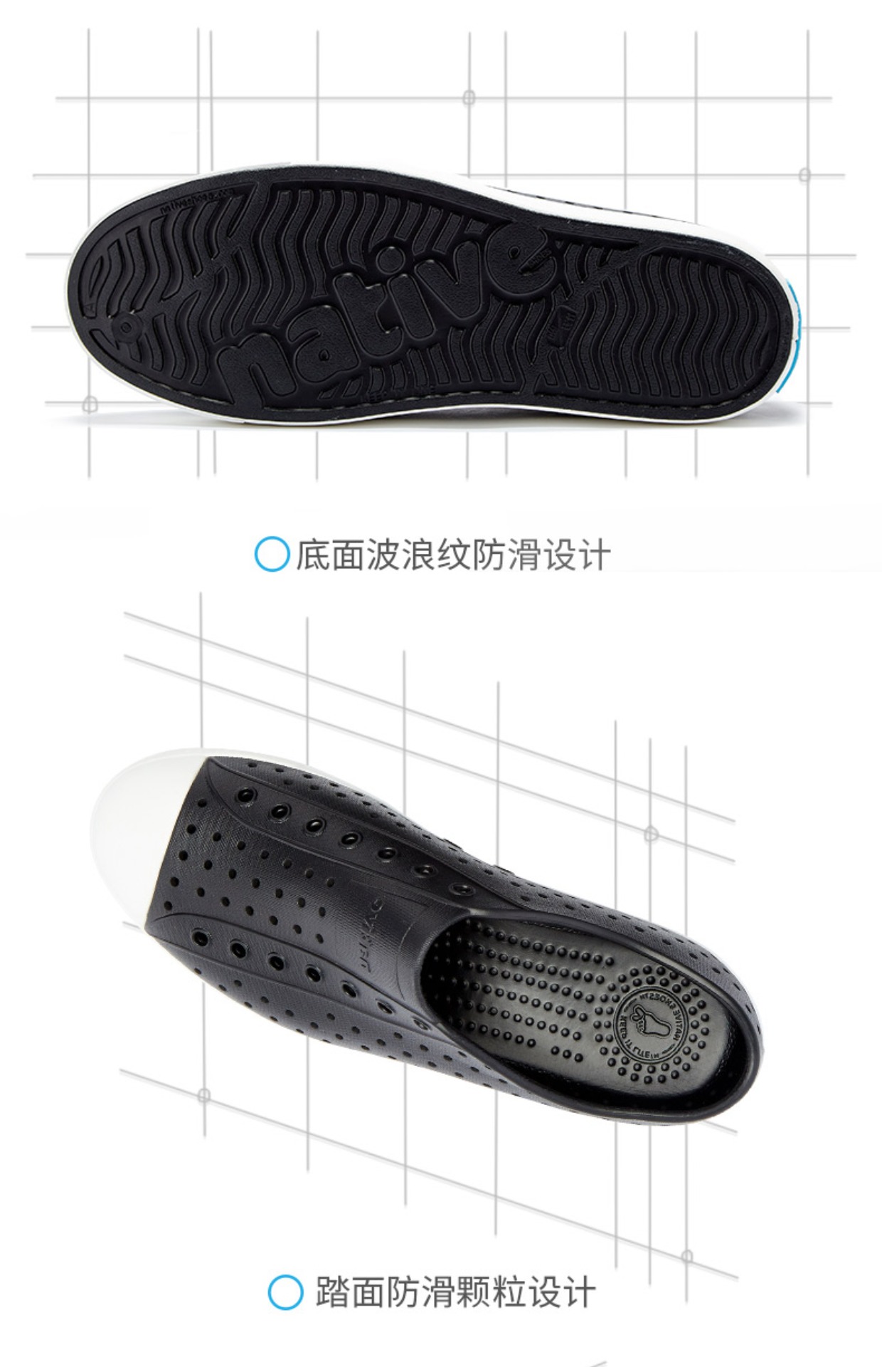 native Jefferson Classic Hole Shoes Men's and Women's Beach Shoes Non Slip Breathable Flats-toe Sandals