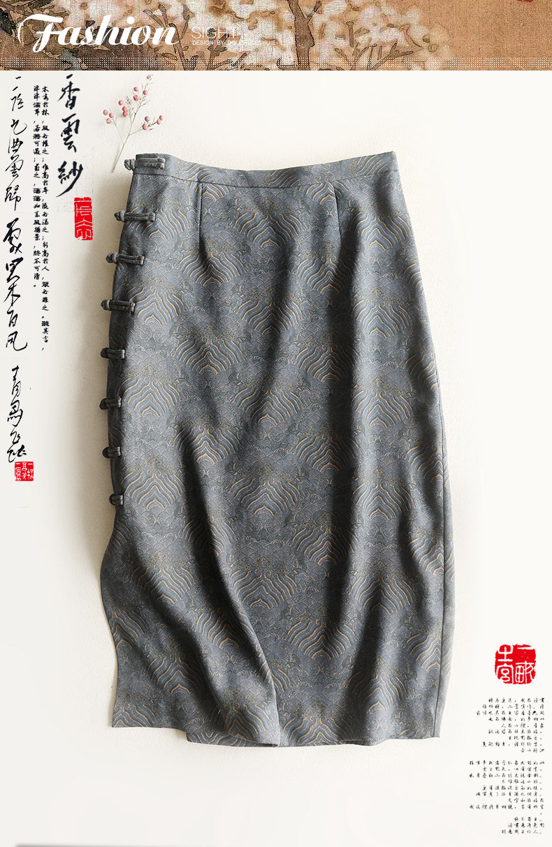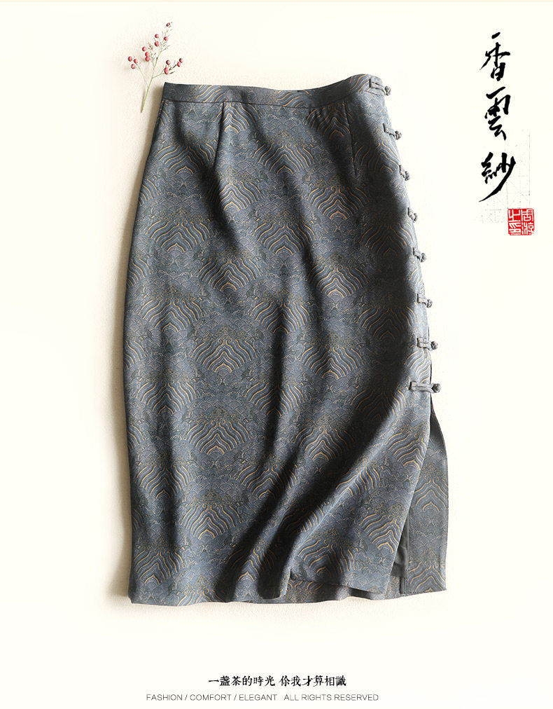 Yunshu Original Silk Spun Xiangyun Silk Chinese-Style Artistic Cheongsam Half Skirt Retro Hip-Hugging Wrap Skirt New Style