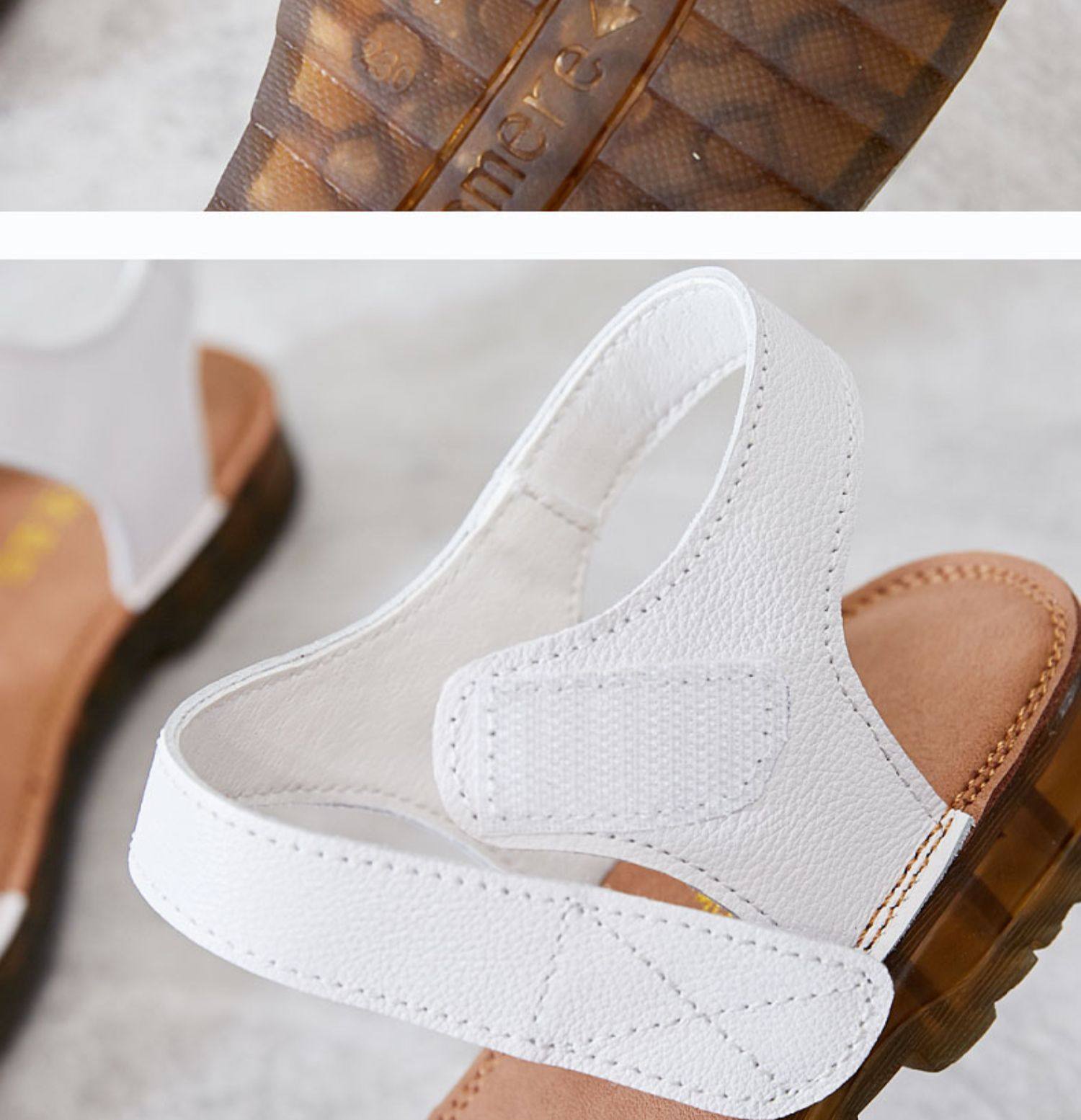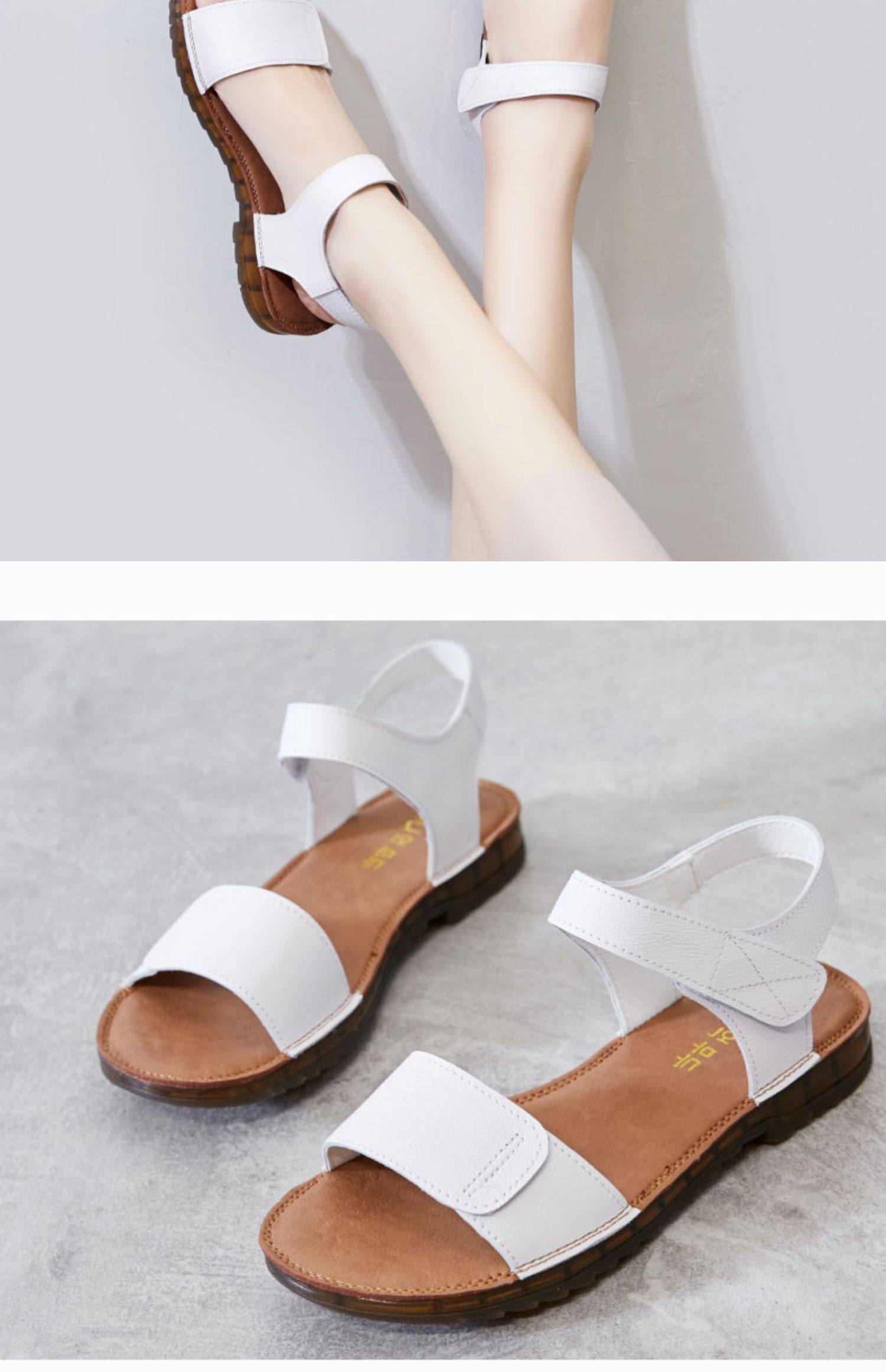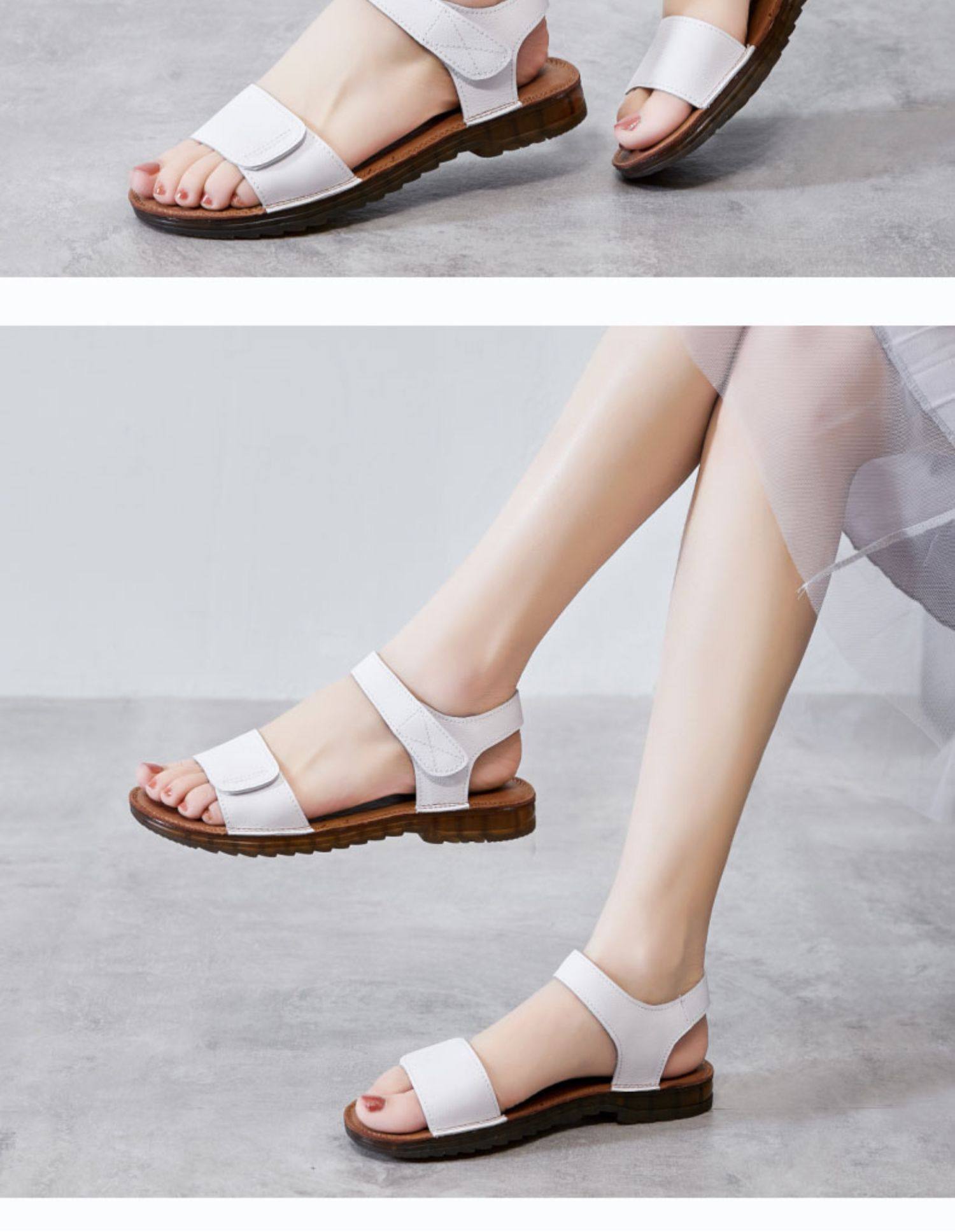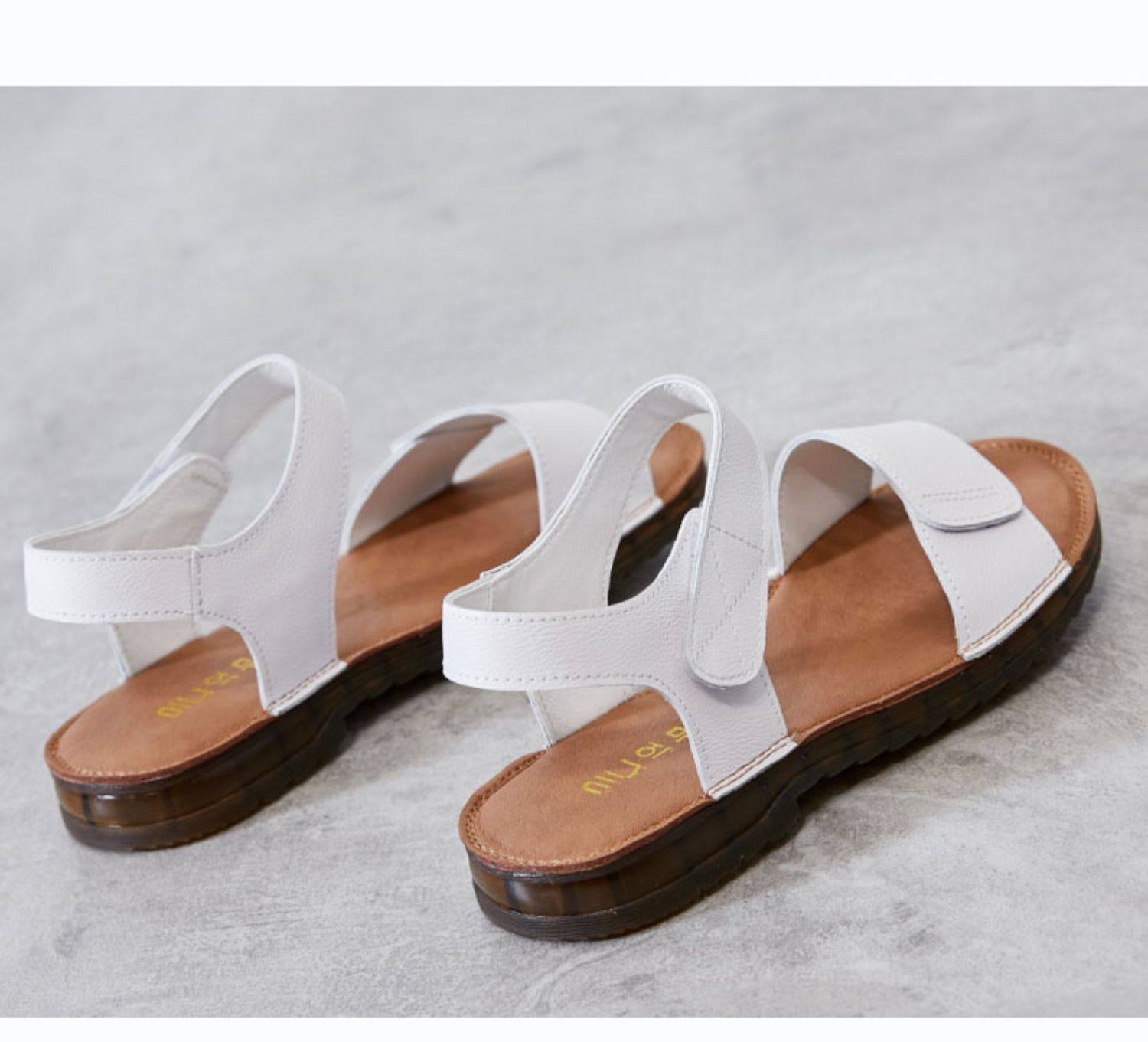 2025 Summer New Genuine Leather Soft Sole Flat Sandals for Women, Pregnant Women, White Nurse Casual Comfortable Large Size 41