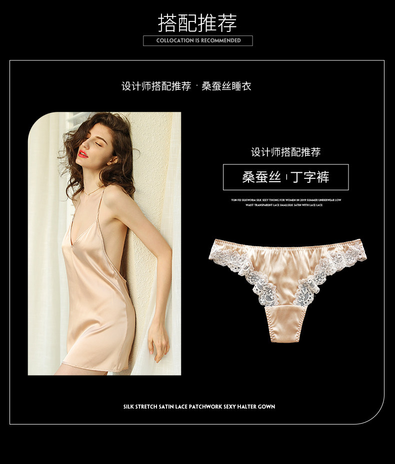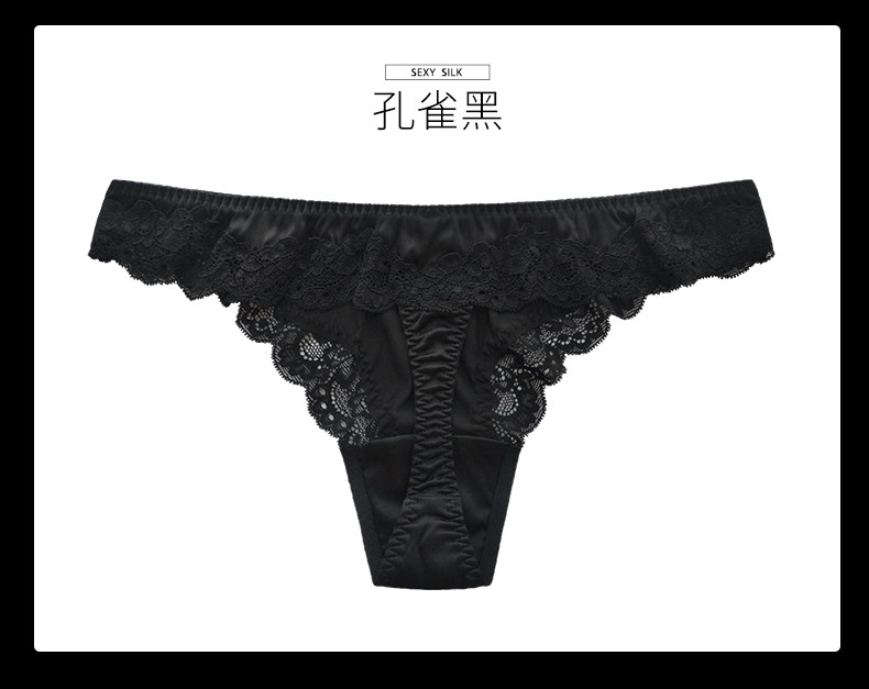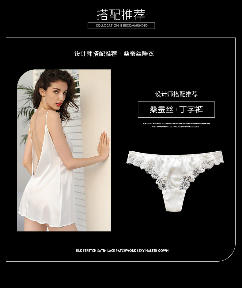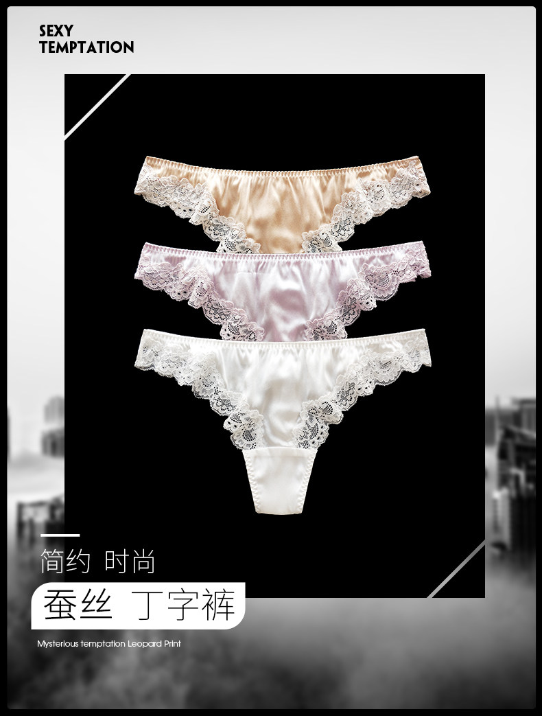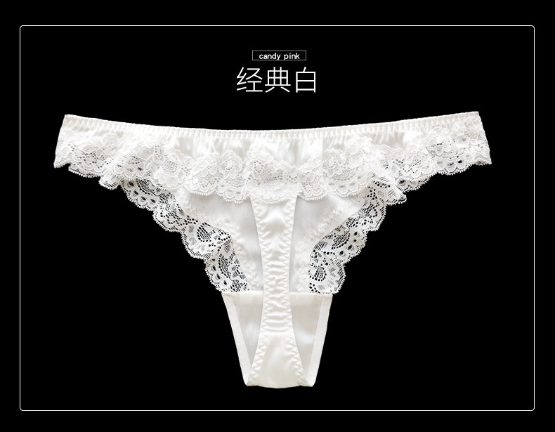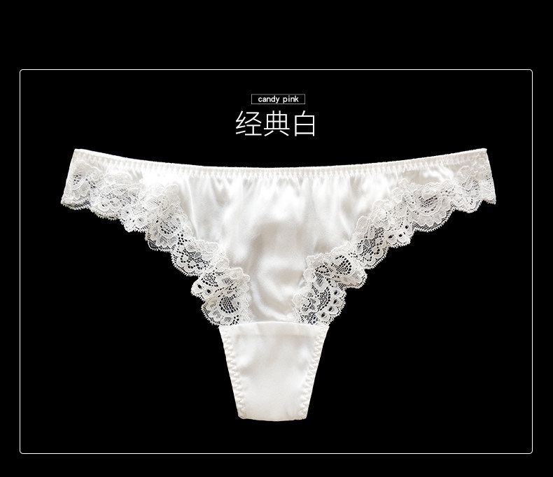 Silk Sexy Thong for Women, Autumn and Winter White Luxury Panties, Low-Waist Seamless Sweet Lace Girl Underwear