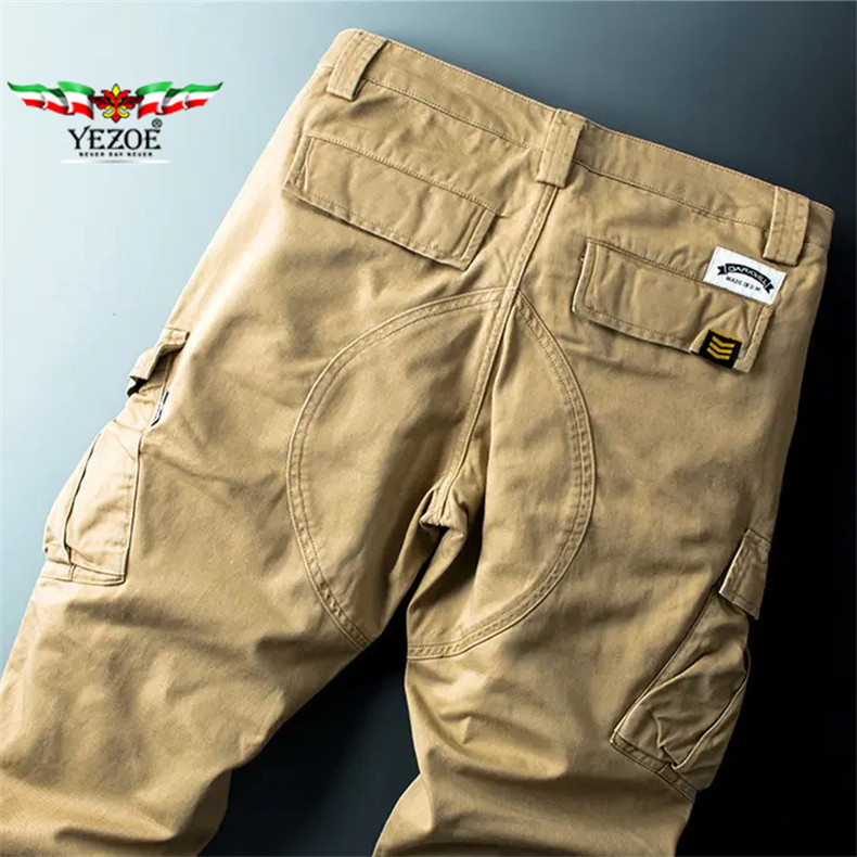 Yezoe Us Military Khaki Stretch Cargo Pants Men's Loose Straight-Leg Casual Pants New Trendy Brand Pants