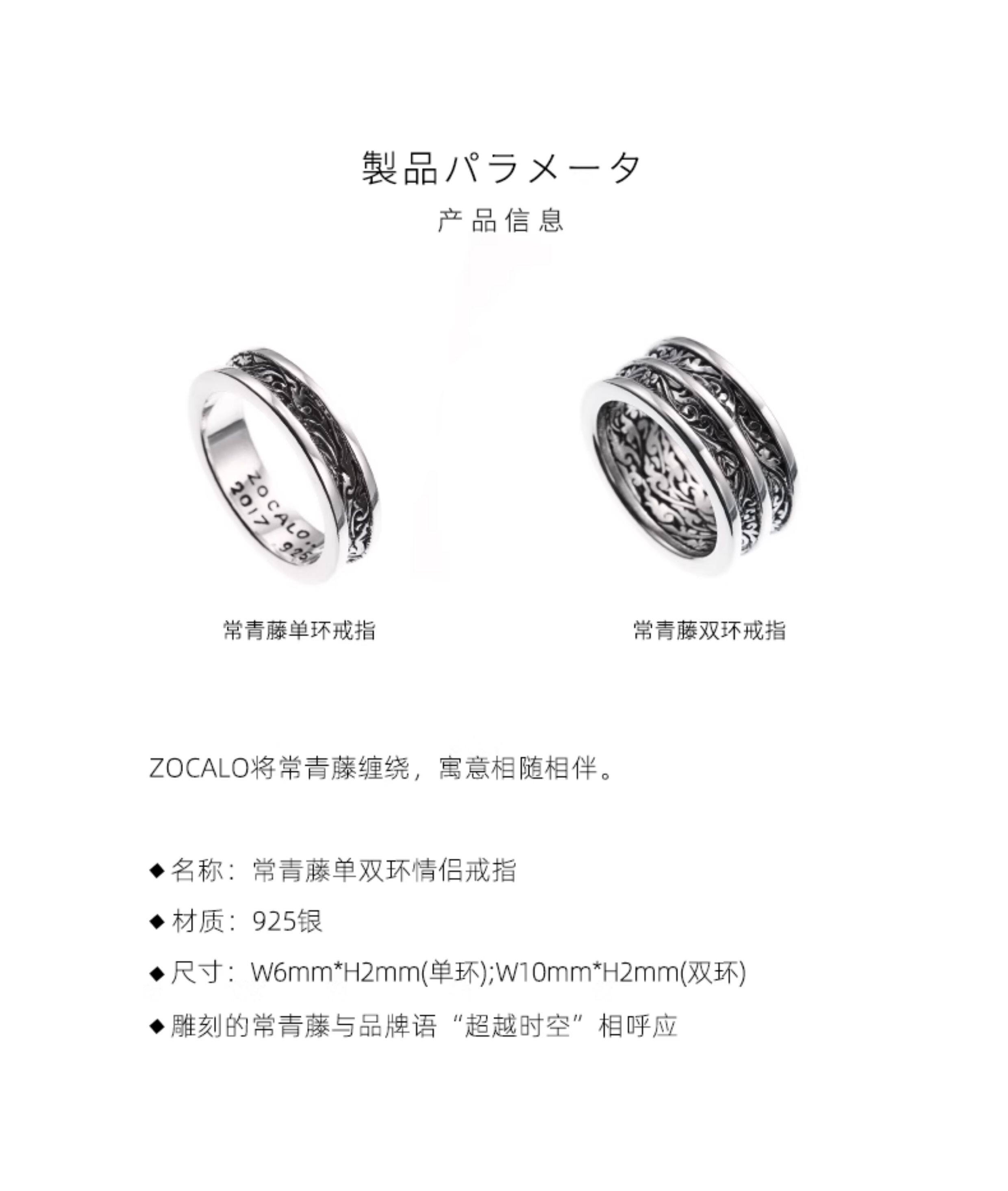 [Popular Choice] Zocalo Official official store Ivy Series Men's and Women's Couple 925 Silver Ring