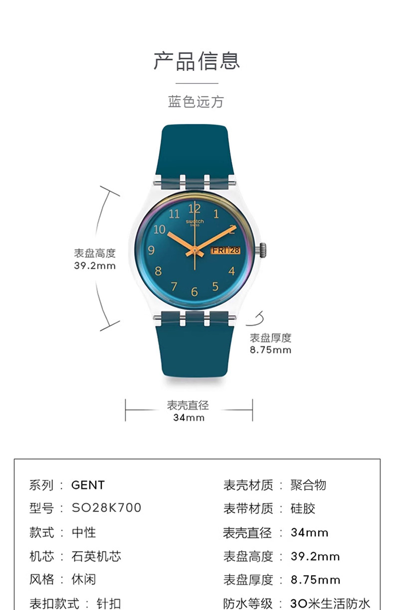 Swatch Swatch Swiss watch junior high school student calendar colorful dial quartz watch exam gift