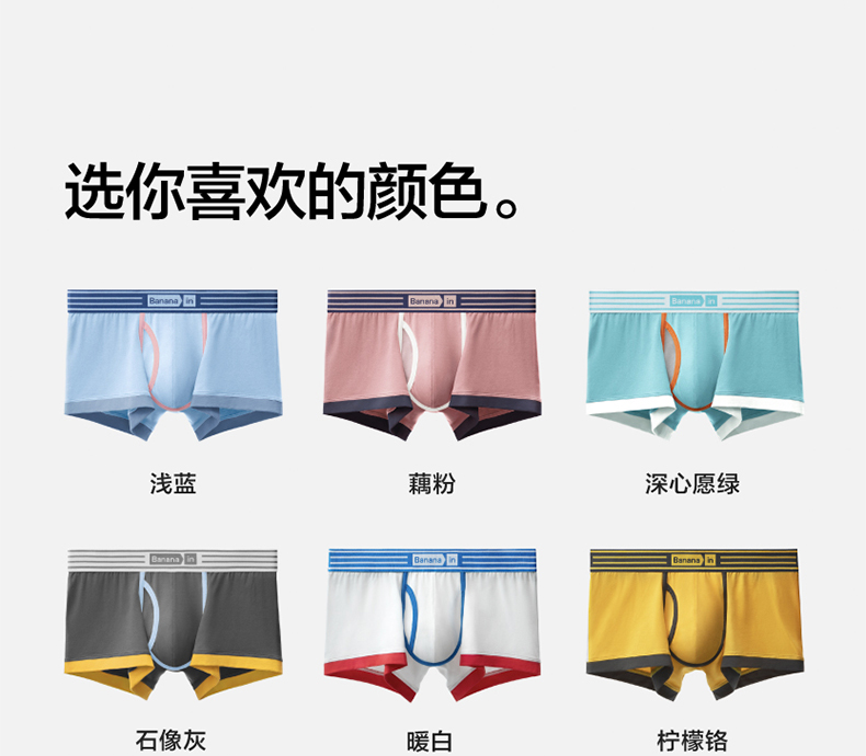 3 Pieces | Jiao Nei Yinpi 555Color Men's Boxer Briefs Pure Cotton Breathable Crotch New Style Youth Boxer Shorts