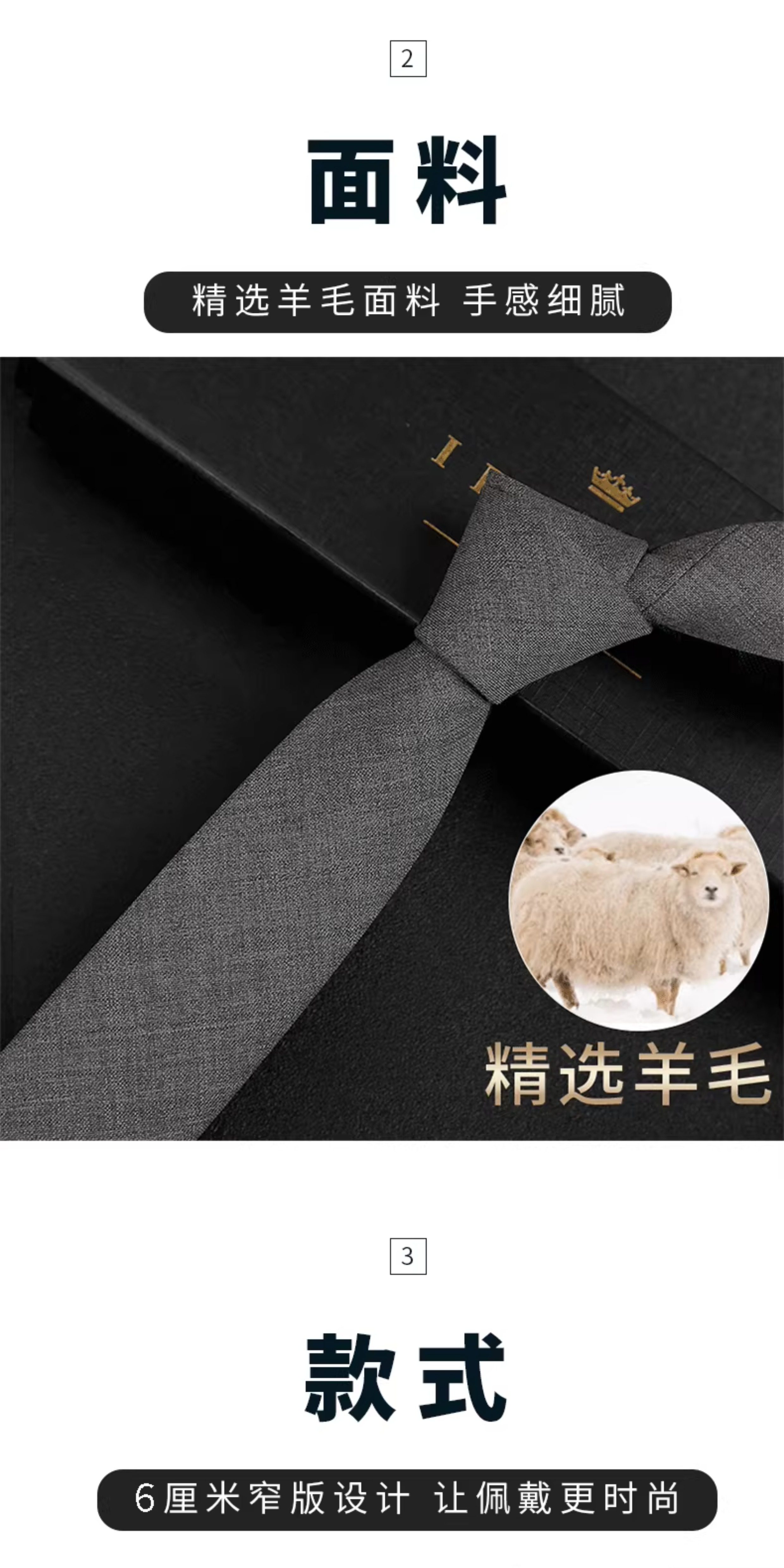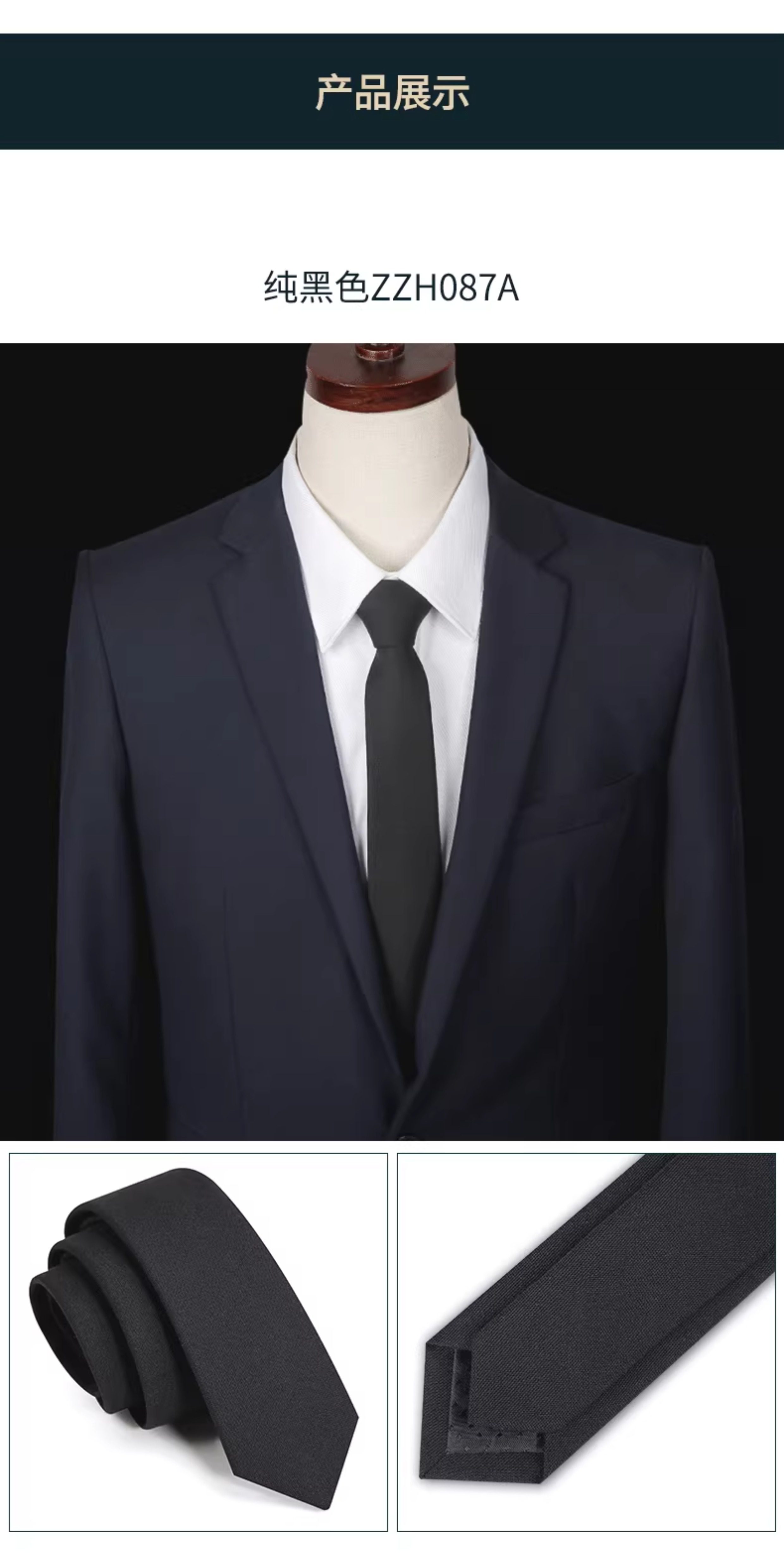 Men's Zip-Up Tie, Business Formal Wear, Light Luxury, Black, Hand-Tied Wool, Easy to Wear, Trendy Korean Style, No Need to Tie, College Style