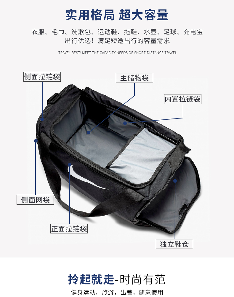 Nike Nike Shoulder Bag Men's and Women's Training Bag Large Capacity Shoulder Handbag Fitness Crossbody Bag Dm3976-010