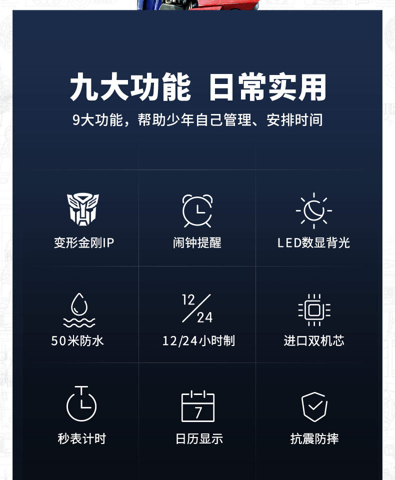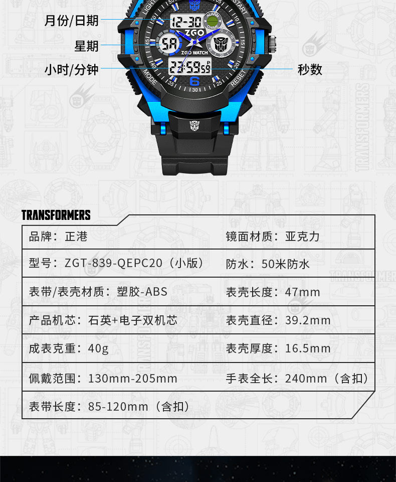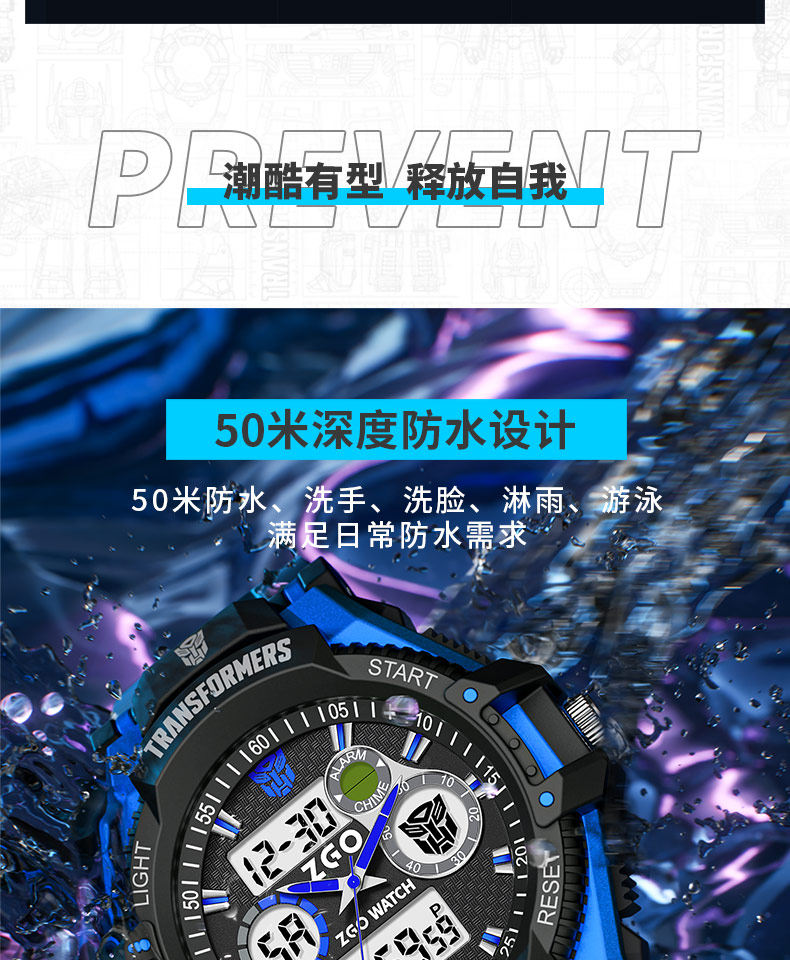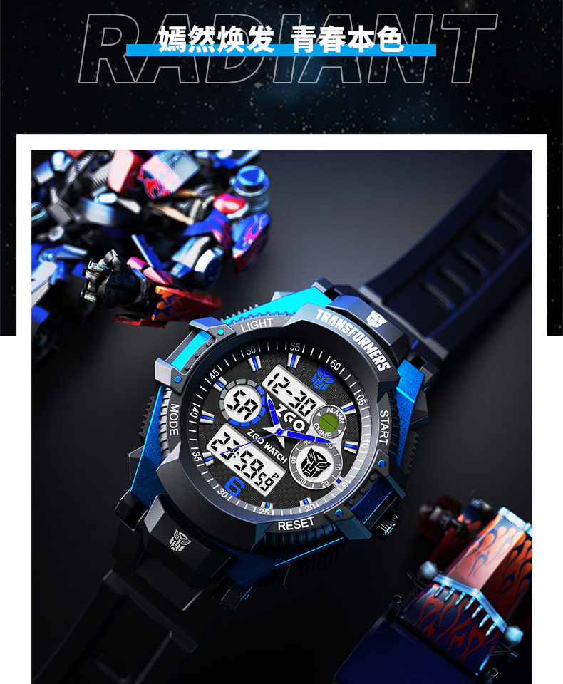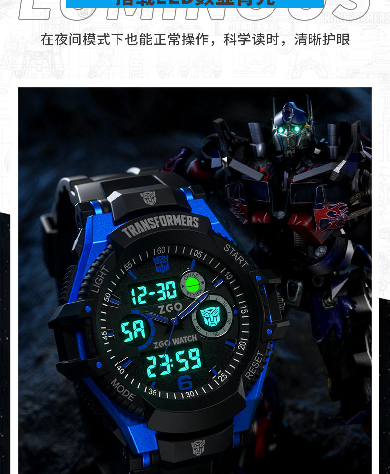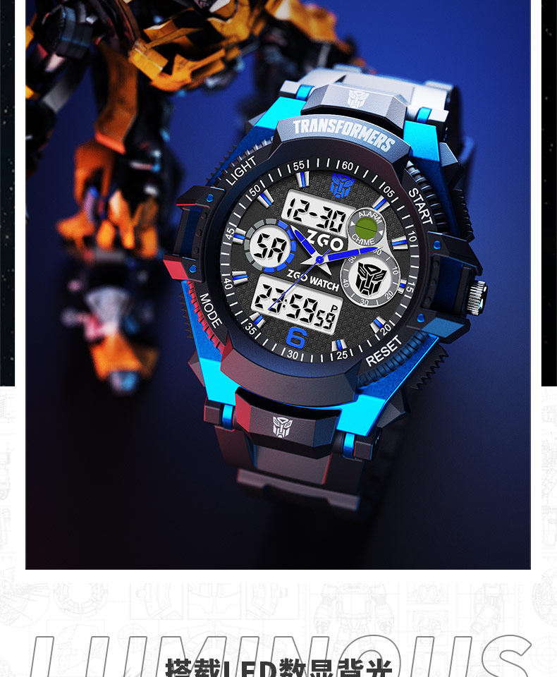 Zhenggang Zgox Transformers Children's Watch for Boys, Suitable for Middle and Primary School Students, Only Shows Time, Waterproof Electronic Watch for Boys