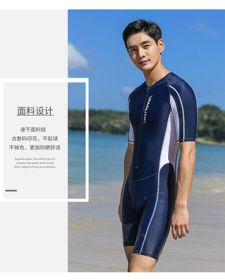 One-Piece Men's Swimsuit for Adults, Children and Teenagers, Large Size, Fat Children, Professional Long-Sleeved Long Pants, Sun Protection Swimming Trunks Set