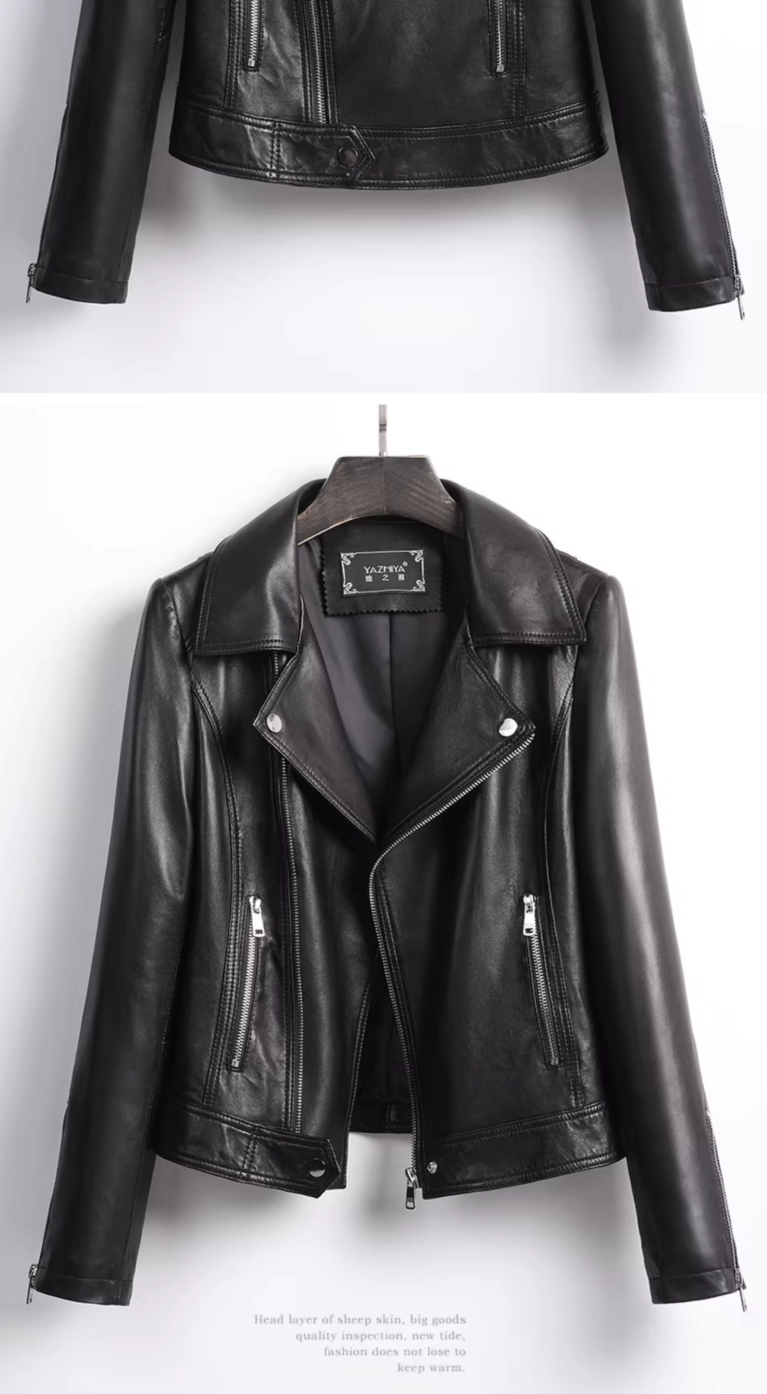 2026 Spring and Autumn New Genuine Leather Jacket for Women, Short Haining Sheepskin Jacket, Popular Hong Kong Style Small Coat, Biker Jacket