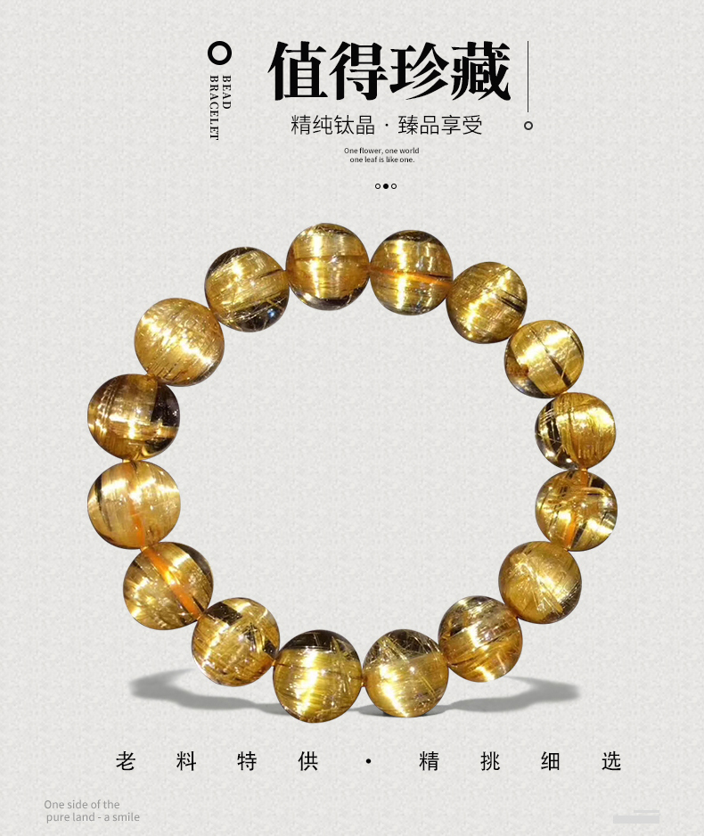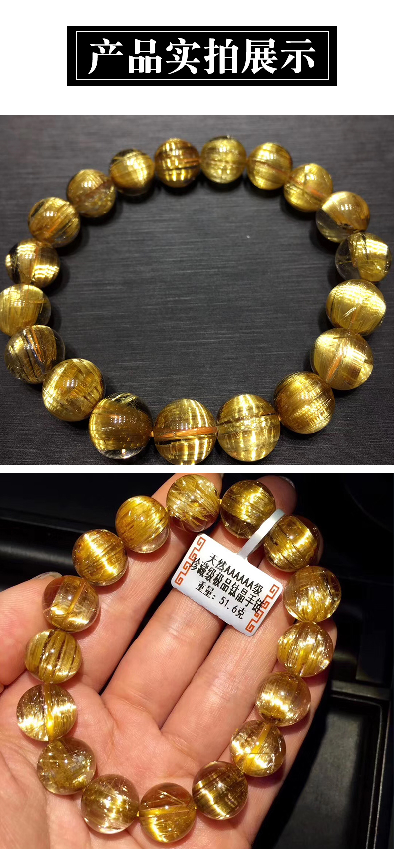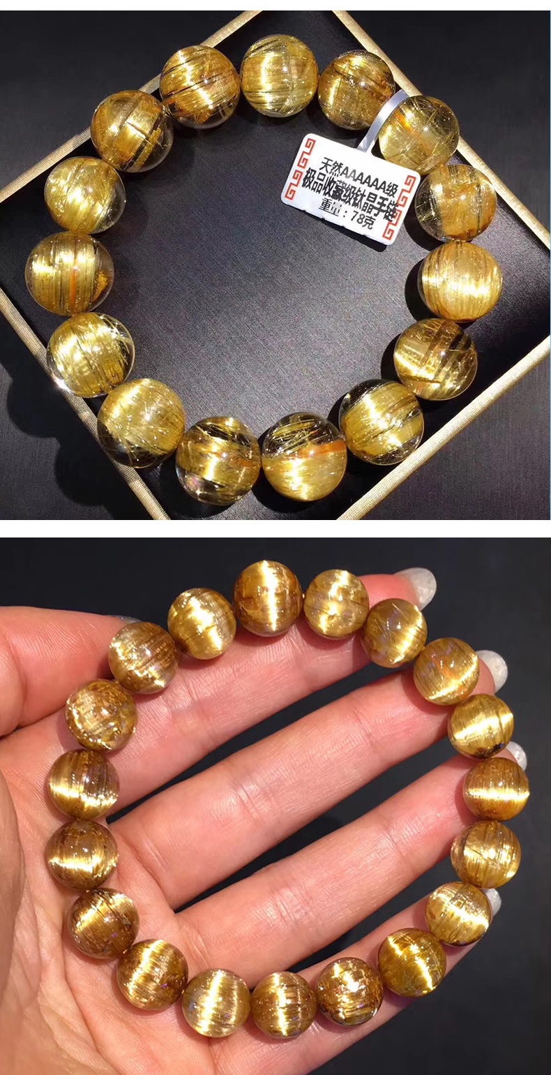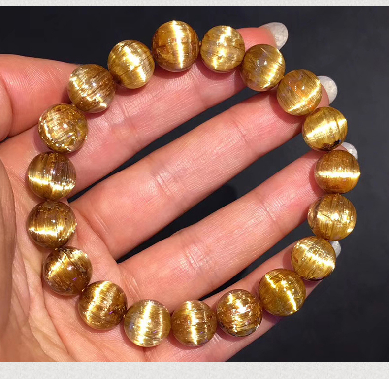 Crystal Flawless Natural Brazilian Titanium Crystal Bracelet for Women, Golden Hair Crystal Bracelet for Men, Cat's Eye Yellow Crystal Crystal