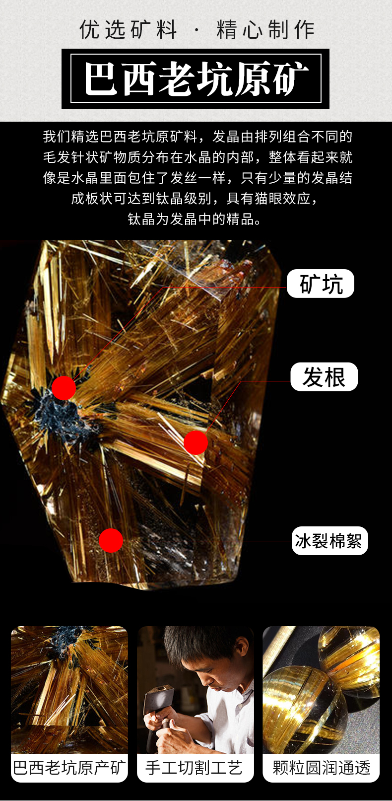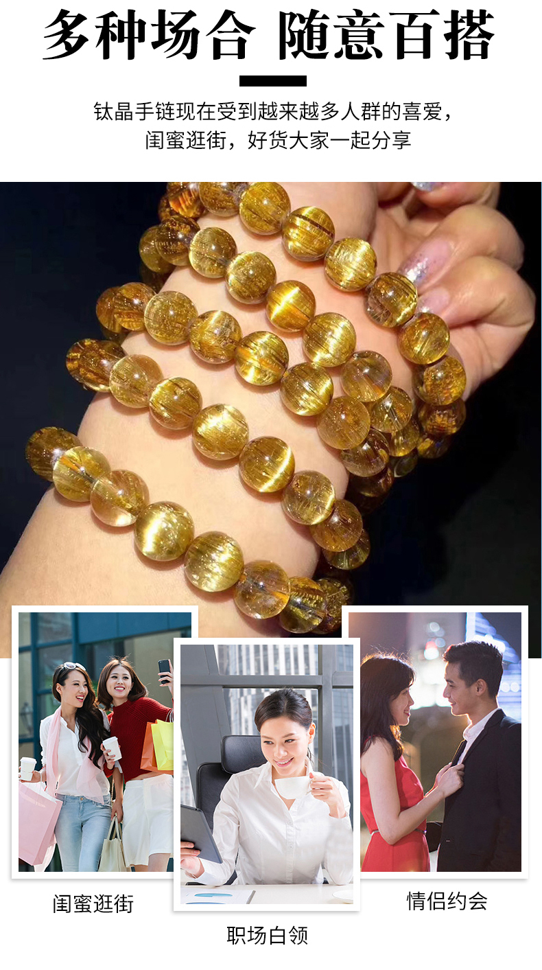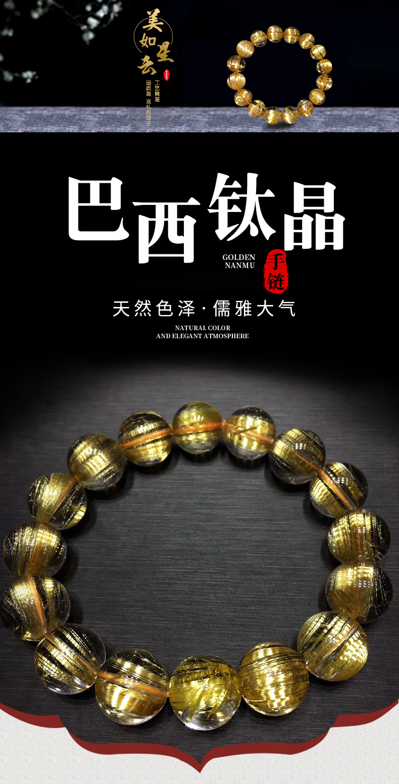 Crystal Flawless Natural Brazilian Titanium Crystal Bracelet for Women, Golden Hair Crystal Bracelet for Men, Cat's Eye Yellow Crystal Crystal
