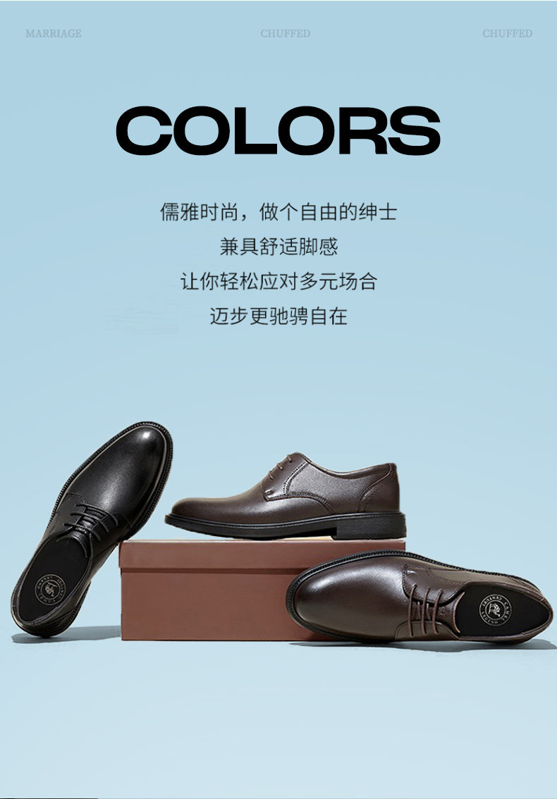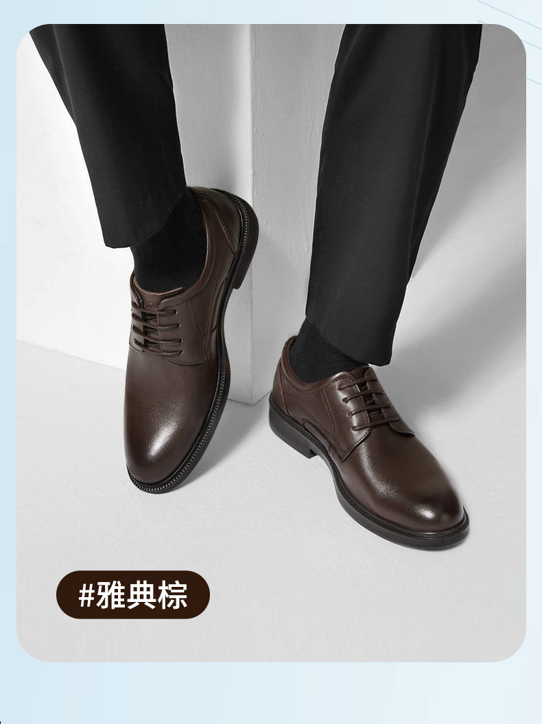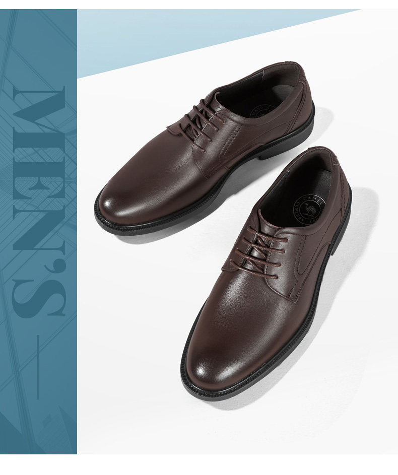 Camel 2026 Spring Comfortable Casual Soft Sole Leather Shoes for Men Wedding Groom Formal Business Genuine Leather Height-Increasing Derby Shoes