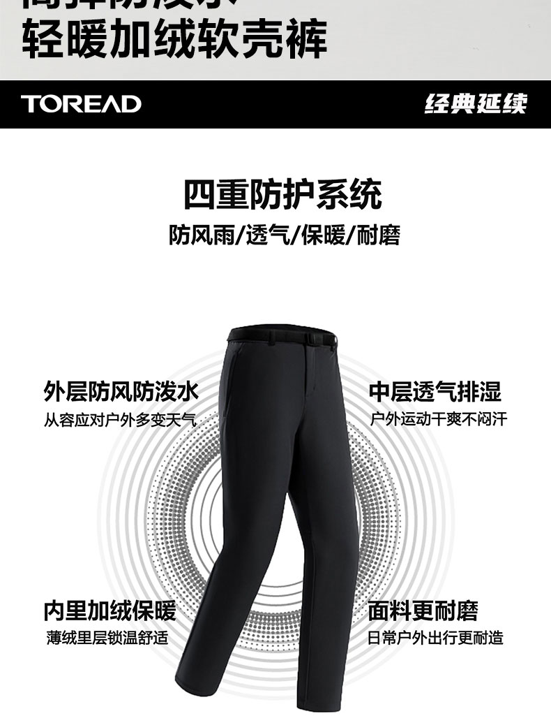 Pathfinder Softshell Pants for Men, Autumn and Winter Outdoor Pants, Windproof, Waterproof, Warm, Fleece-Lined, Hiking and Mountaineering Trousers