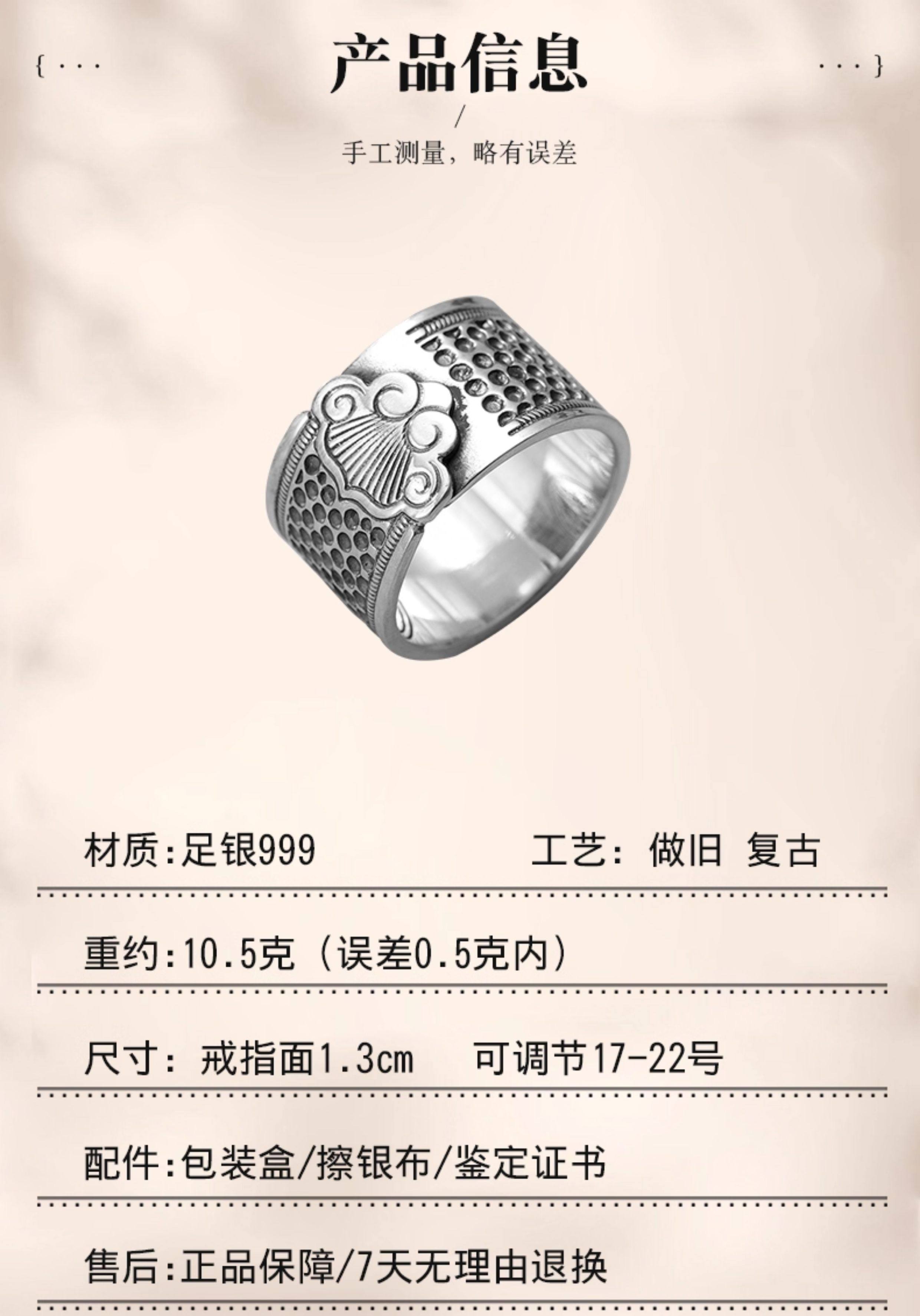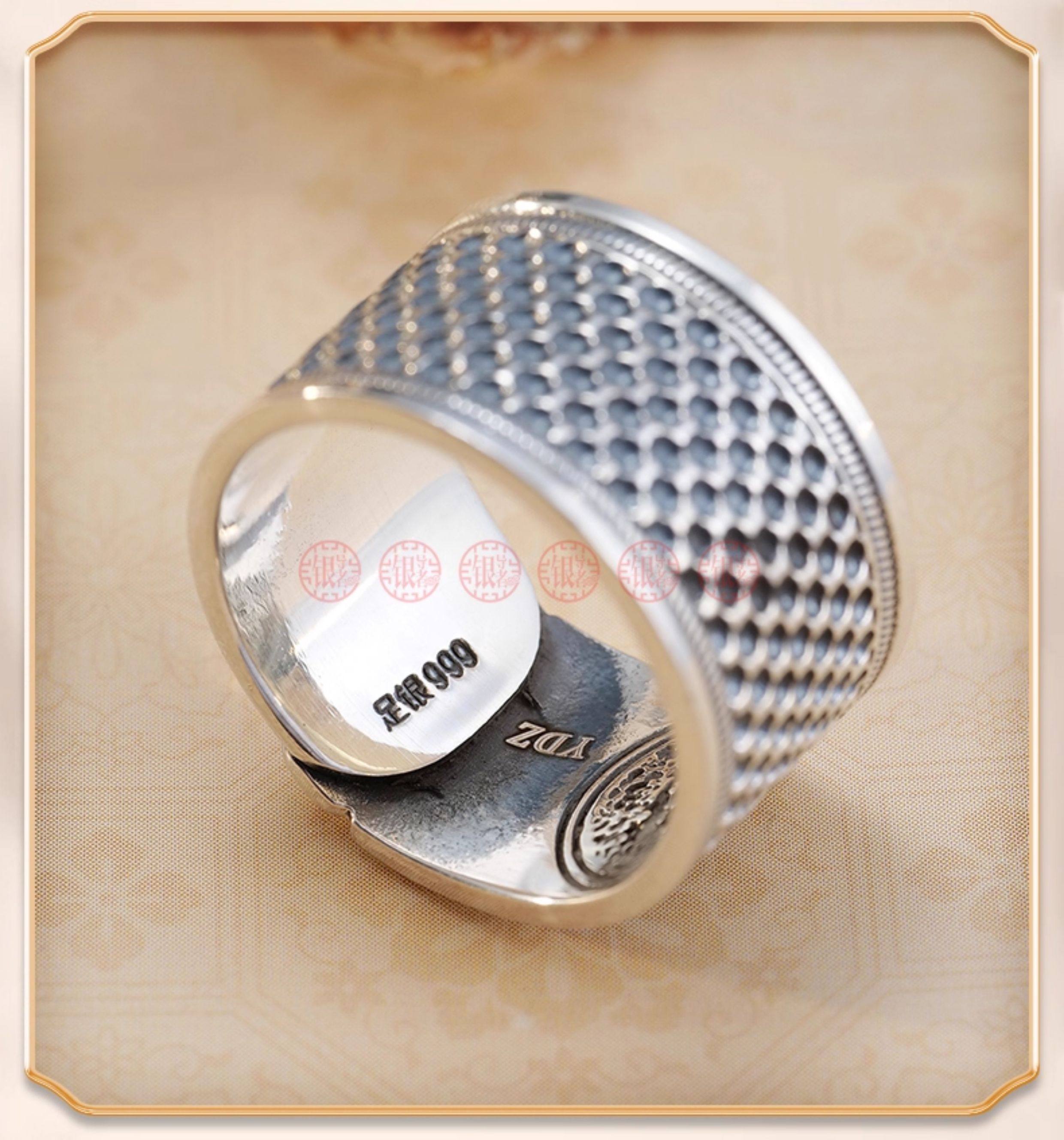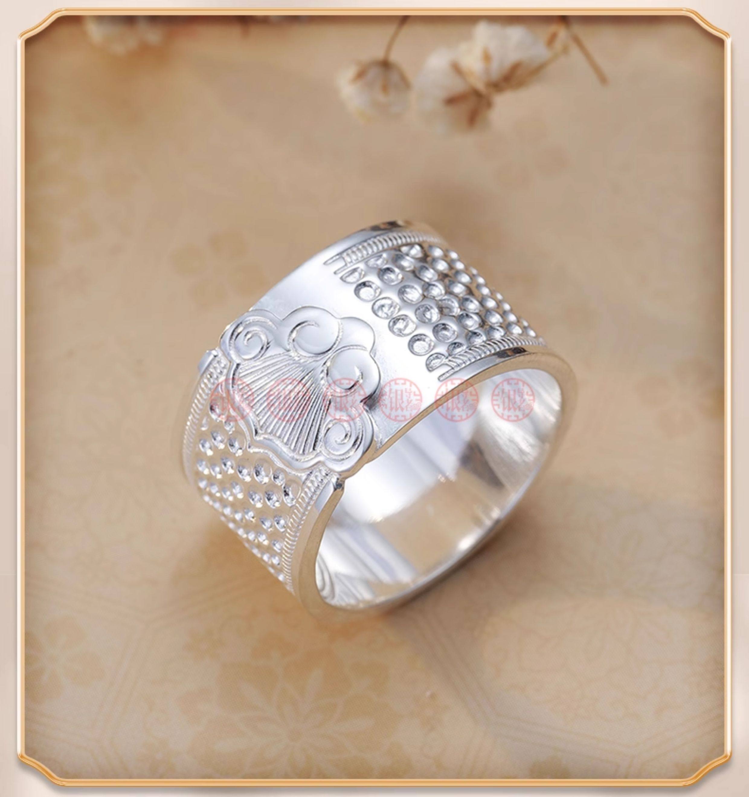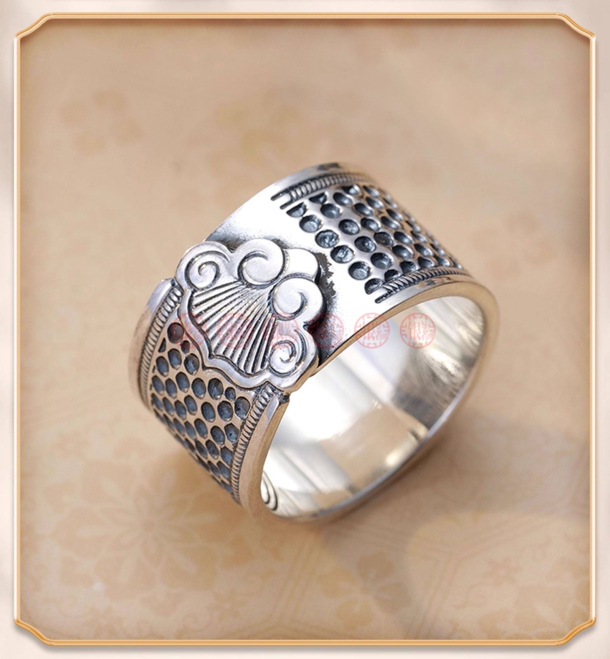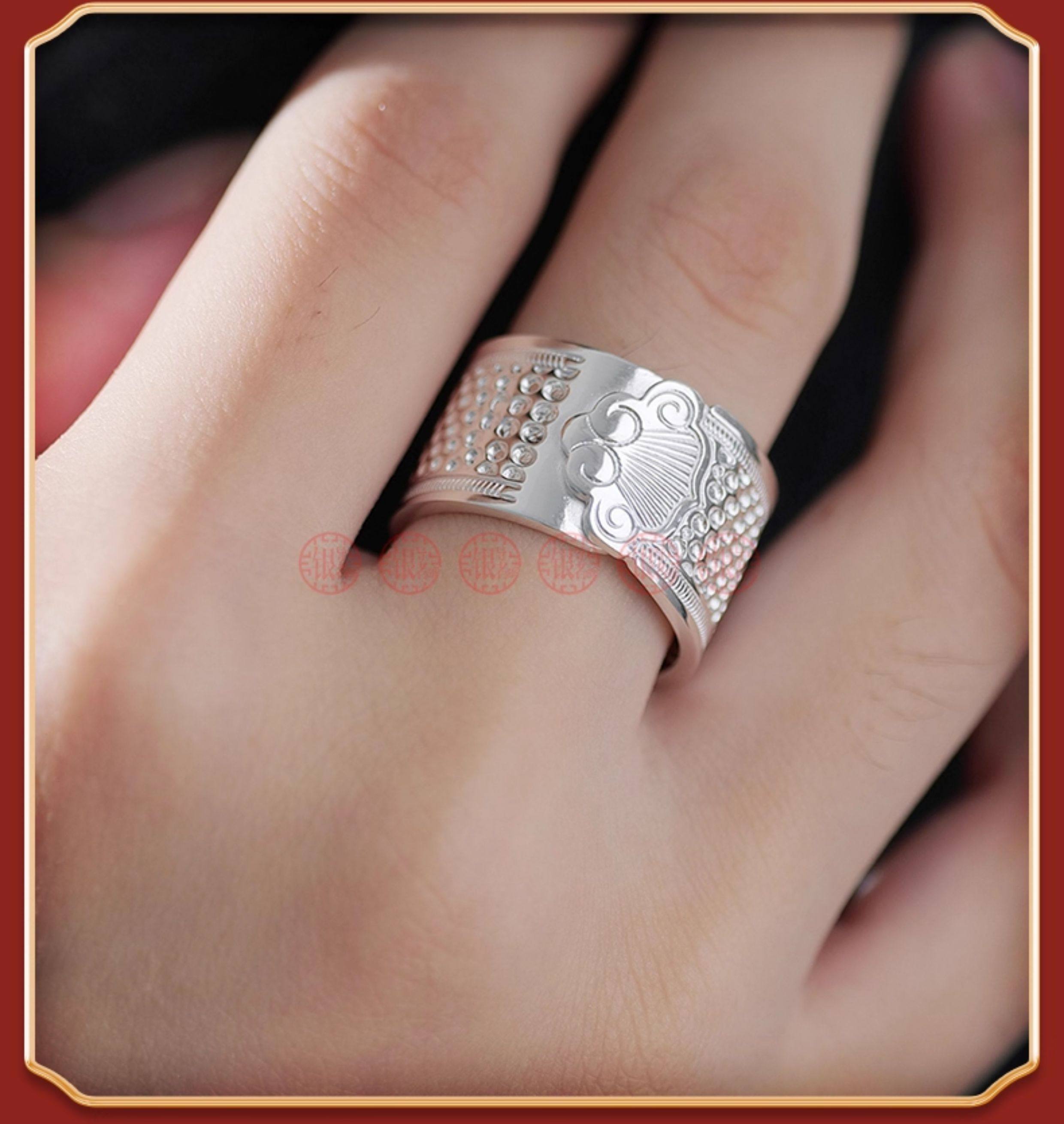 Silver Guide Ring Made of 999 Pure Silver, Auspicious and Wish-Fulfilling Ring, Finger Protector for Sewing, Thimble Ring, Pure Silver