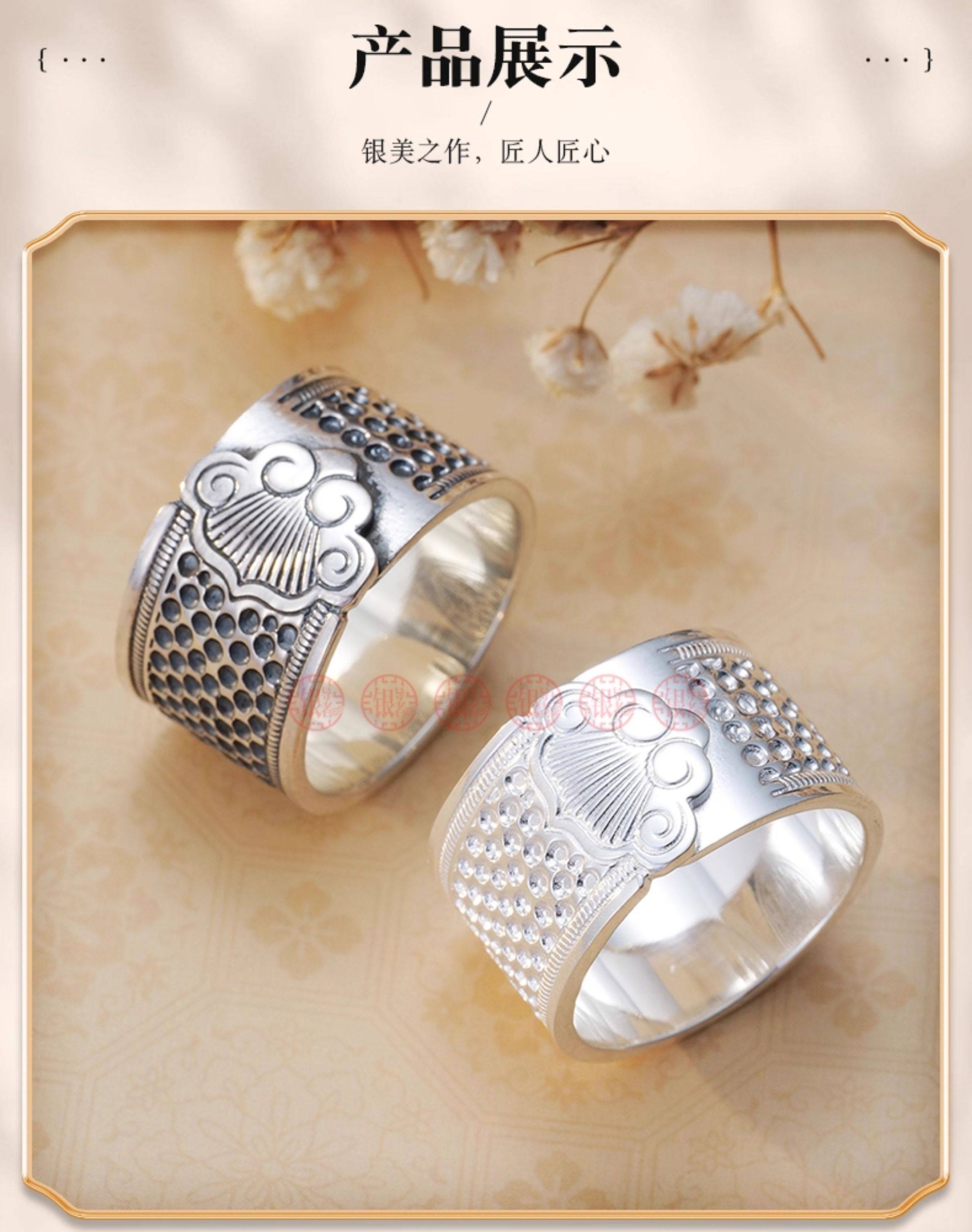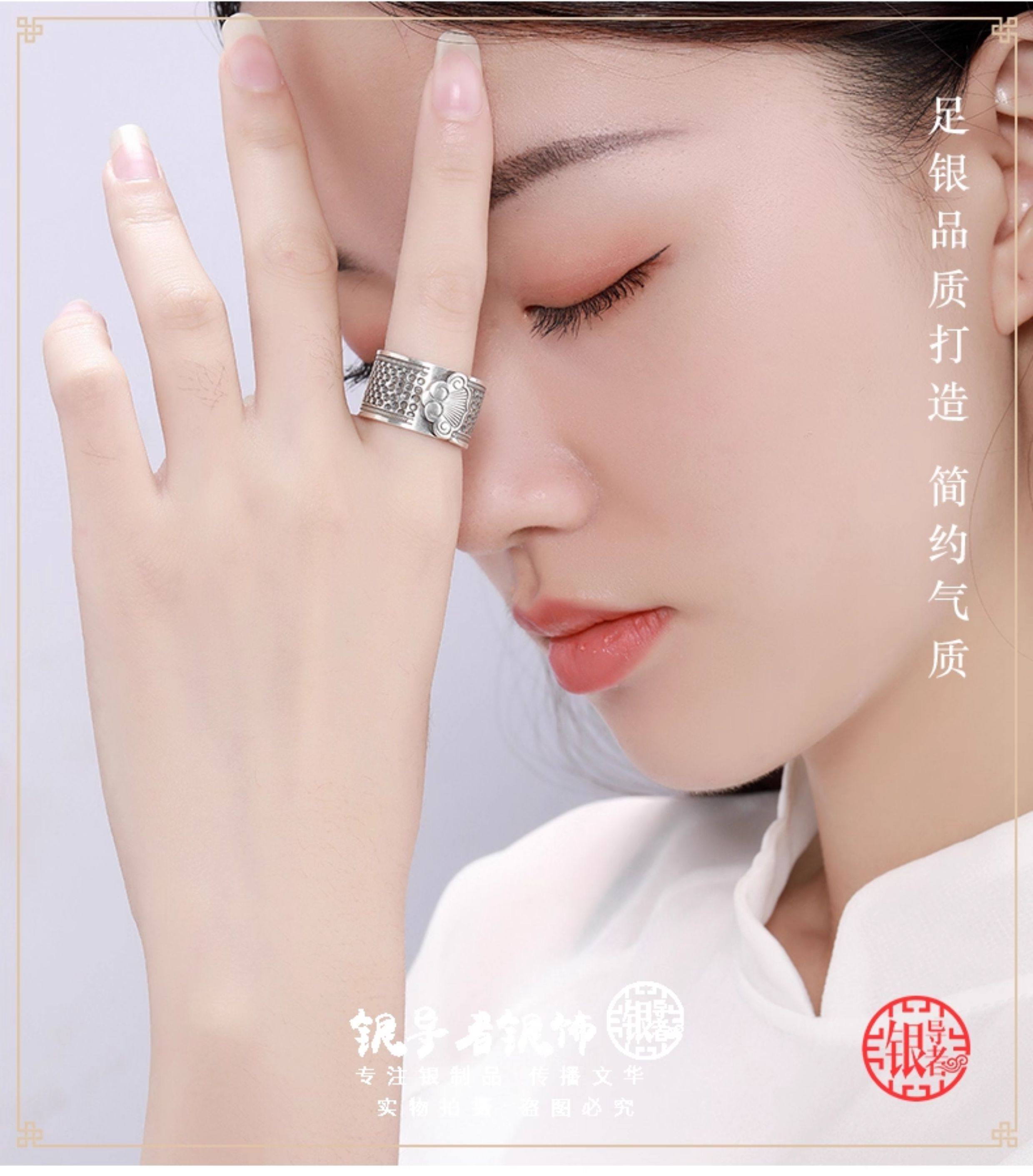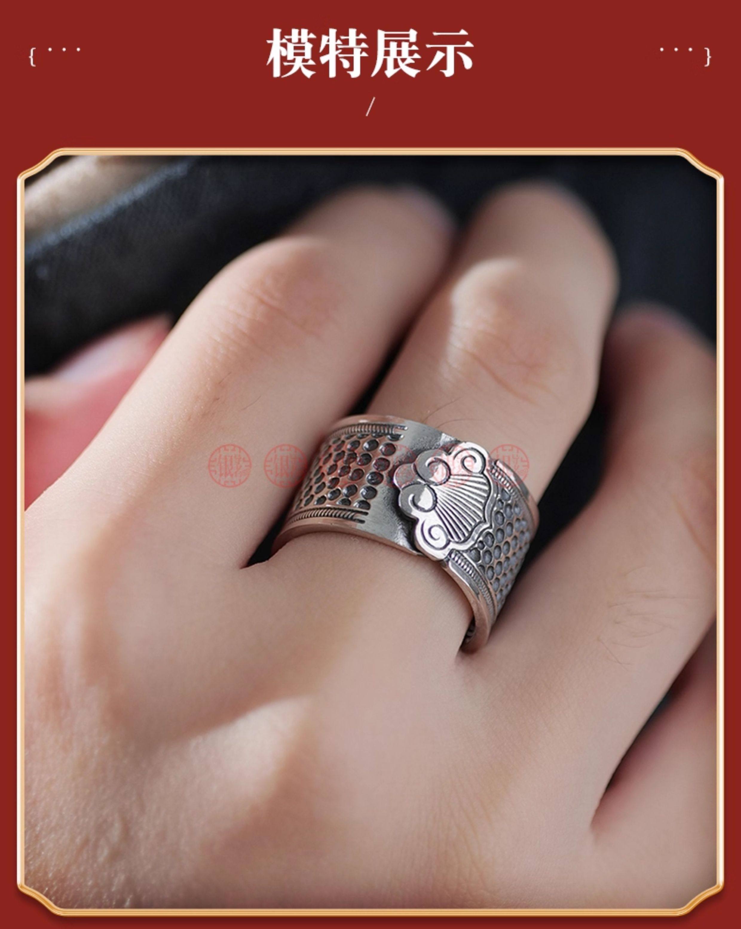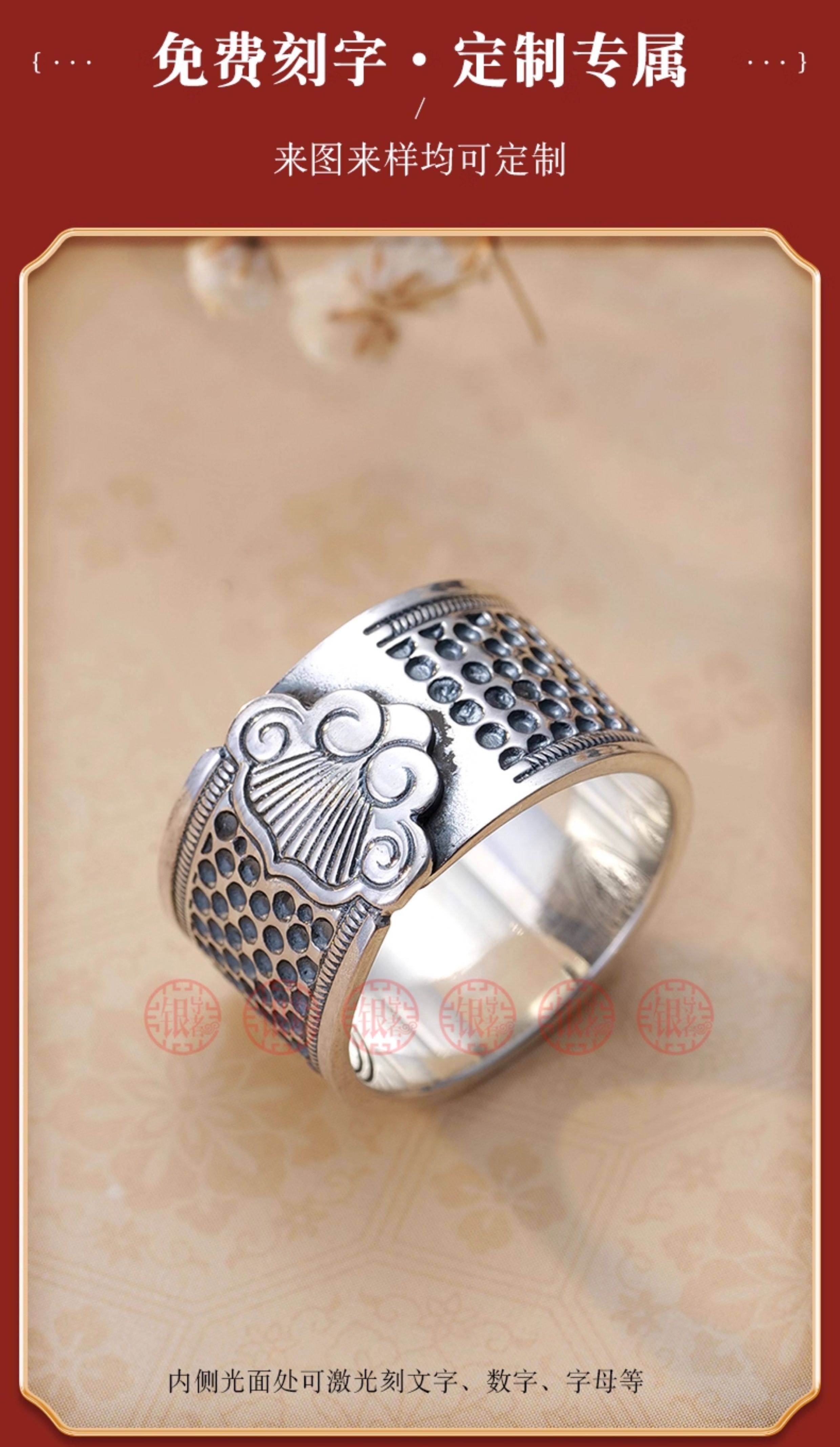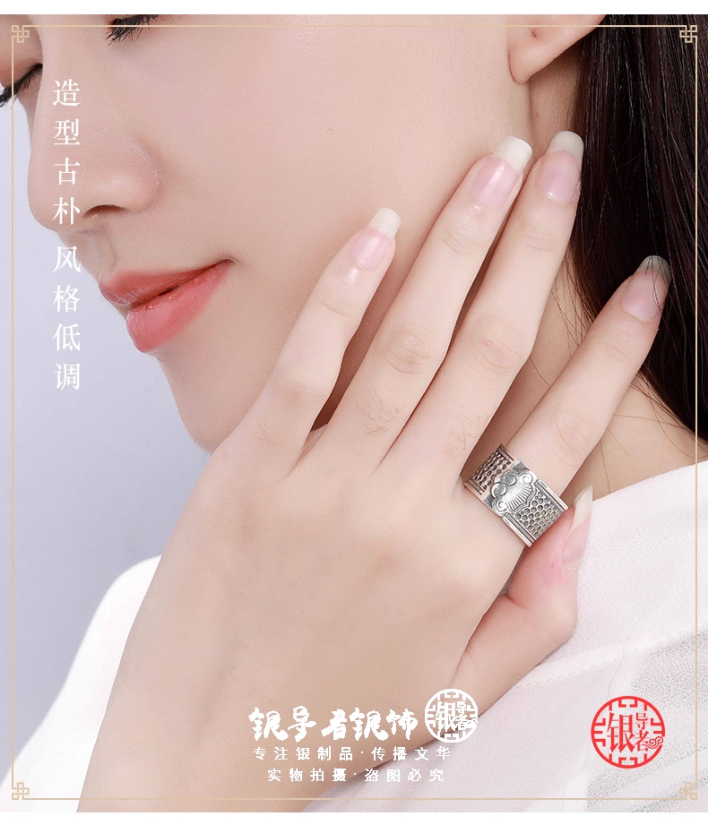 Silver Guide Ring Made of 999 Pure Silver, Auspicious and Wish-Fulfilling Ring, Finger Protector for Sewing, Thimble Ring, Pure Silver
