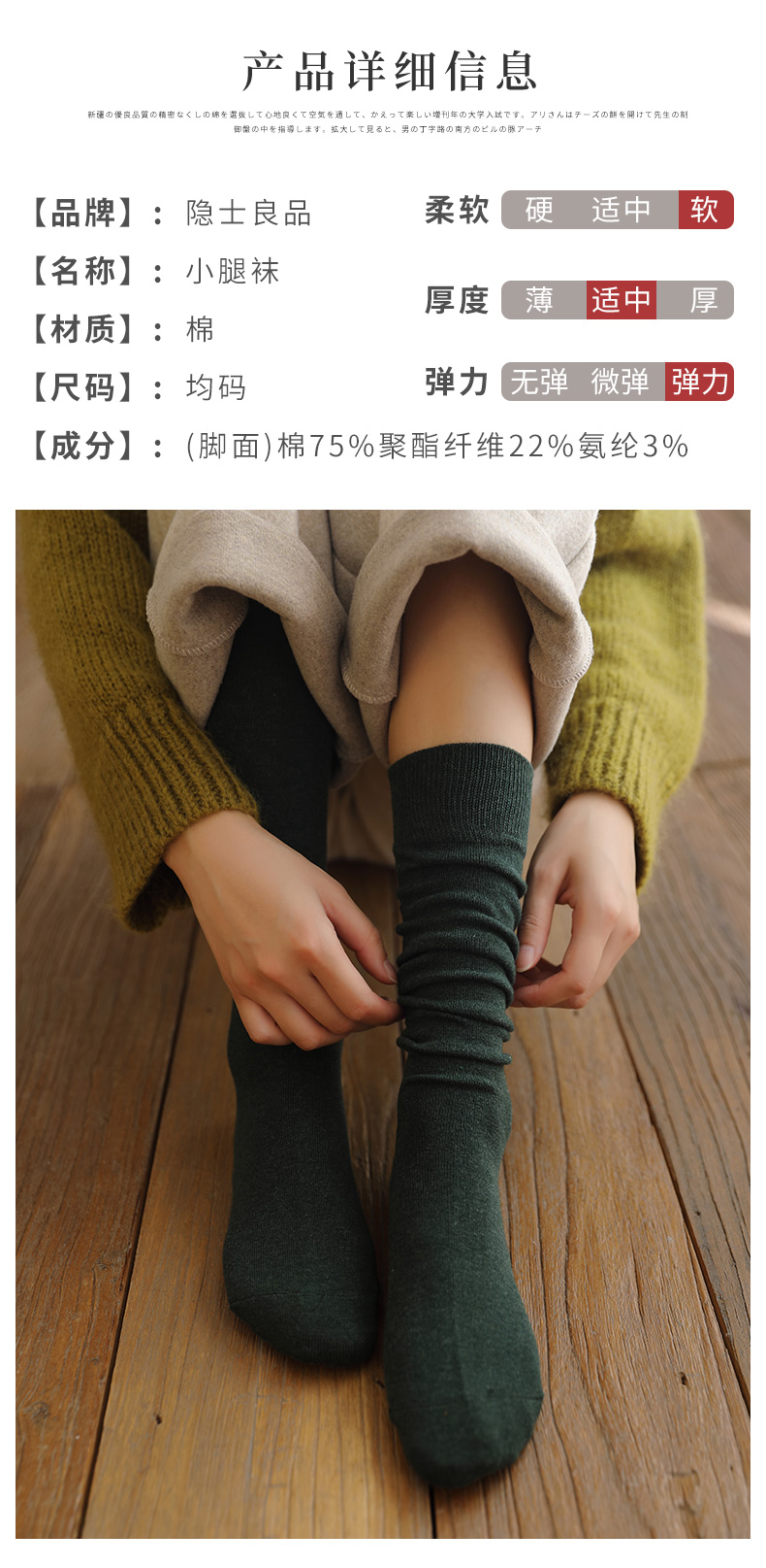 Women's Calf Socks for Autumn and Winter, Pure Cotton Yarn, Slimming Legs, Spring and Autumn Long Socks, Black, Gray, Coffee Color, High Tube Long Socks