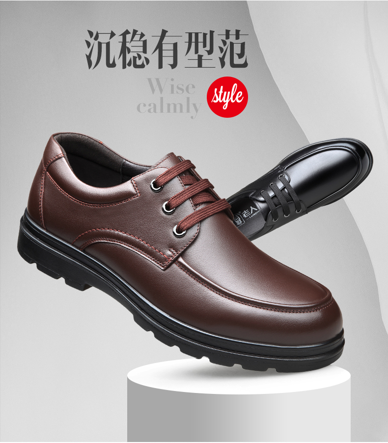 Elderly Men's Genuine Leather Business Casual Shoes, Breathable, Winter Wear-Resistant, Thick-Soled Middle-Aged Dad Shoes