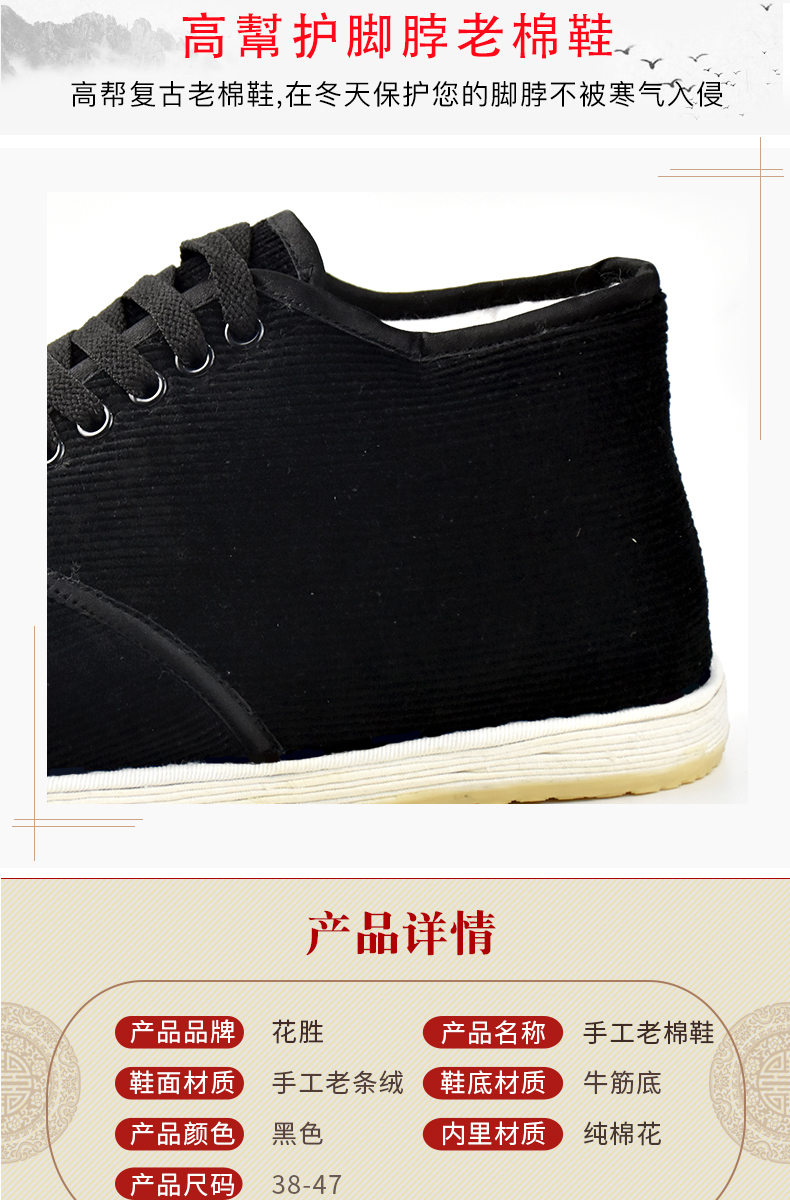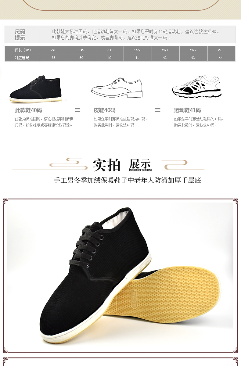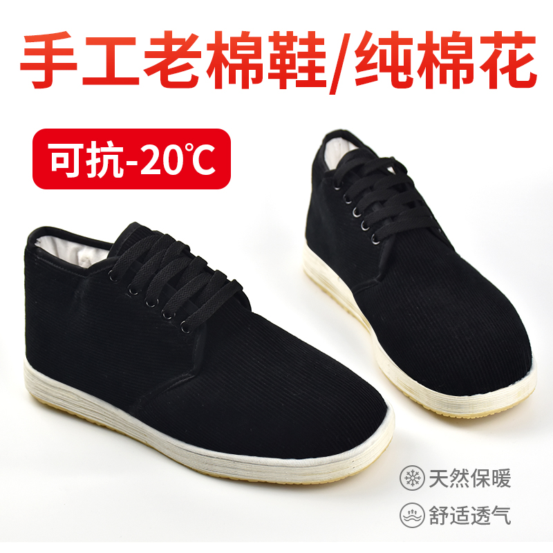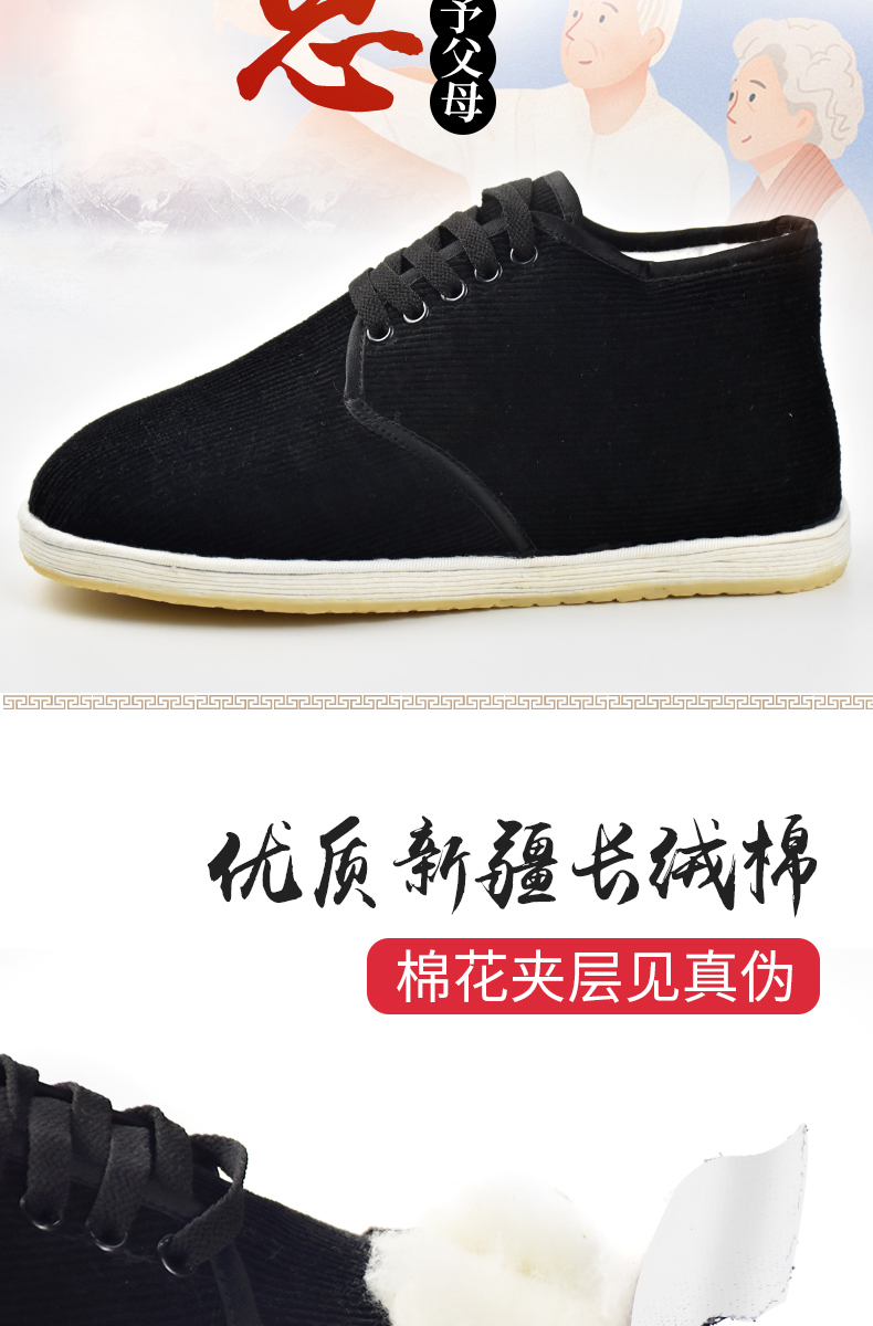 Old Beijing Cotton Shoes Men's Handmade Cotton Shoes Men's Winter Velvet Thickeneded Thousand-Layer Cotton Shoes for the Elderly