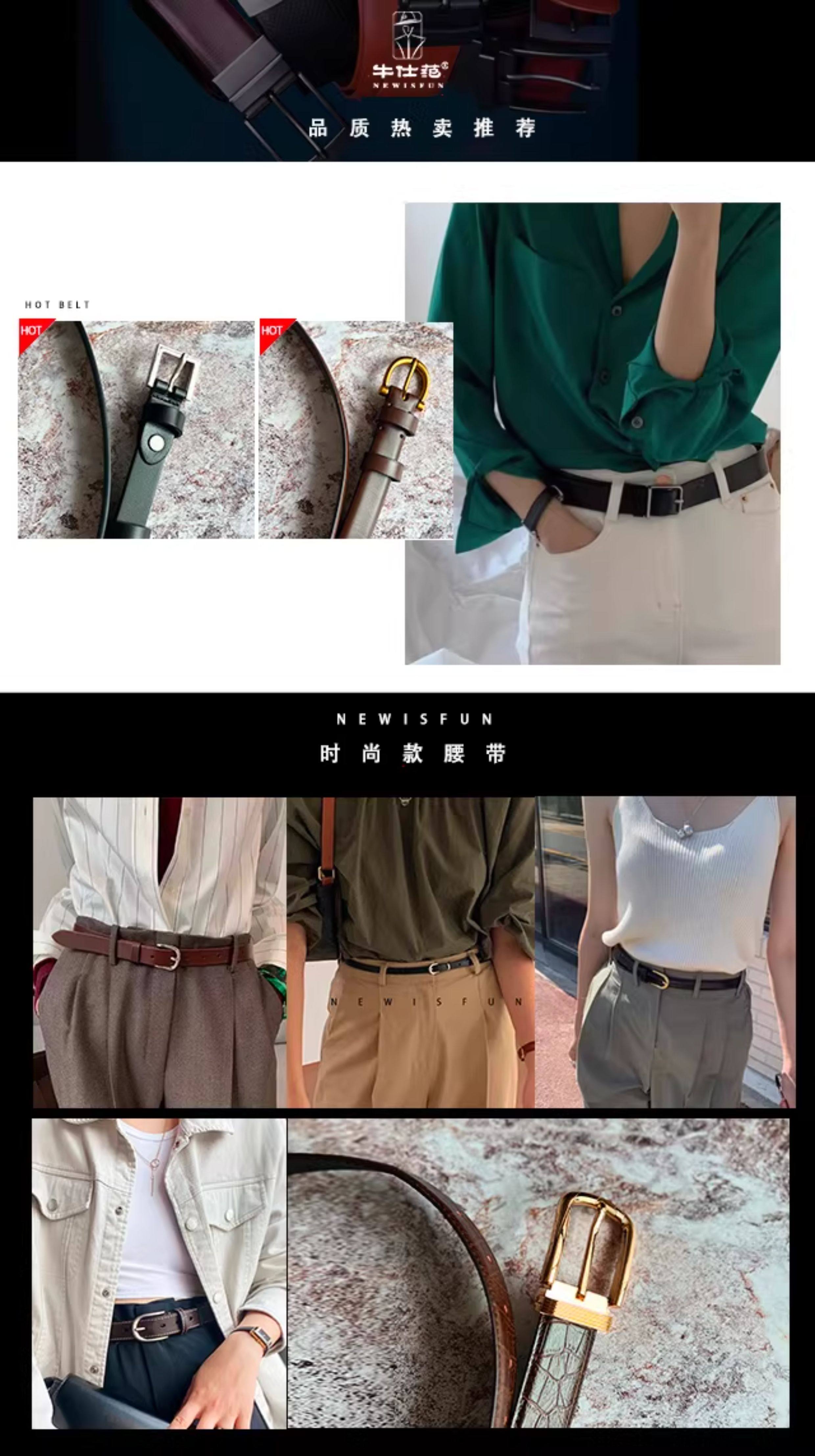 Niu Shifan Gujin Vintage Series Soft Genuine Leather Belt for Women's Jeans, First Layer Cowhide Decorative Versatile Belt