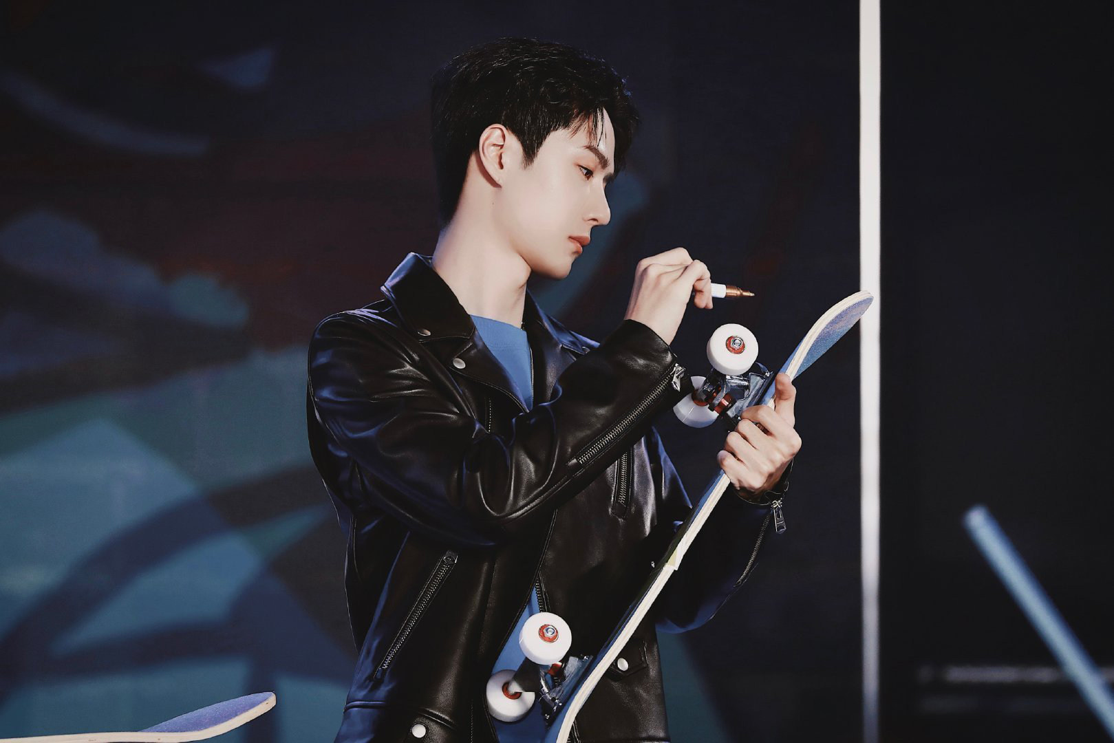 Street Dance Star Yi Bo's Same Style Leather Jacket, Autumn and Winter High-End Feel, Fleece-Lined, Thickened Soft Leather Jacket, Cool Biker Men's Coat