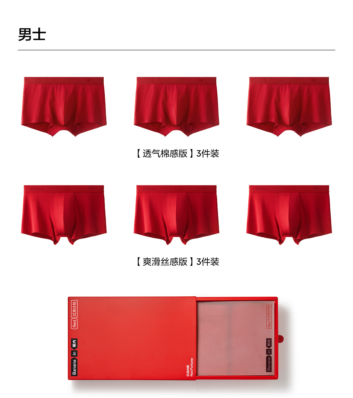 Gift Box | Jiao Nei Red Plan 3 Series Men's Underwear Women's Modal Pure Cotton Breathable Crotch Underwear for Men in Their Zodiac Year or Getting Married