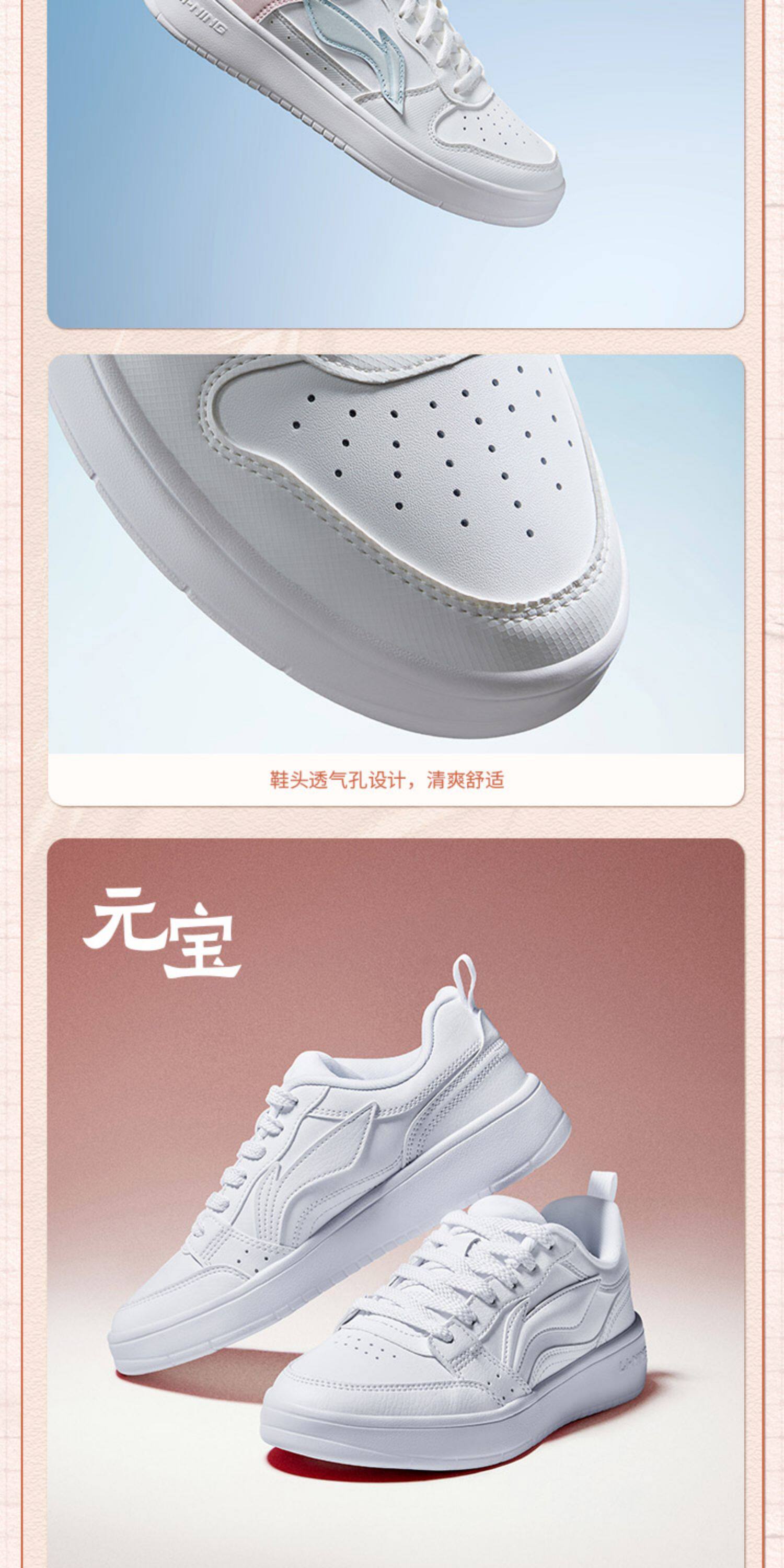 Li-Ning White Sneakers | Women's Sneakers, Casual Shoes, Spring Lightweight Soft-Soled Comfortable Versatile Shoes, Height-Increasing Sports Shoes