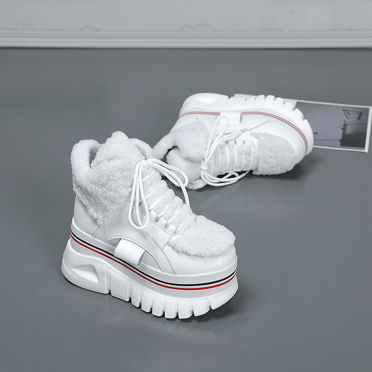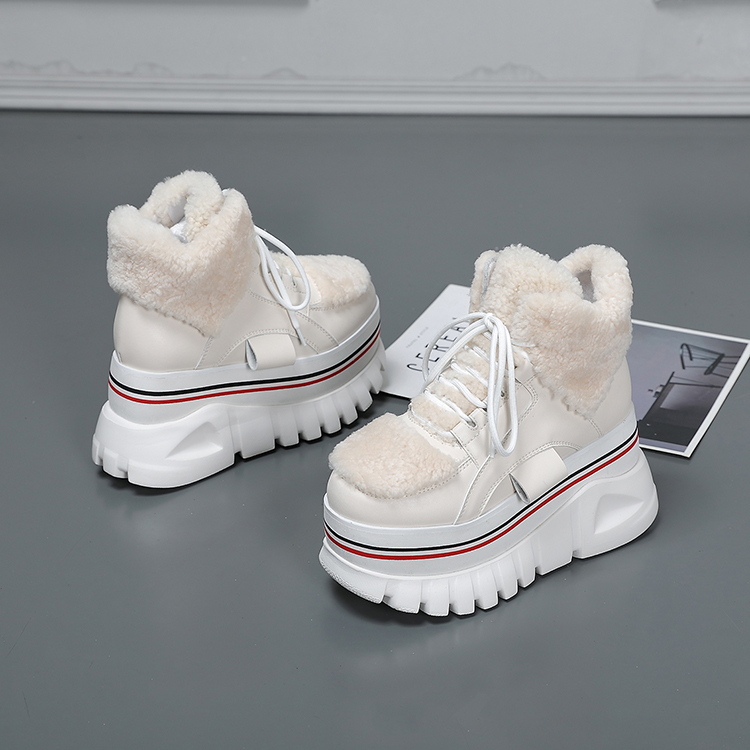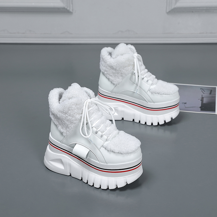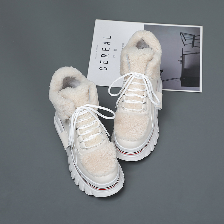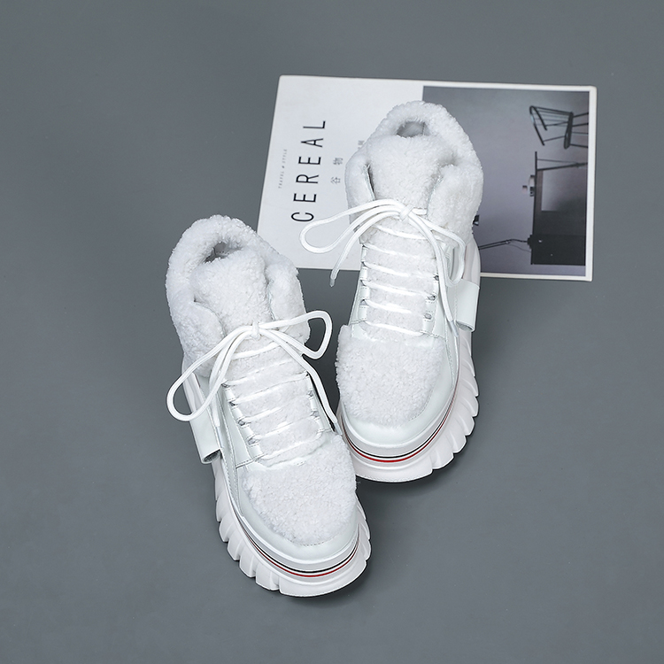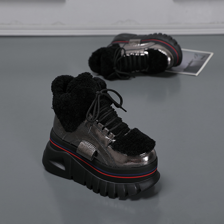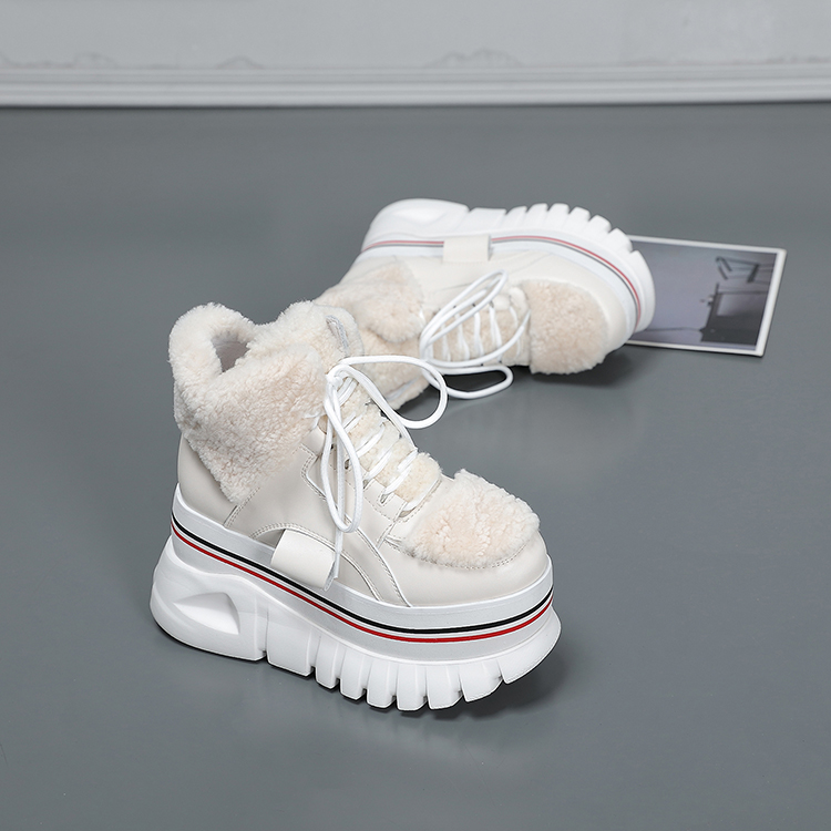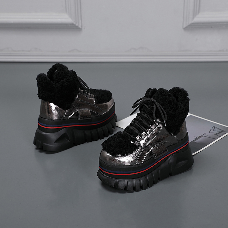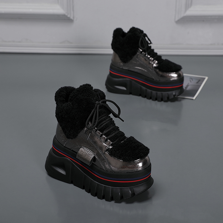European Women's Shoes 2024 Autumn and Winter New Wool Shoes Platform Thick-Soled Casual Lace-Up High-Top Dad Shoes
