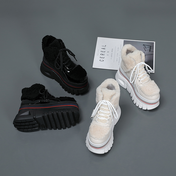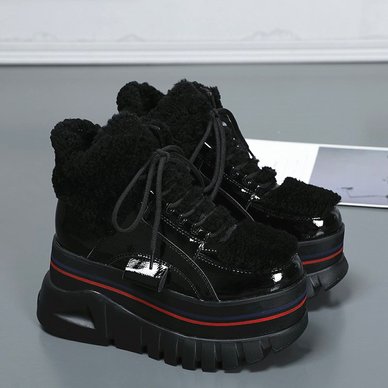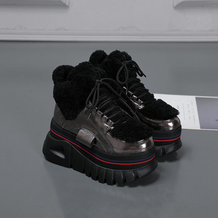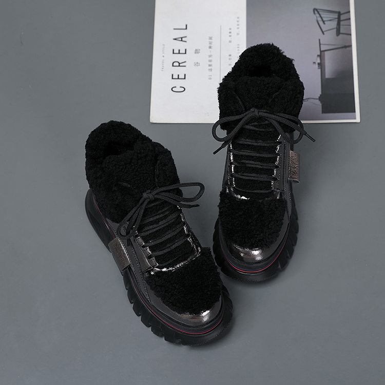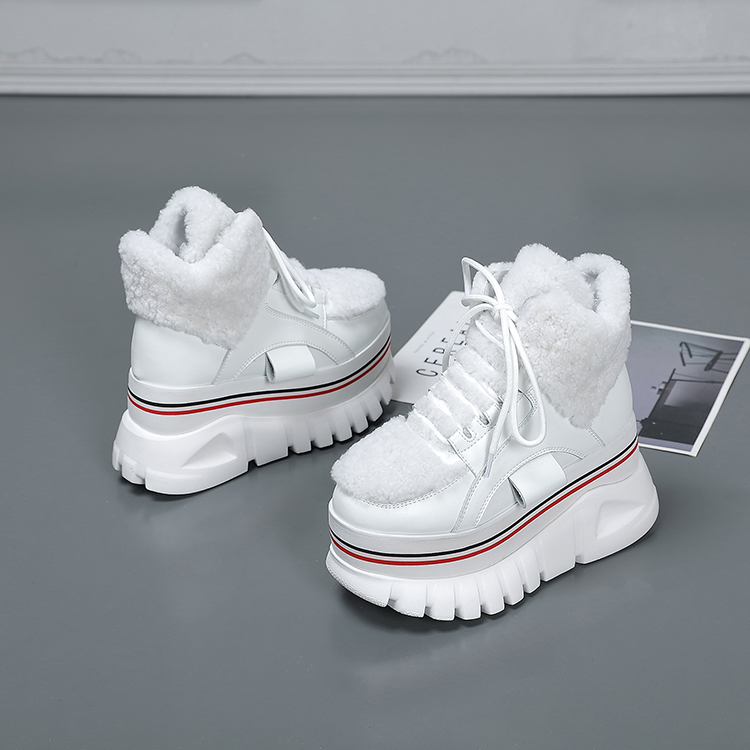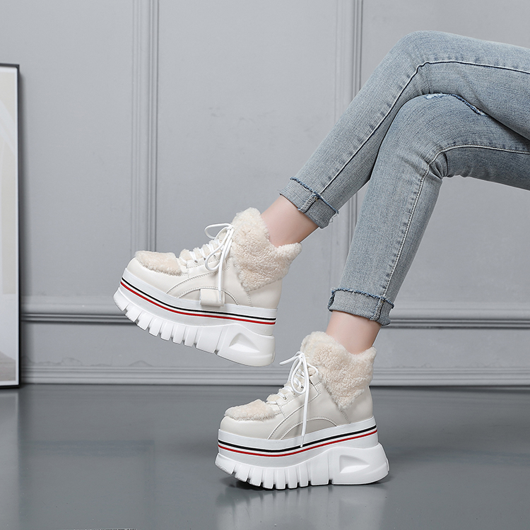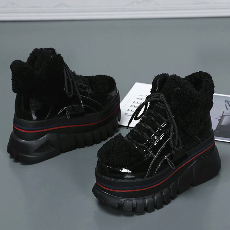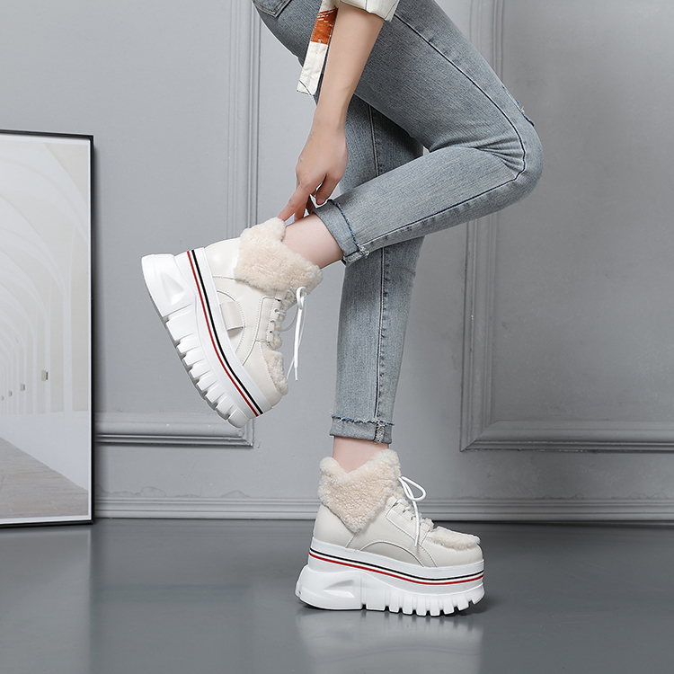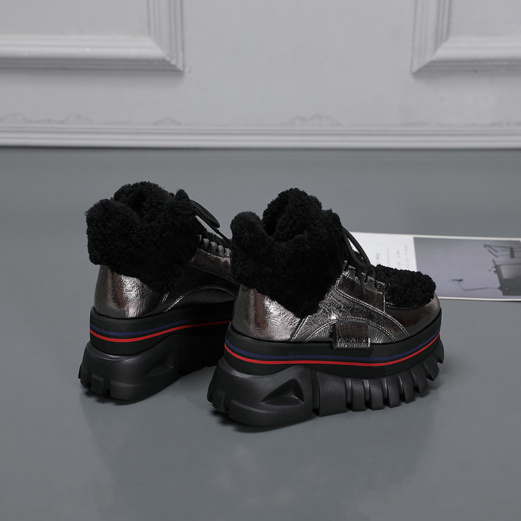 European Women's Shoes 2024 Autumn and Winter New Wool Shoes Platform Thick-Soled Casual Lace-Up High-Top Dad Shoes